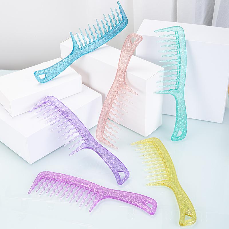 Shangshi más vendido transfronterizo nuevo color flash peine corrugado para mujer Shunfa corte de pelo peine para el cabello onda diente ancho peine espada ancha