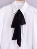 Camisa elegante de manga larga con lazo blanco de moda para mujer, primavera 2025, estilo europeo y americano.