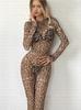 Y2k nuevo ins europeo y americano manga larga ajustado transfronterizo translúcido sexy malla estampado de leopardo jumpsuit delgado para sesión de fotos al aire libre