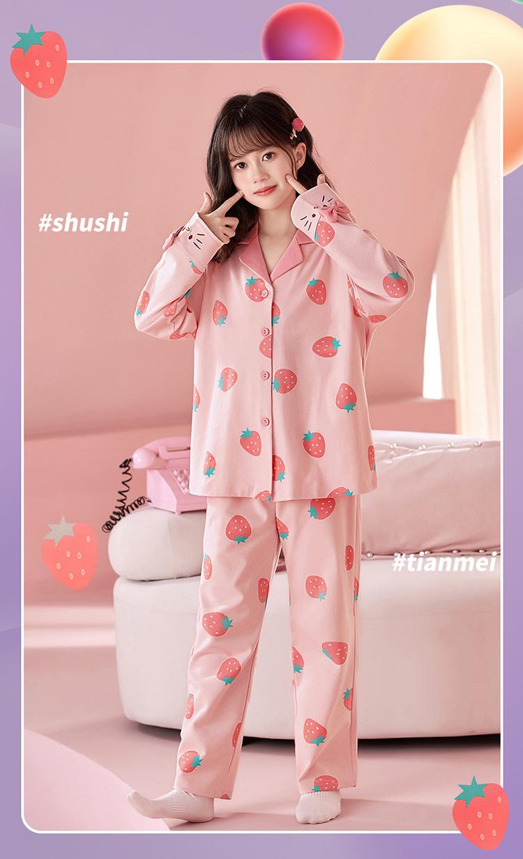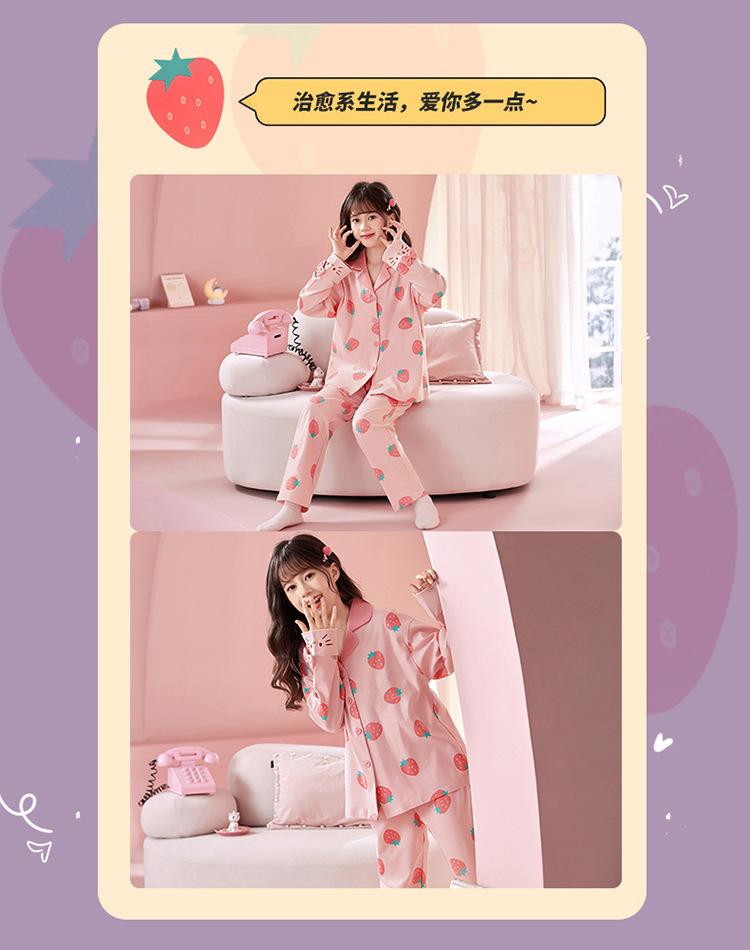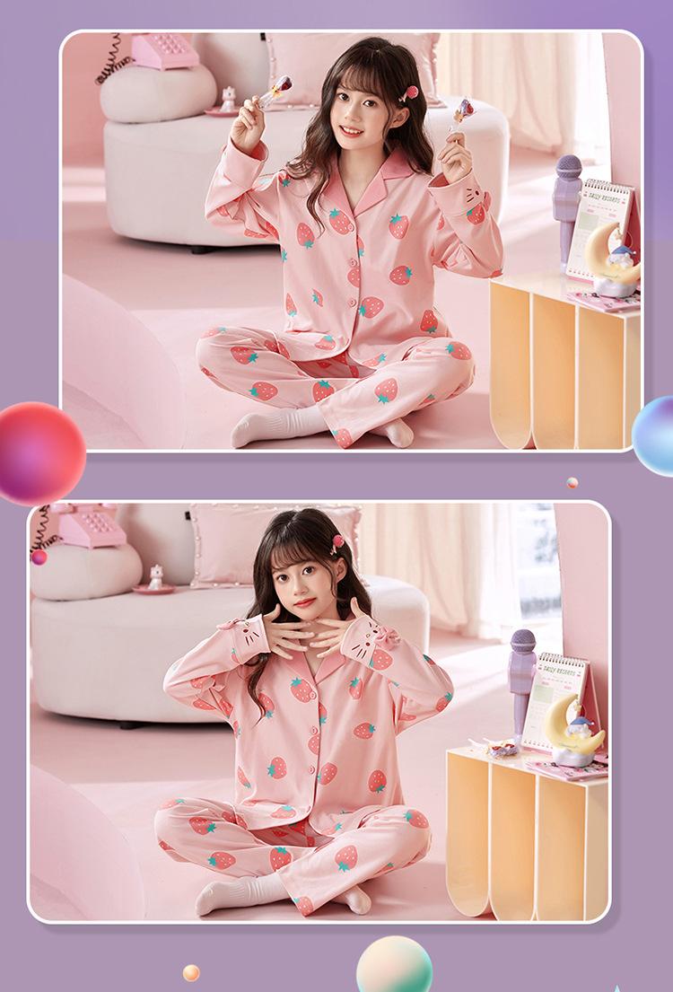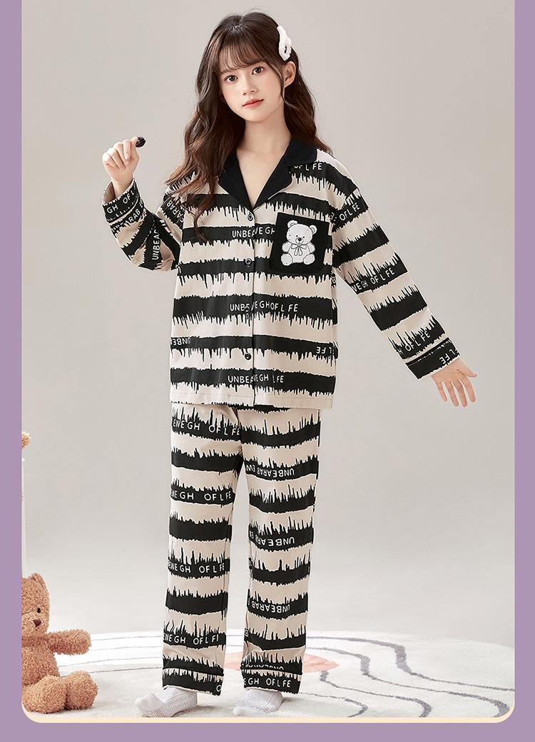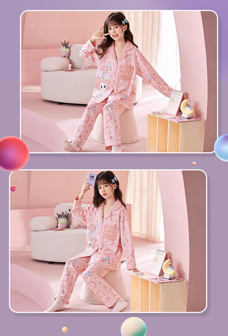 Pijamas para Niñas Nuevo Traje de Manga Larga de Algodón Puro Ropa para el Hogar para Niñas Grandes Estilo Coreano Madre e Hija Padres e Hijos