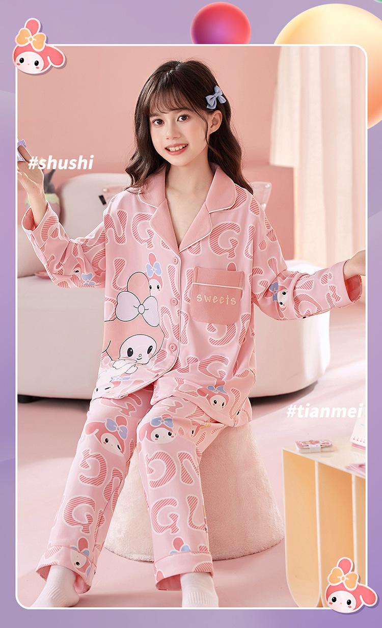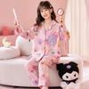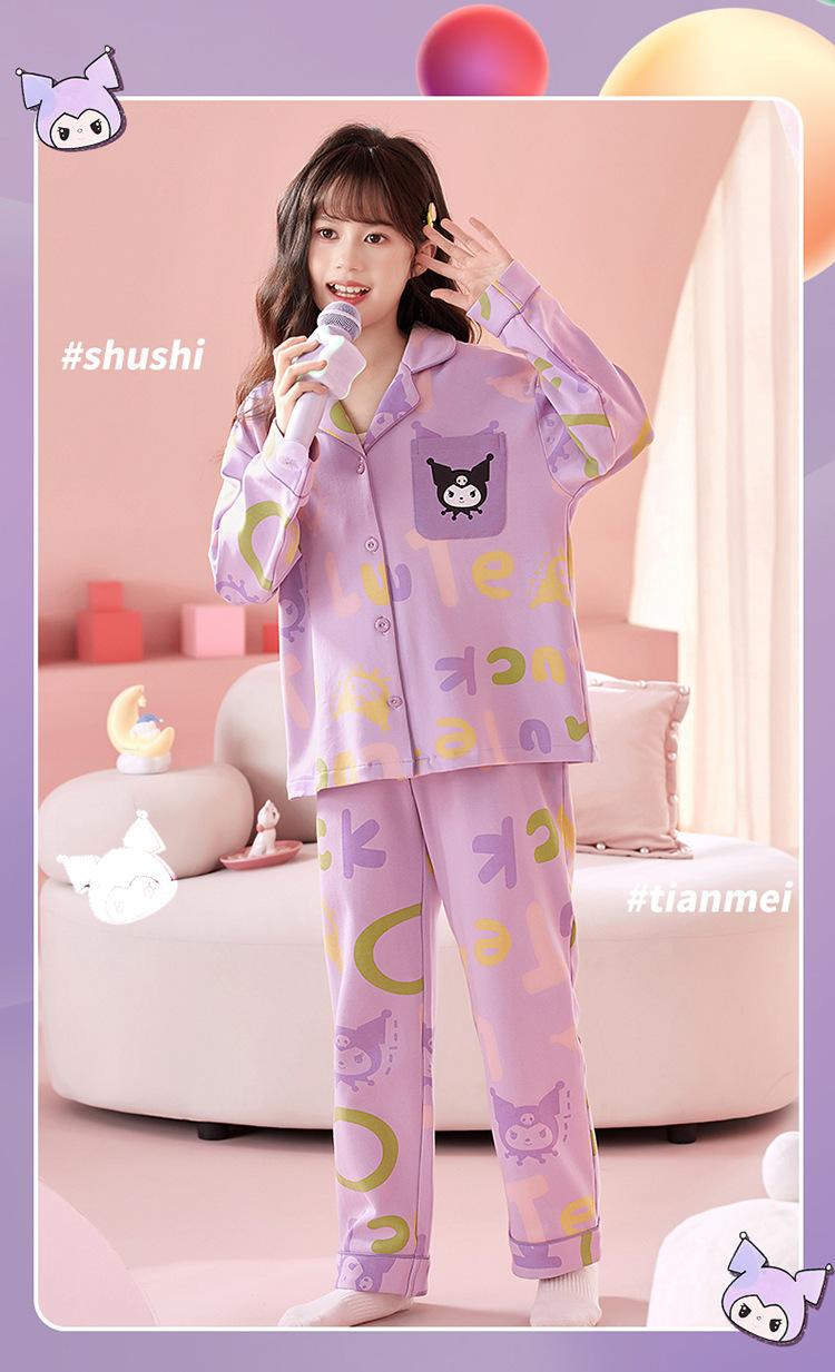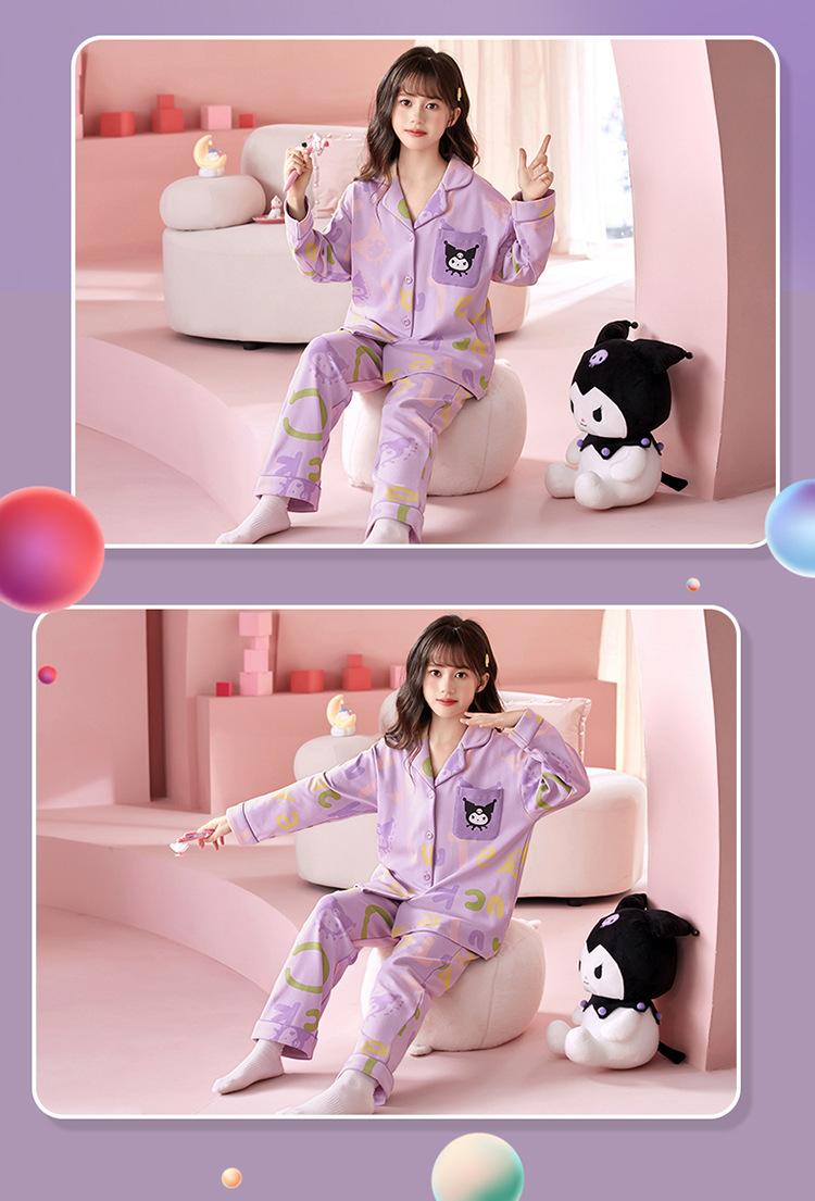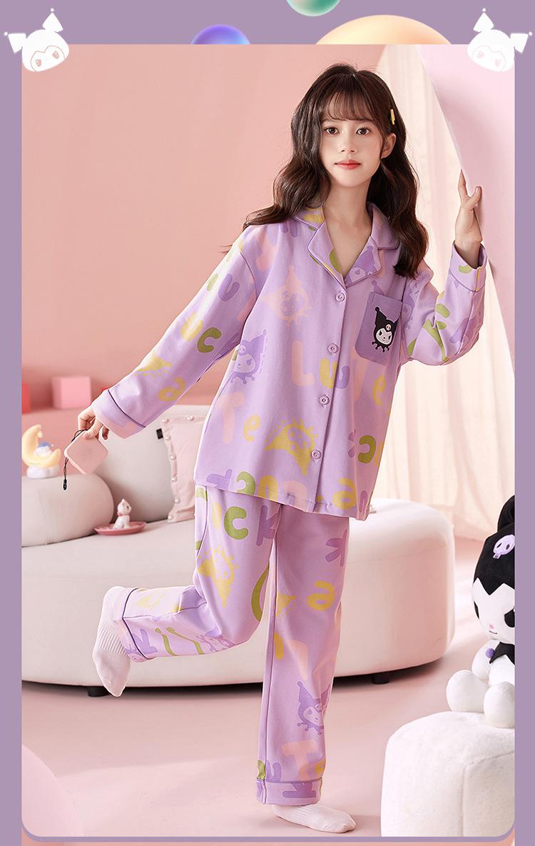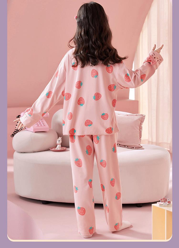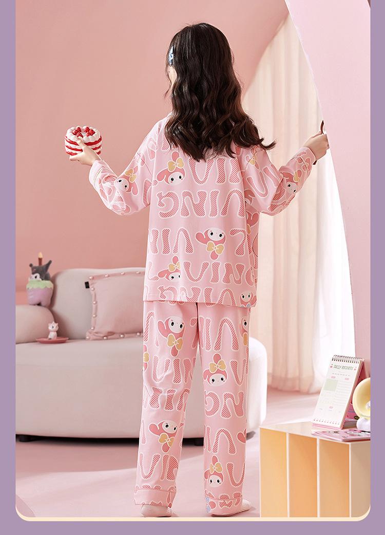 Pijamas para Niñas Nuevo Traje de Manga Larga de Algodón Puro Ropa para el Hogar para Niñas Grandes Estilo Coreano Madre e Hija Padres e Hijos