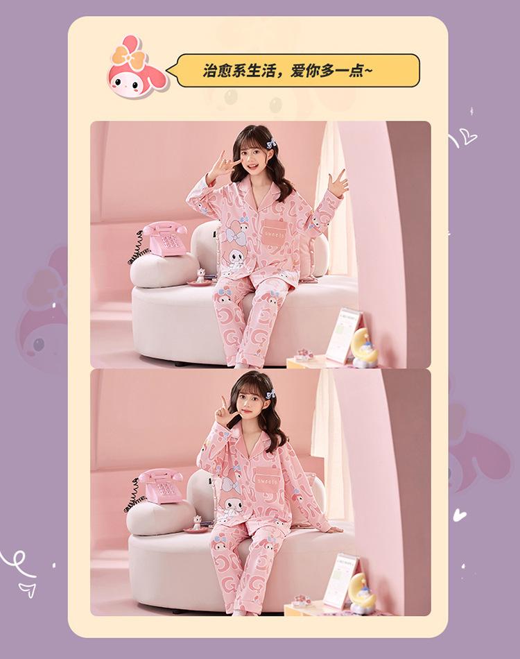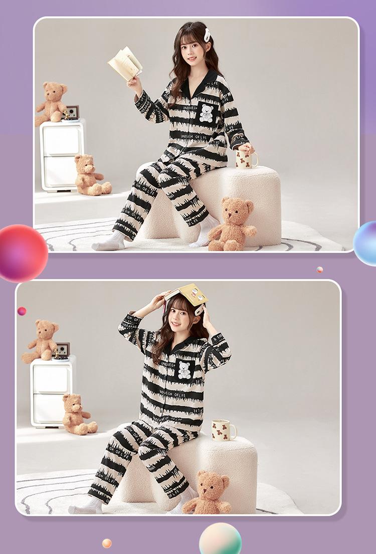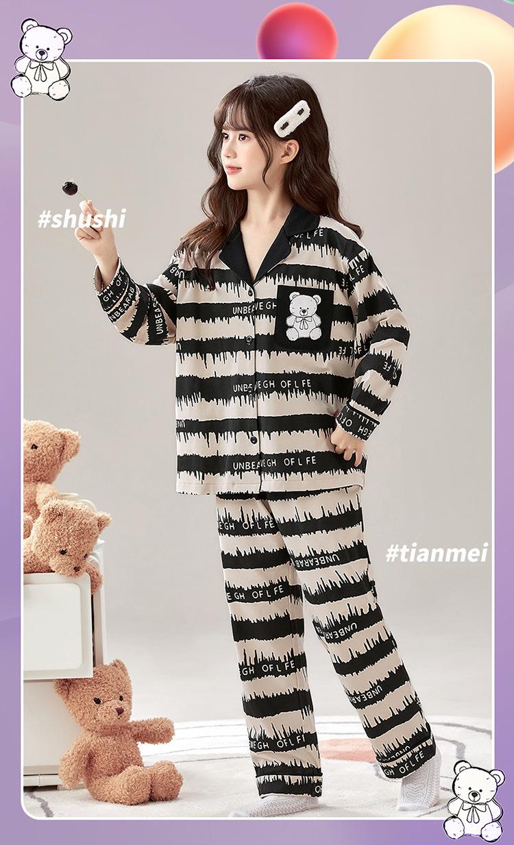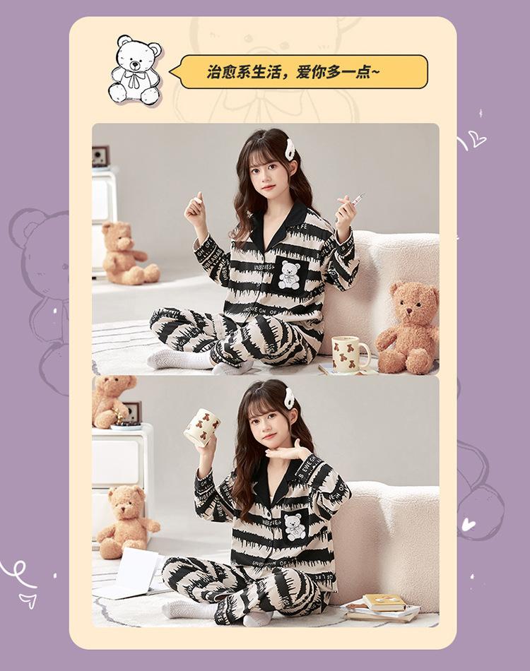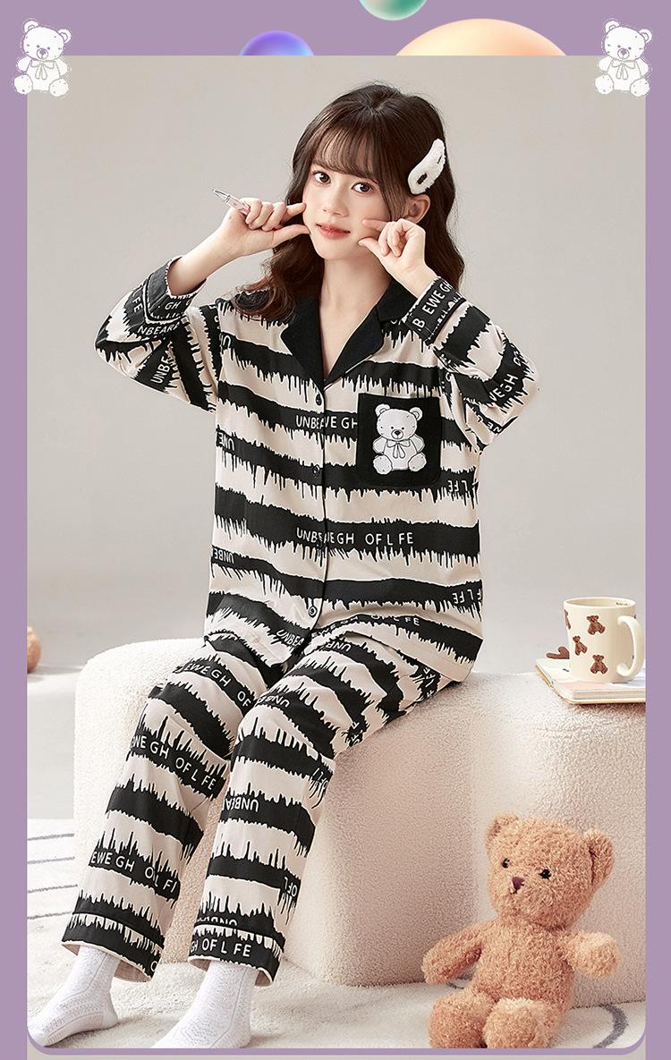 Pijamas para Niñas Nuevo Traje de Manga Larga de Algodón Puro Ropa para el Hogar para Niñas Grandes Estilo Coreano Madre e Hija Padres e Hijos