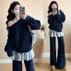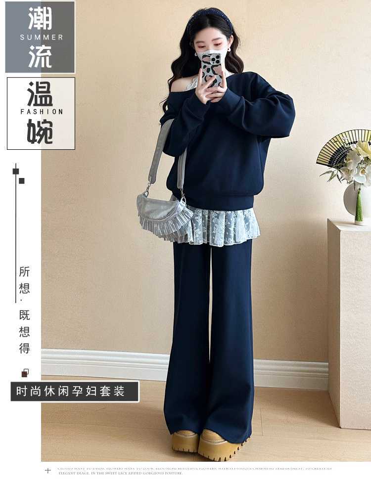 Pantalones de maternidad de primavera 2025 con diseño de moda y hombros oblicuos, con hebilla ajustable y diseño de nariz de cerdo, nuevo traje antiedad para embarazadas.