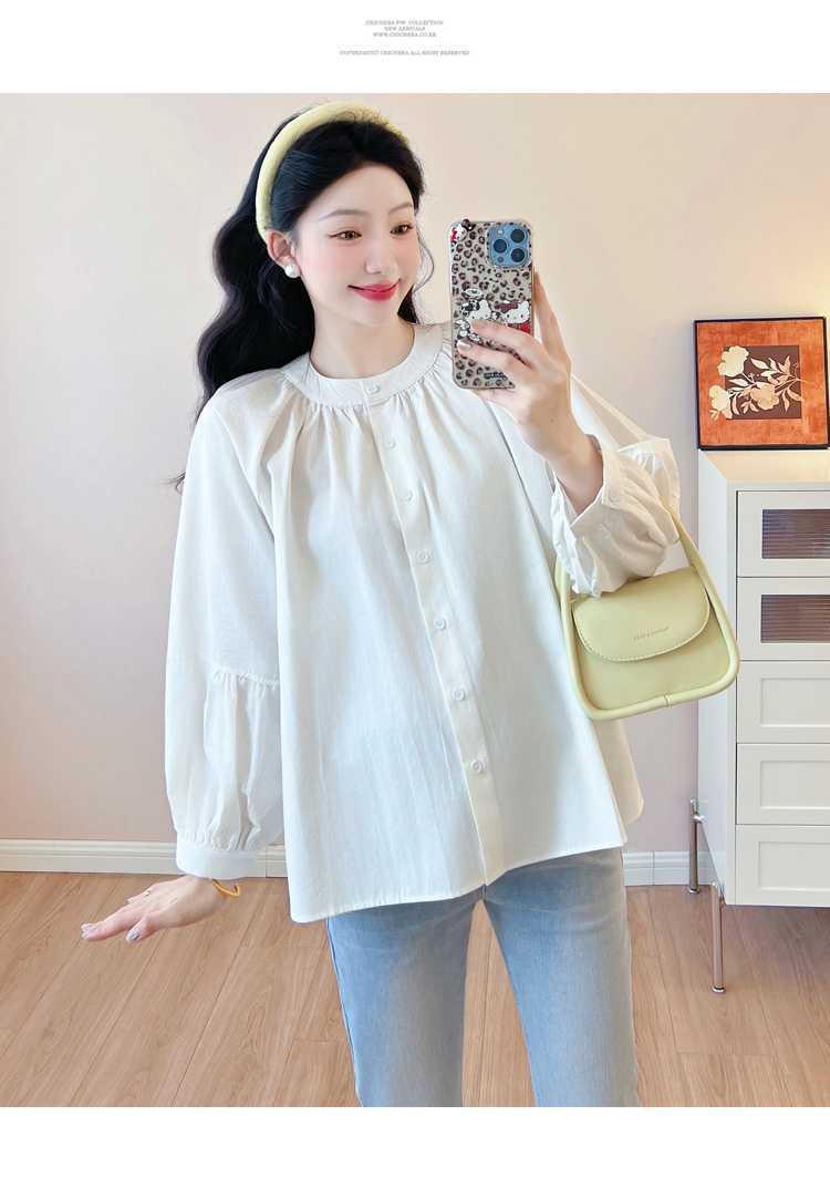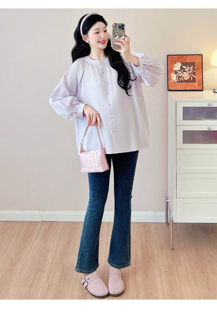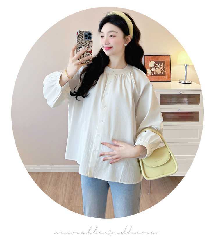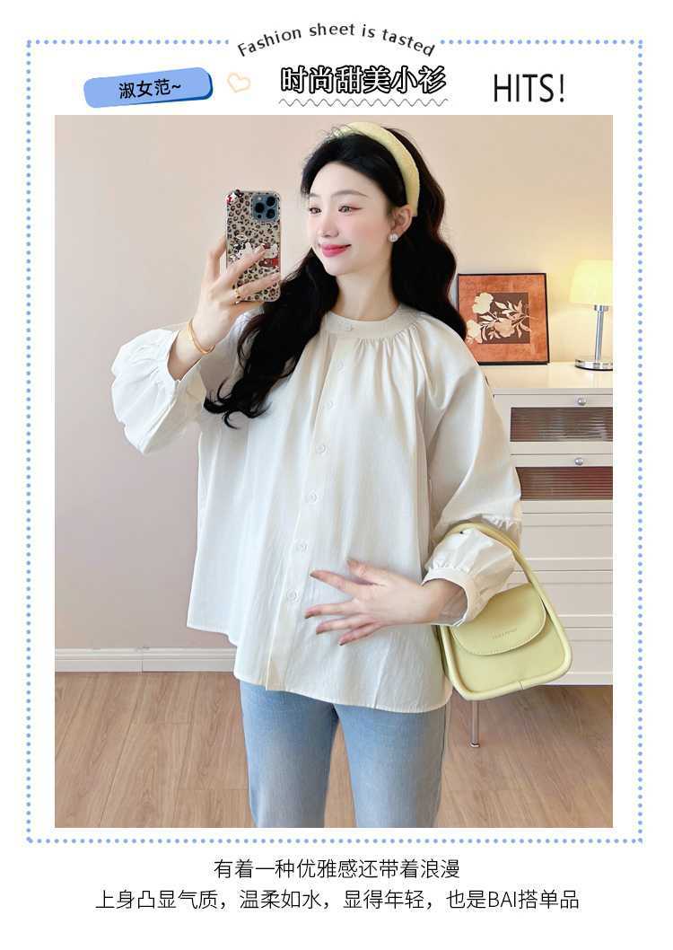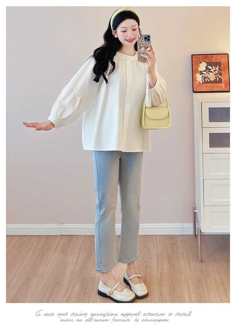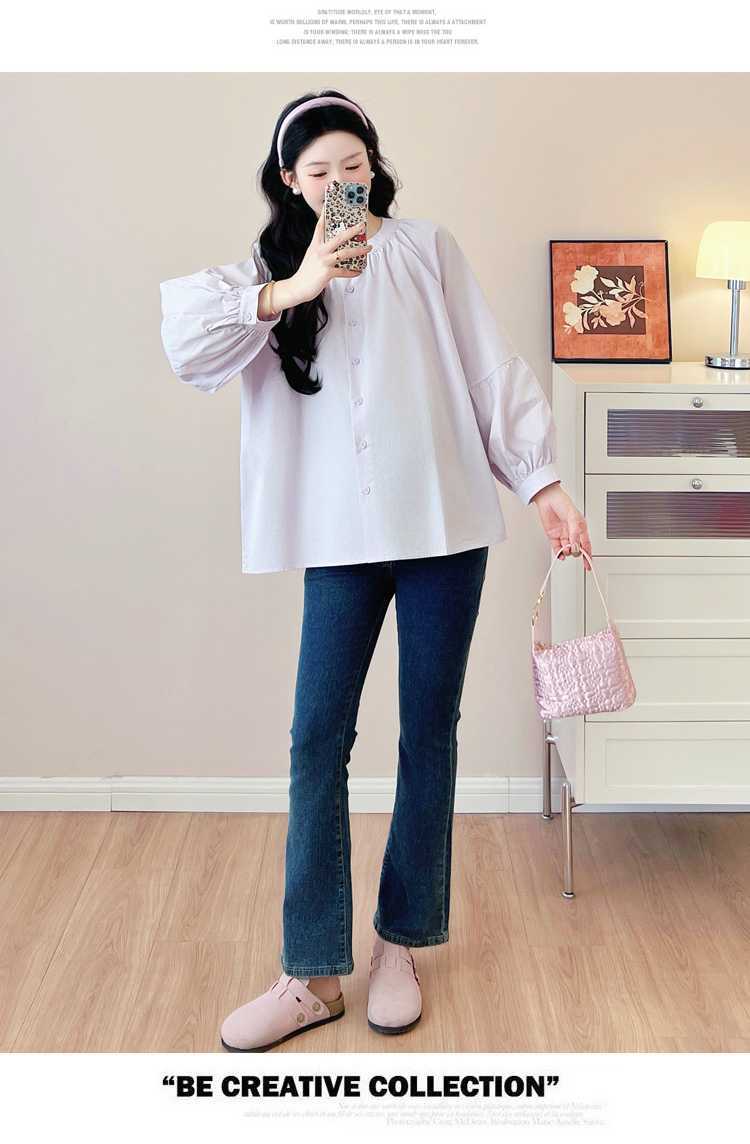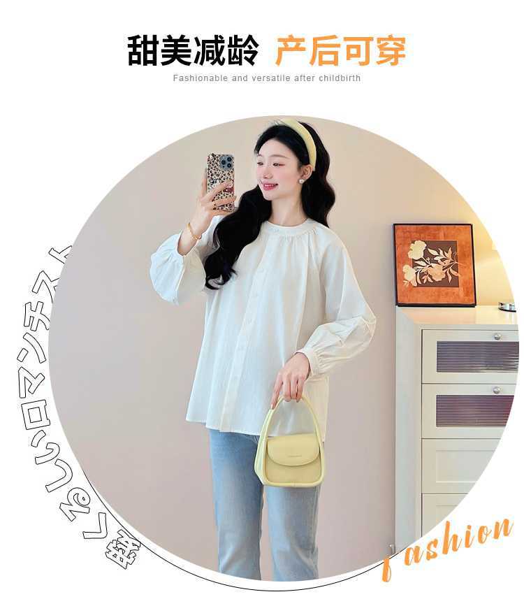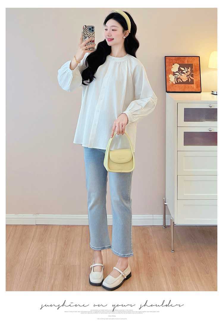 Camisa holgada de manga larga con cuello redondo y farol para embarazadas, estilo coreano informal, para la lactancia, primavera 2025