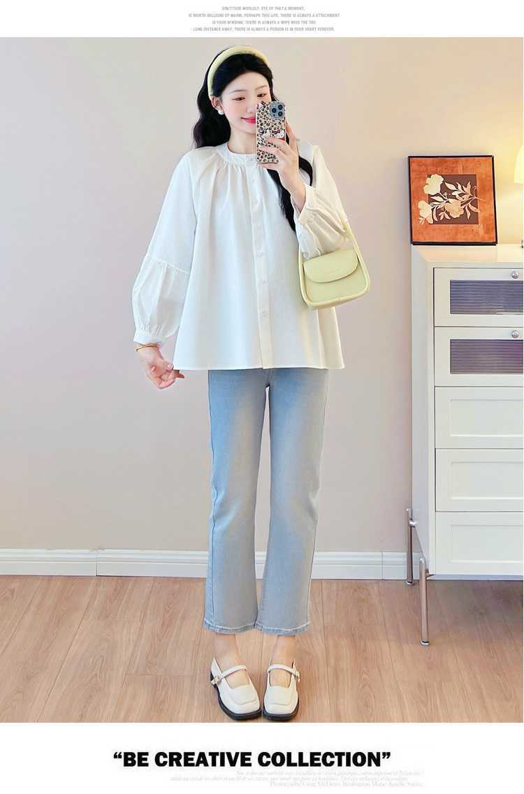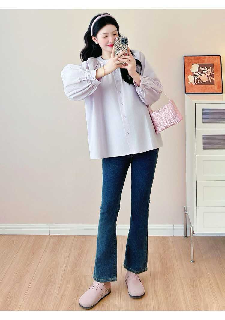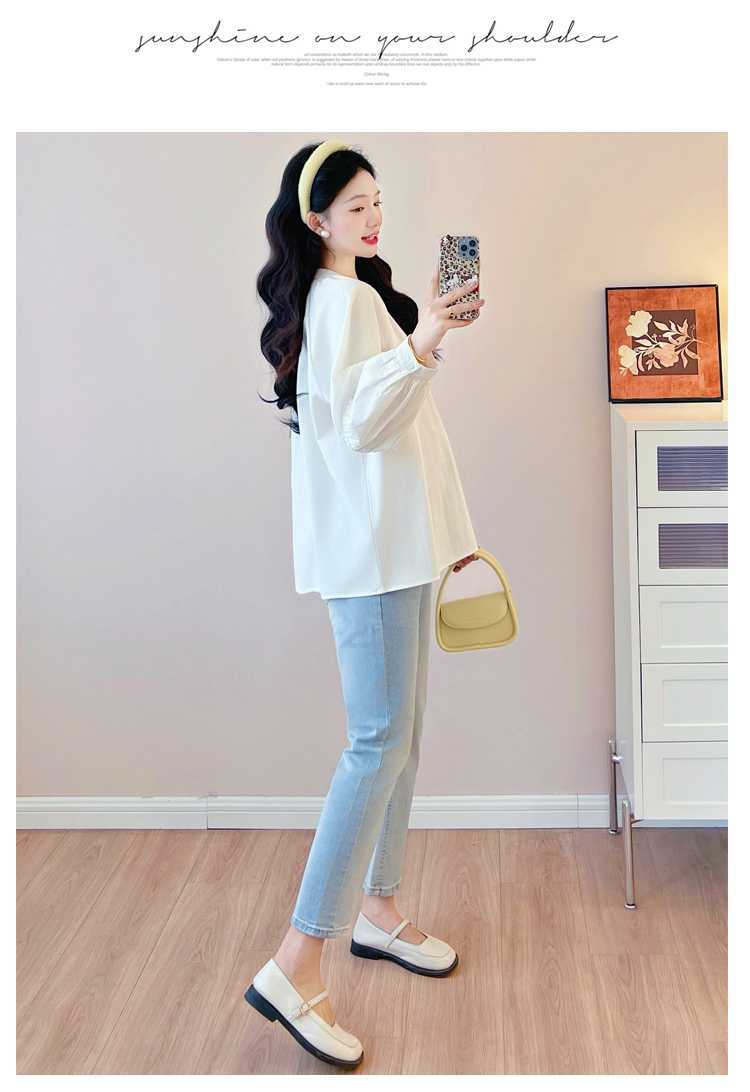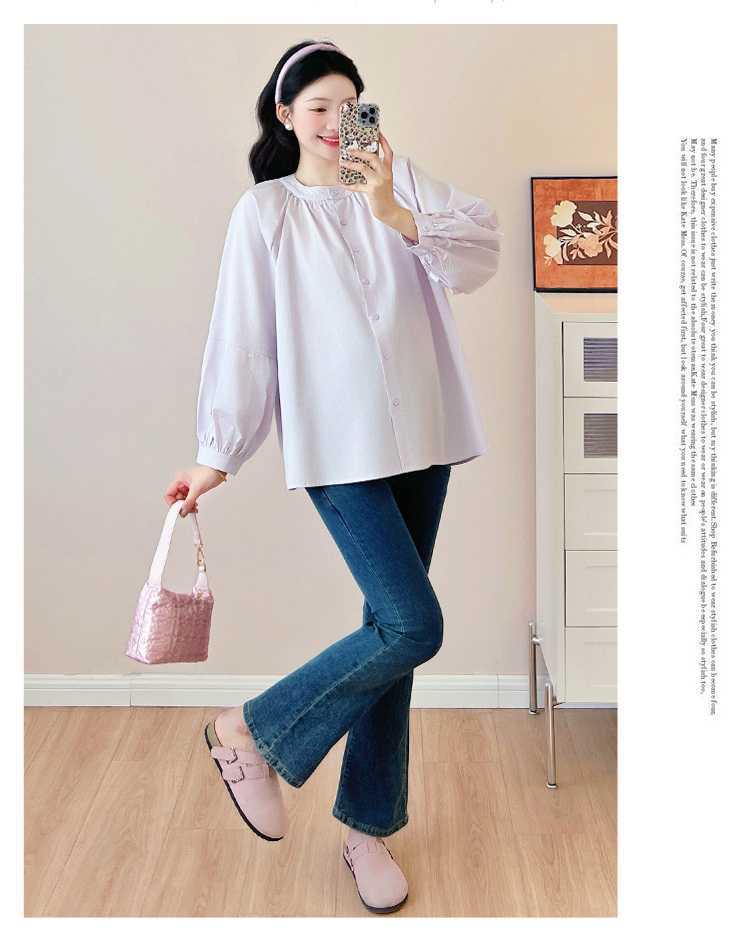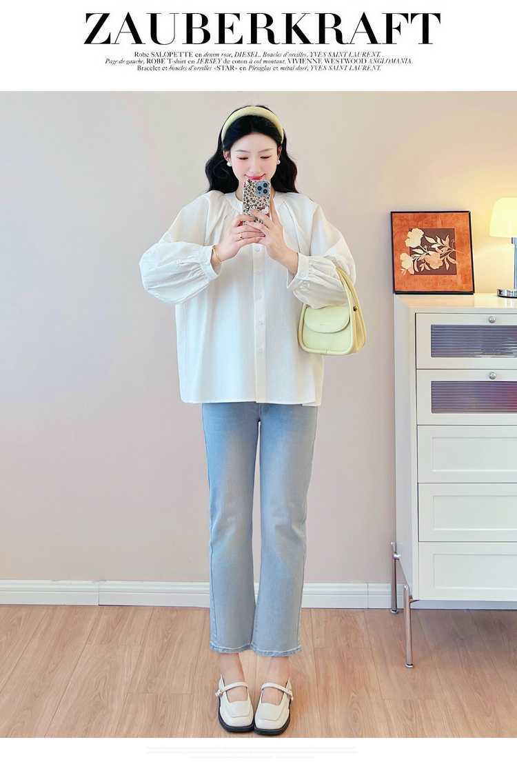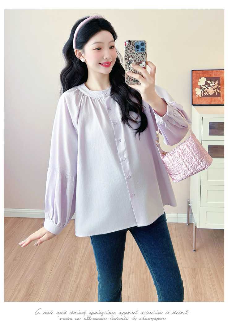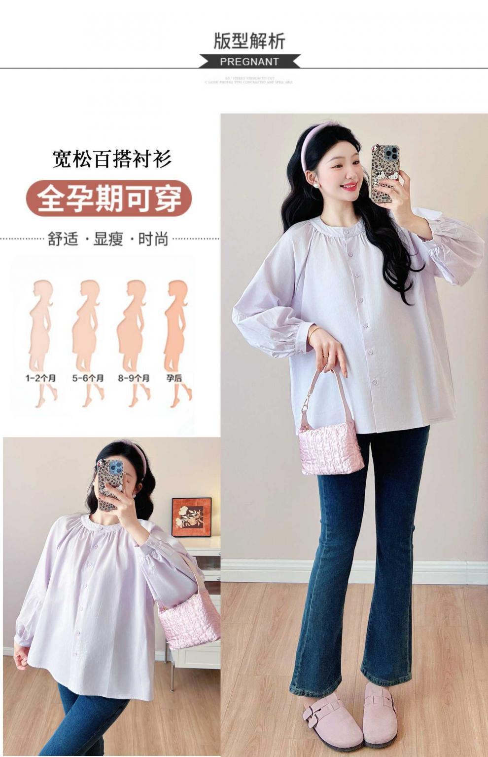 Camisa holgada de manga larga con cuello redondo y farol para embarazadas, estilo coreano informal, para la lactancia, primavera 2025