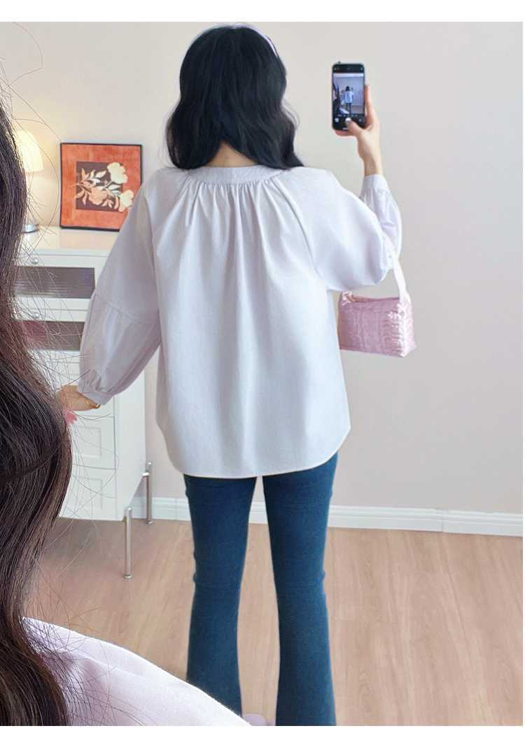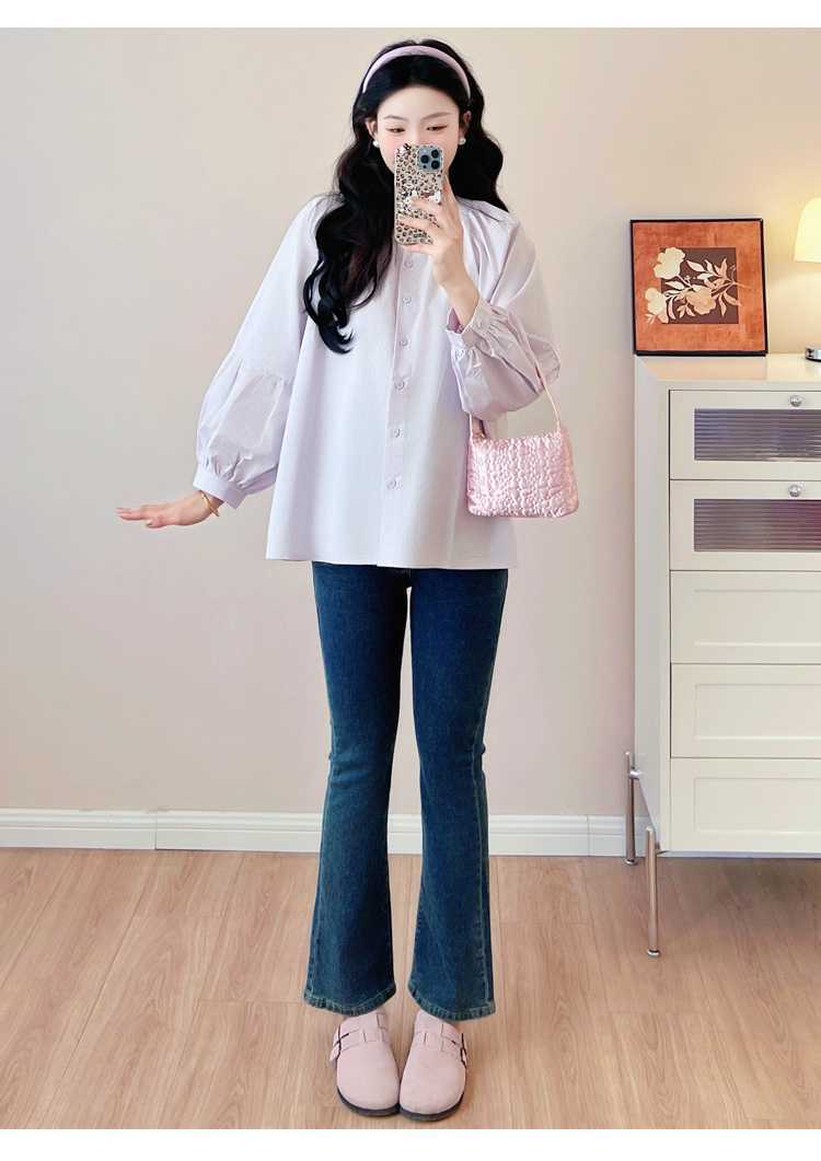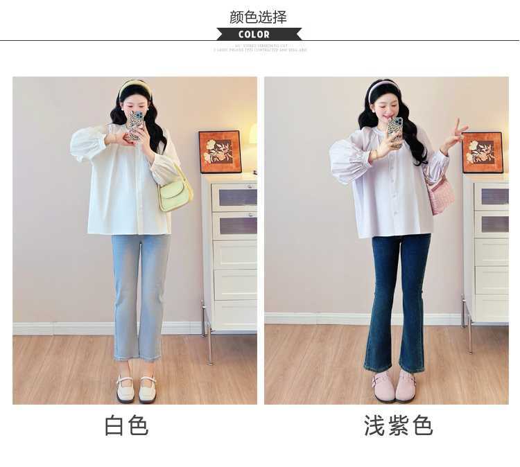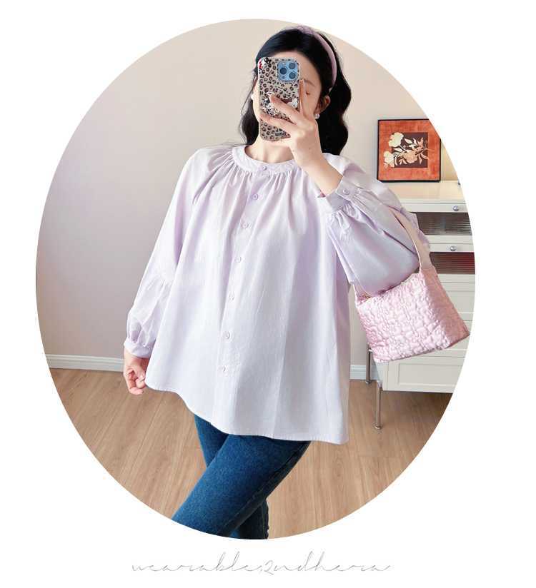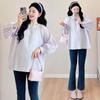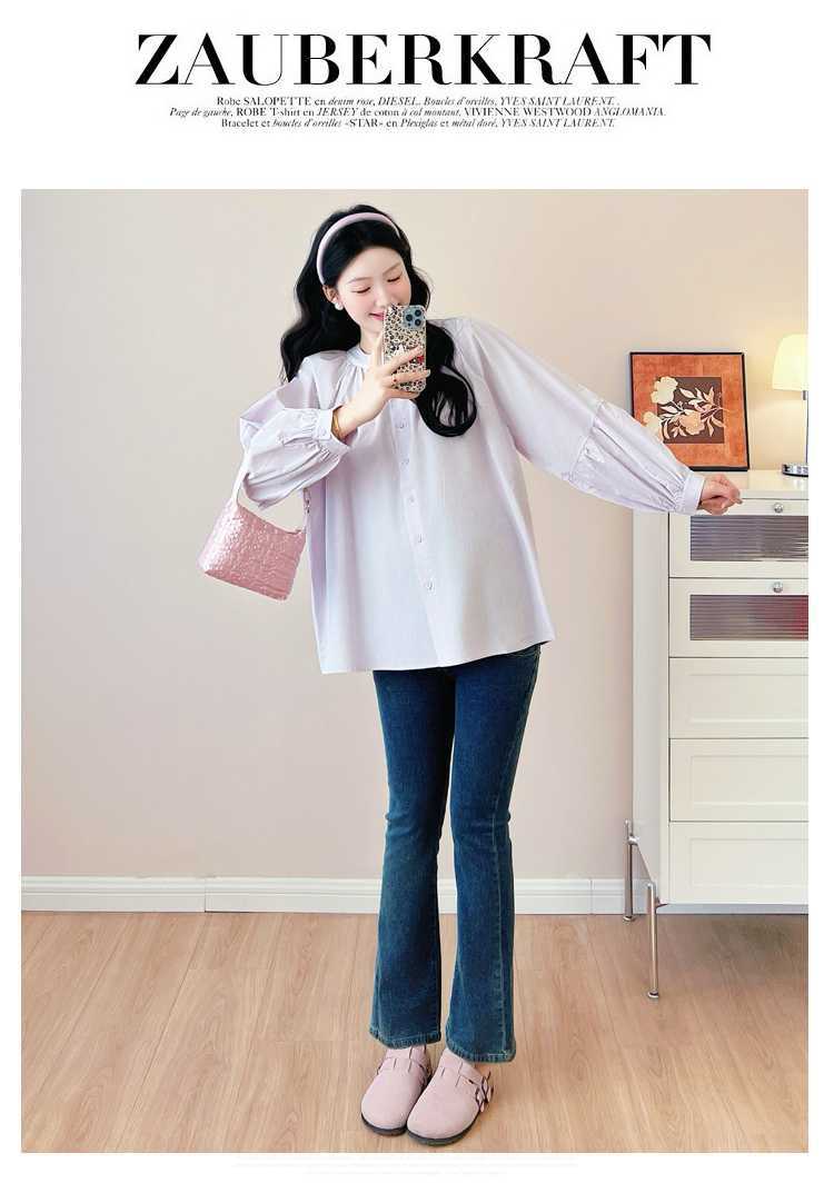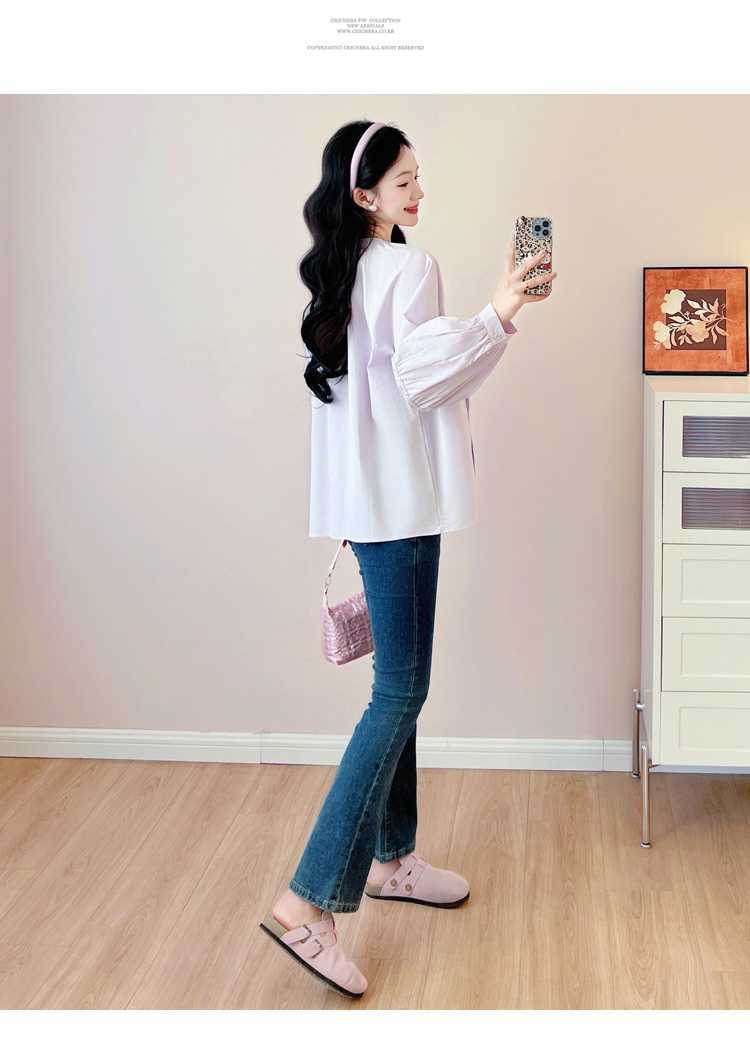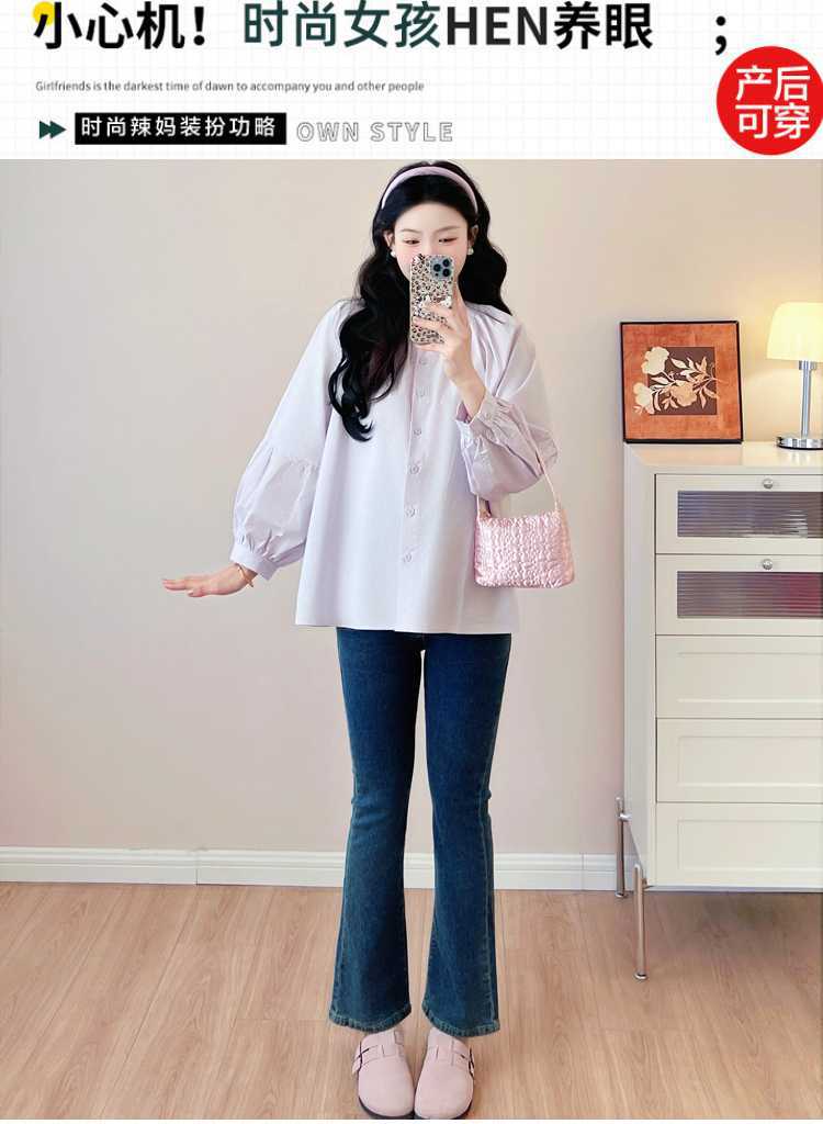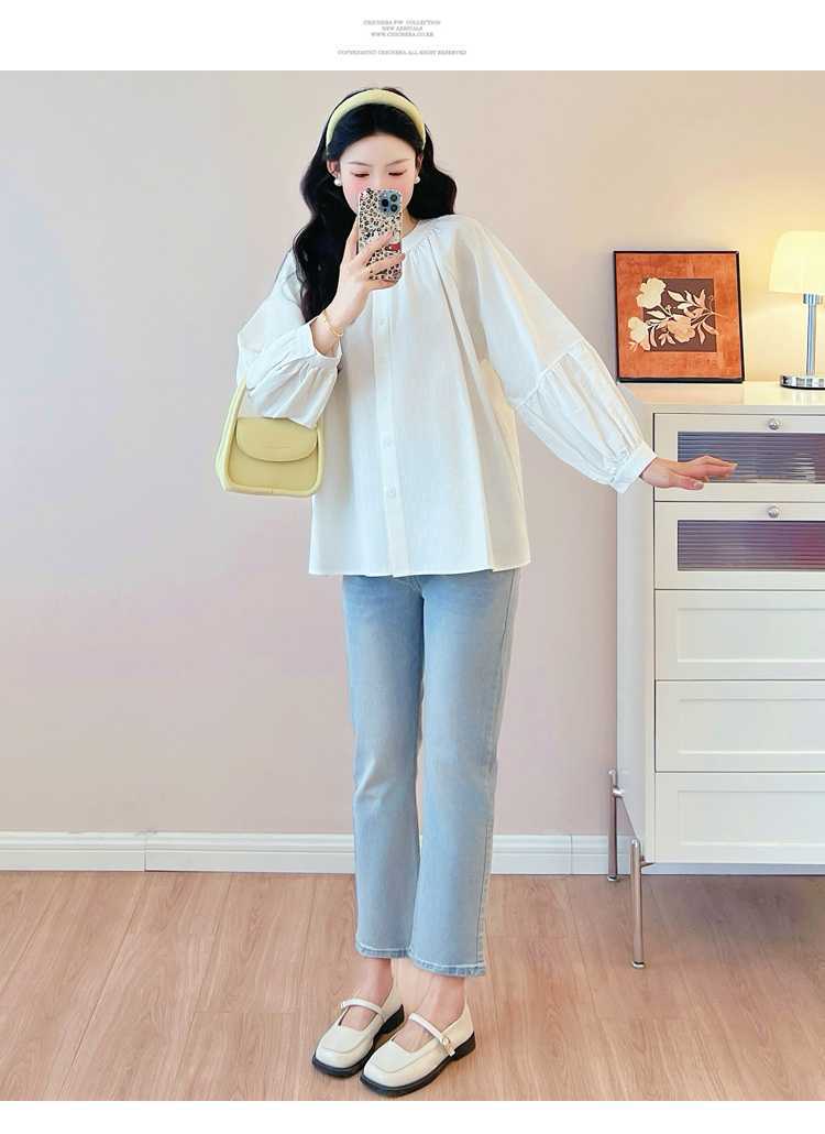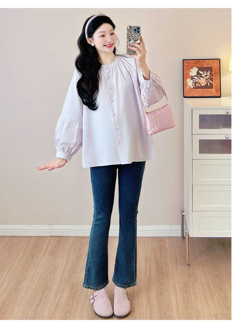 Camisa holgada de manga larga con cuello redondo y farol para embarazadas, estilo coreano informal, para la lactancia, primavera 2025