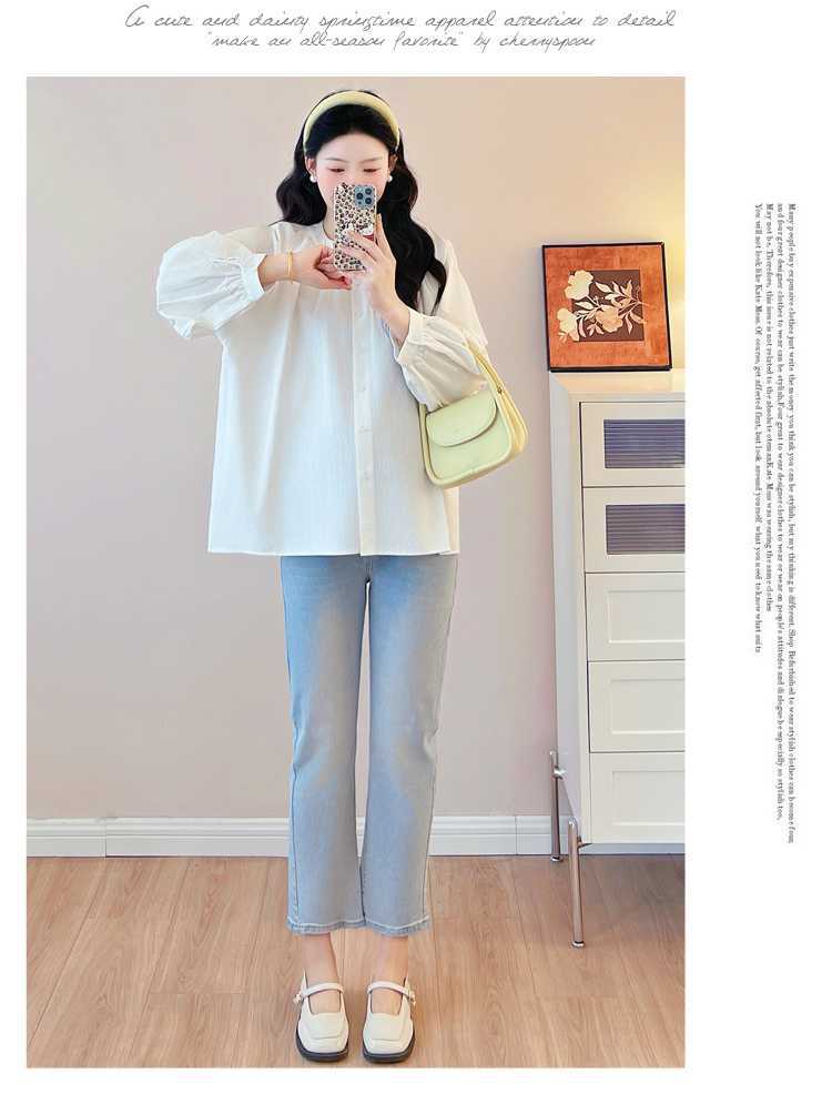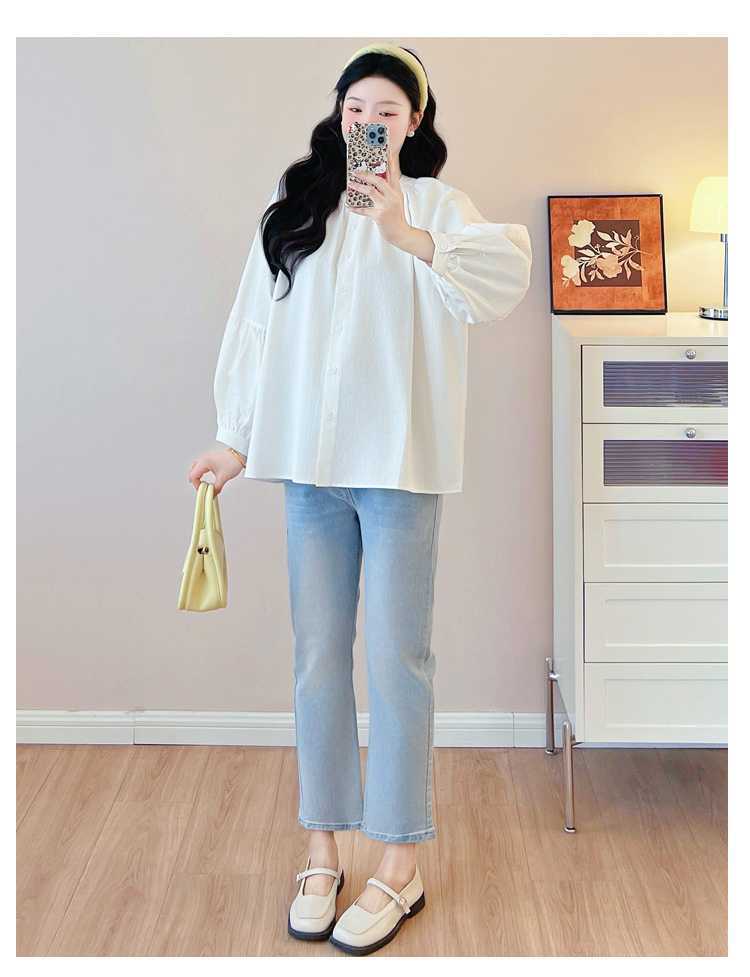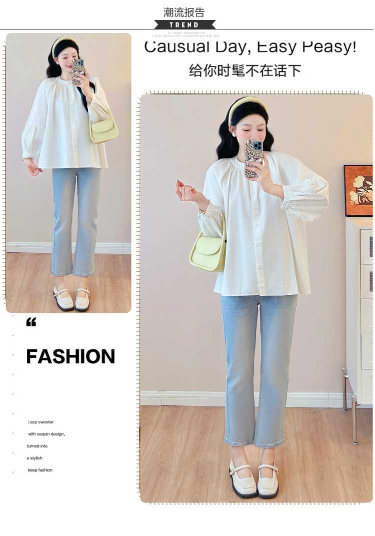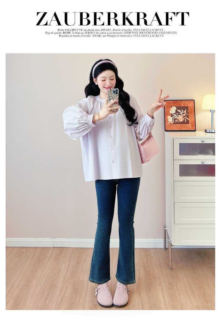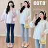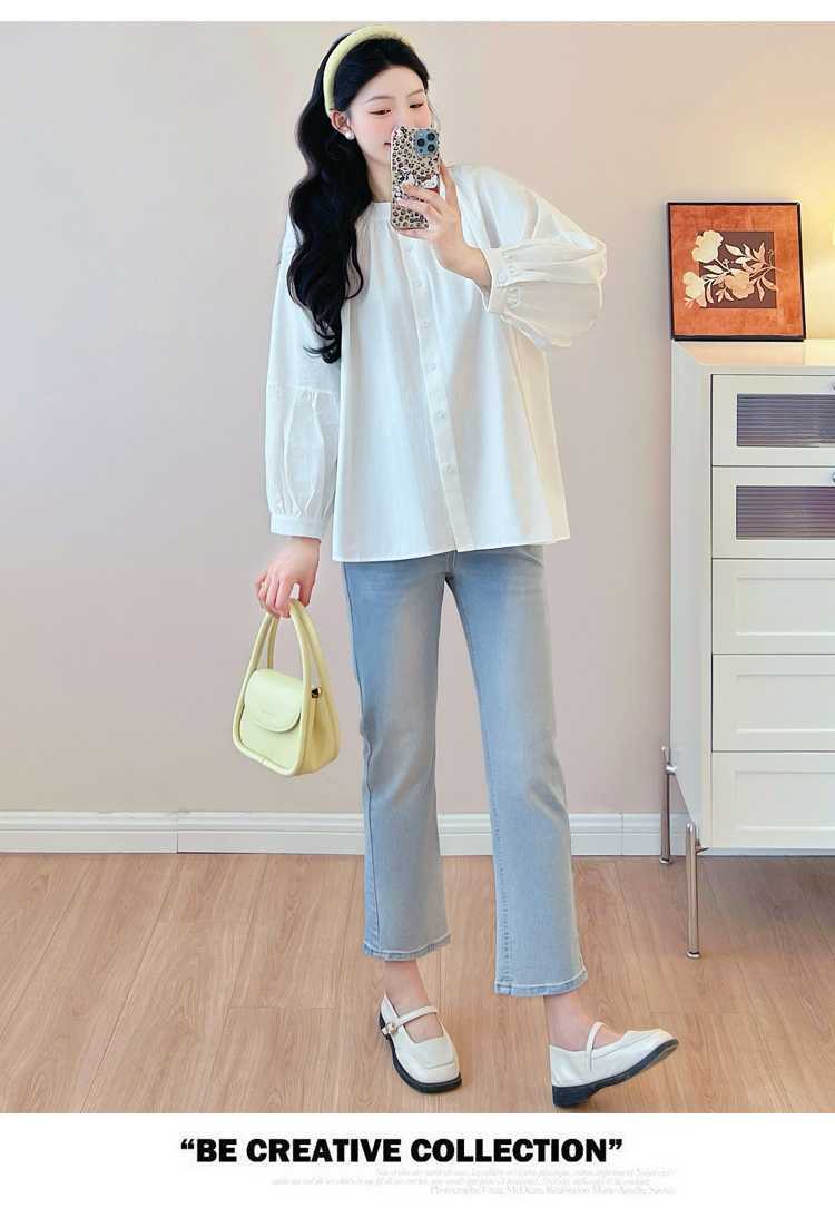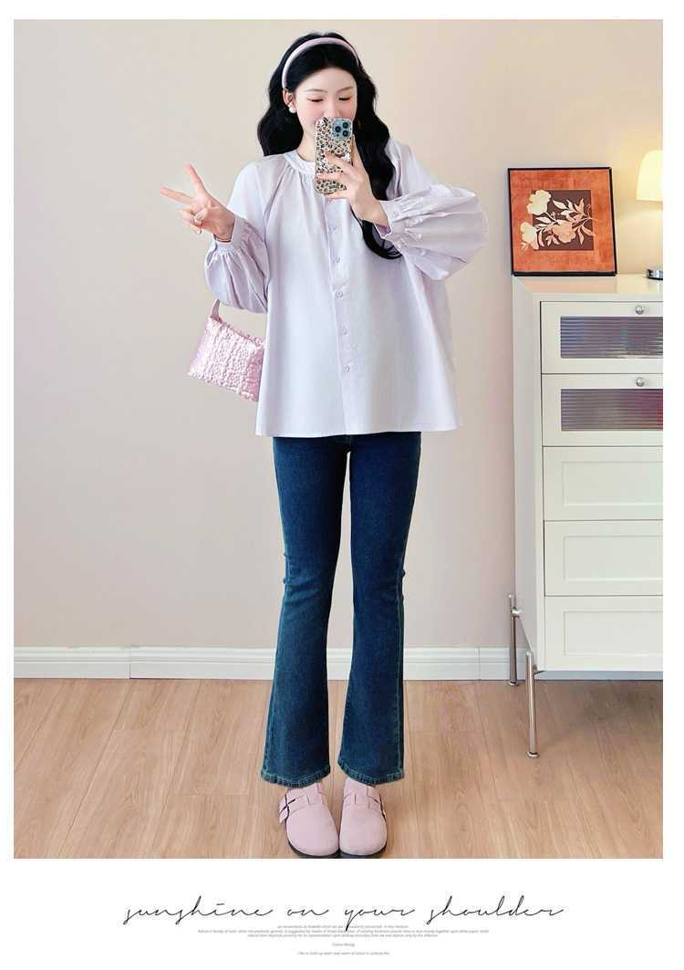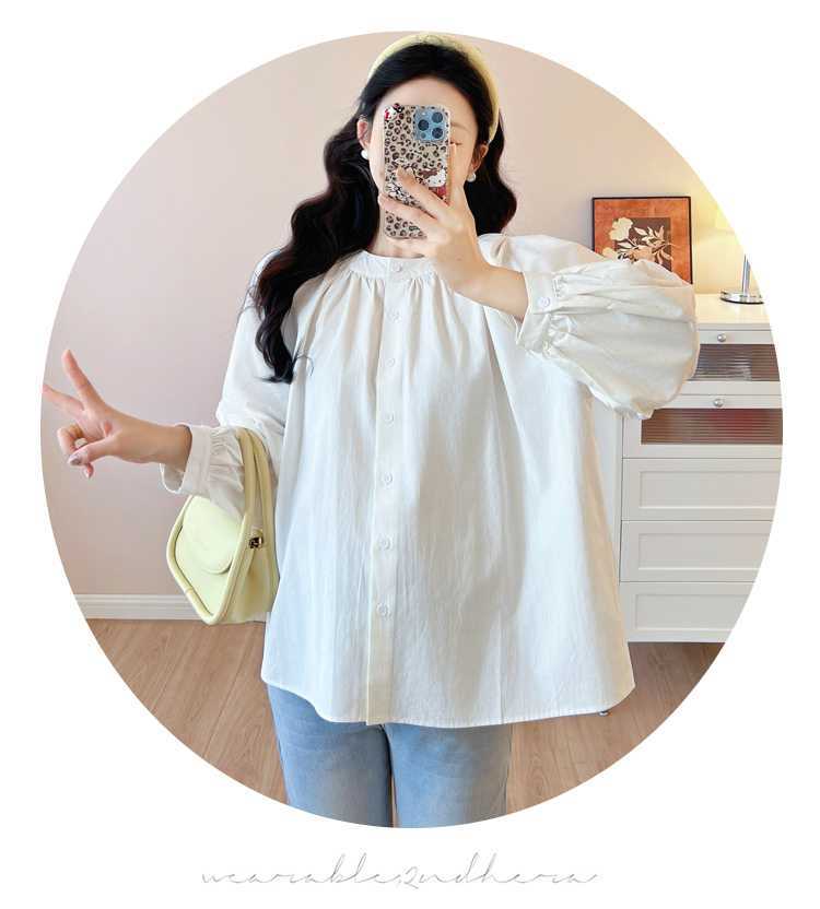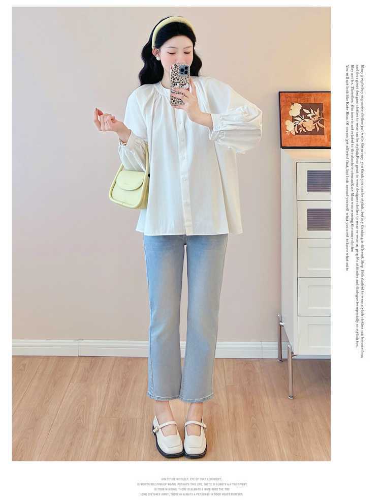 Camisa holgada de manga larga con cuello redondo y farol para embarazadas, estilo coreano informal, para la lactancia, primavera 2025