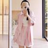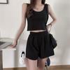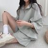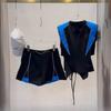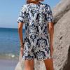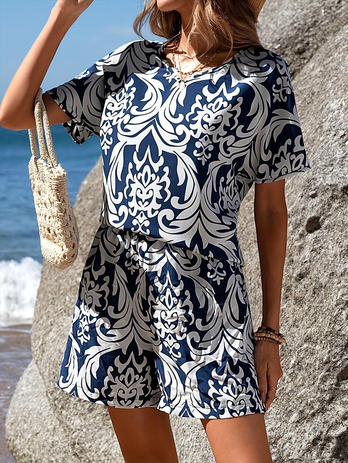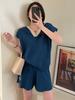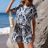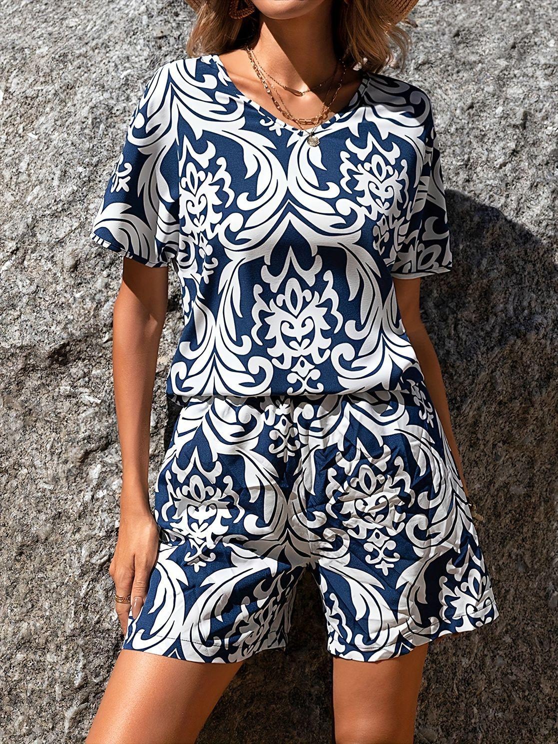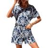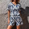 Traje informal de verano para mujer, estampado azul oscuro, manga corta y pantalones cortos, 5127