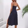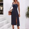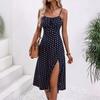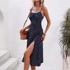 Vestido elegante de mujer con estampado de lunares, sin mangas y dobladillo dividido para primavera y verano