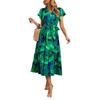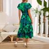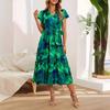 Elegante vestido con cuello cruzado y mangas con volantes con estampado floral para primavera y verano.