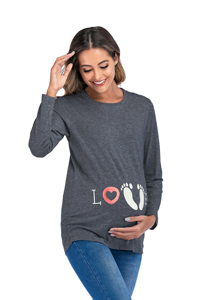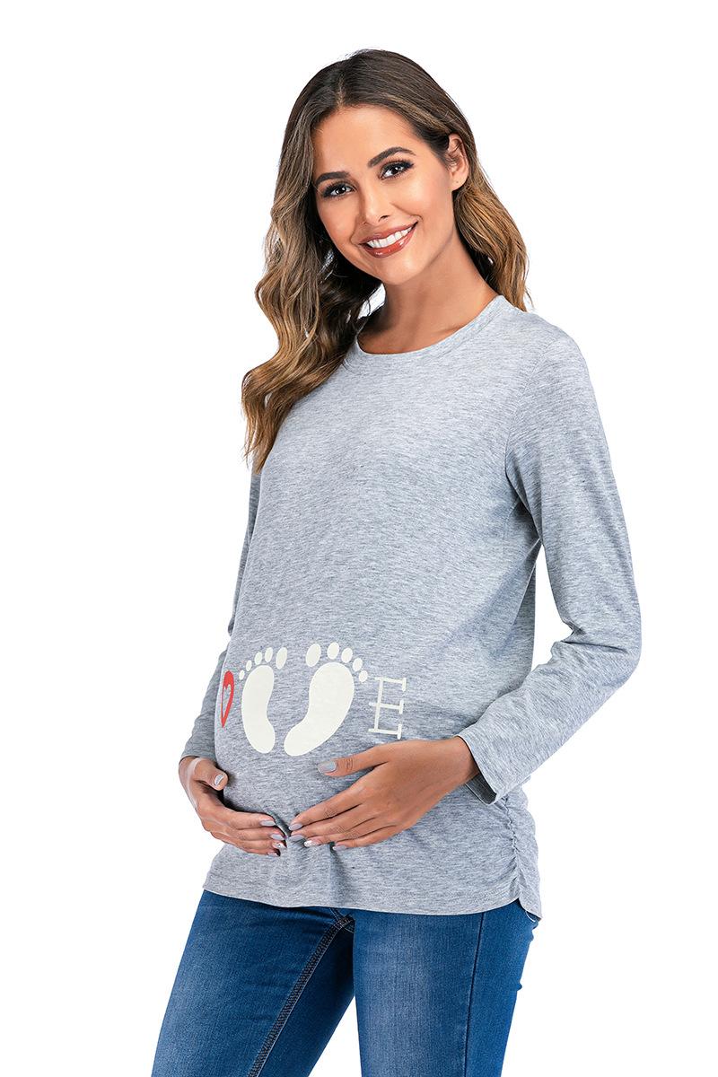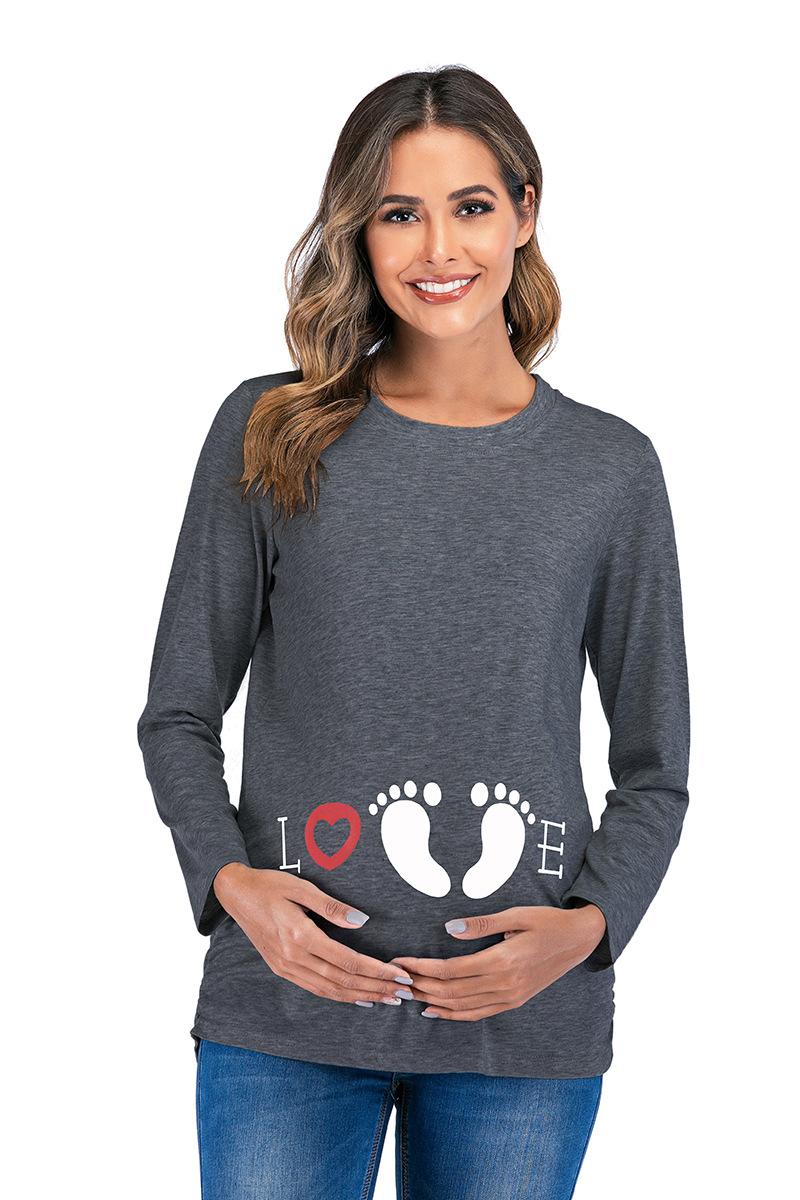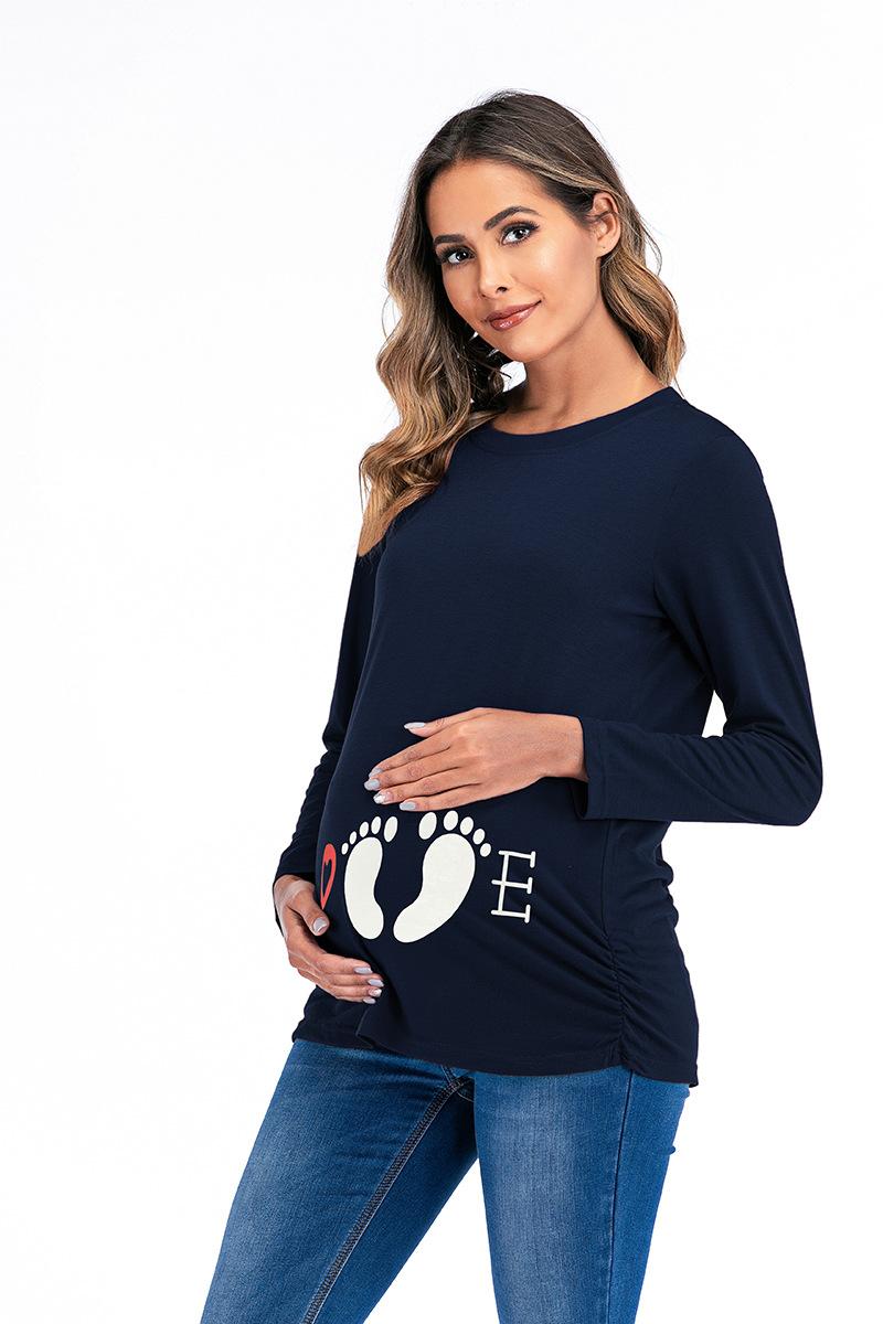 6116# Camiseta de maternidad de talla grande con estampado de pies europeos y americanos, nueva moda de verano