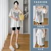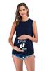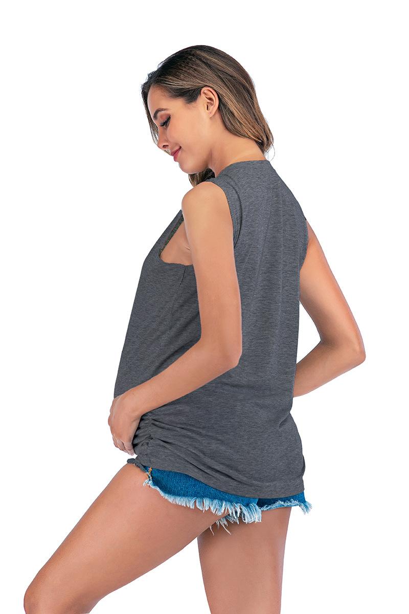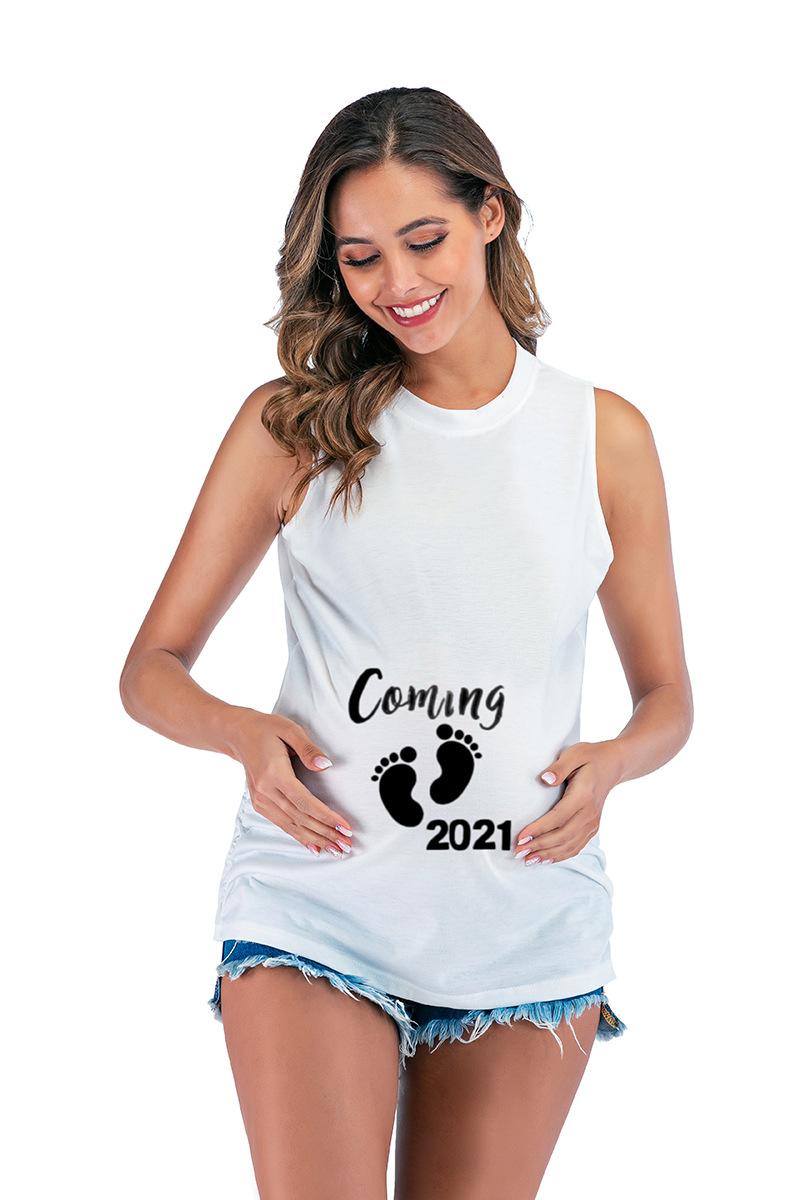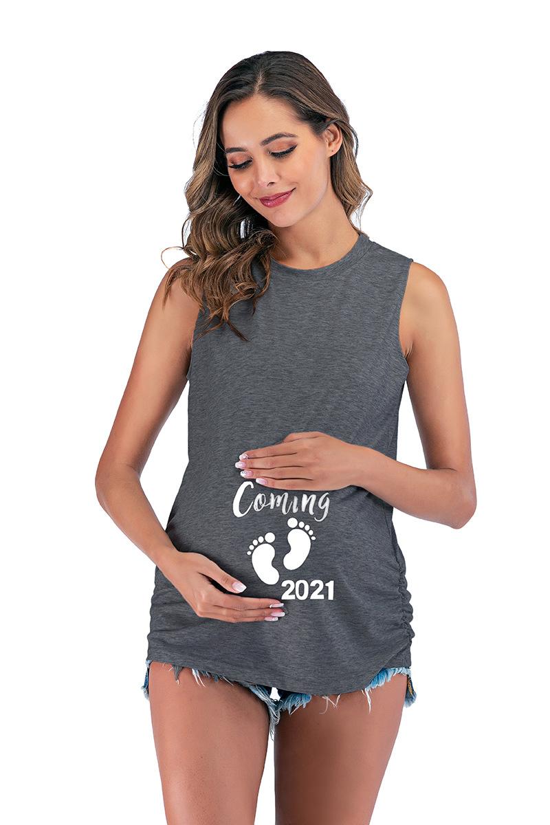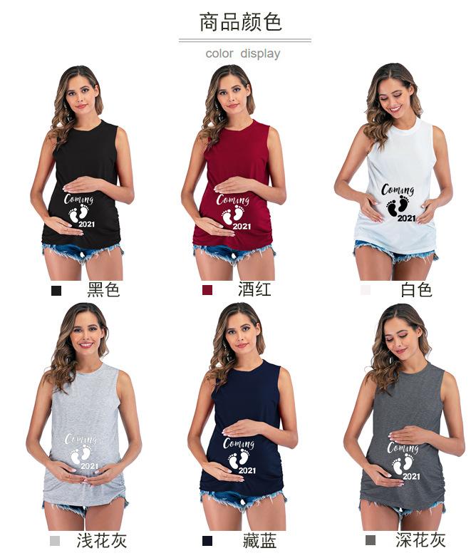 6157# Camiseta de maternidad de talla grande con estampado de pies europeos y americanos y cuello redondo