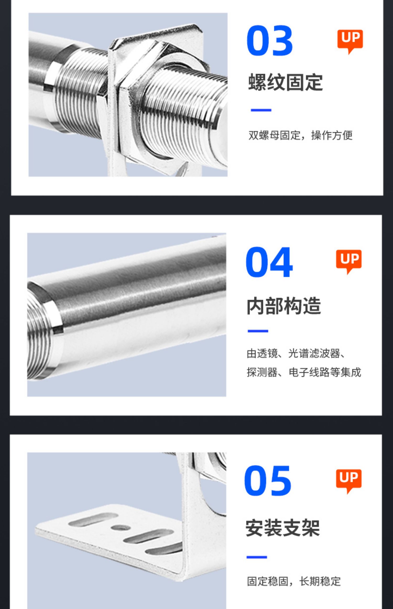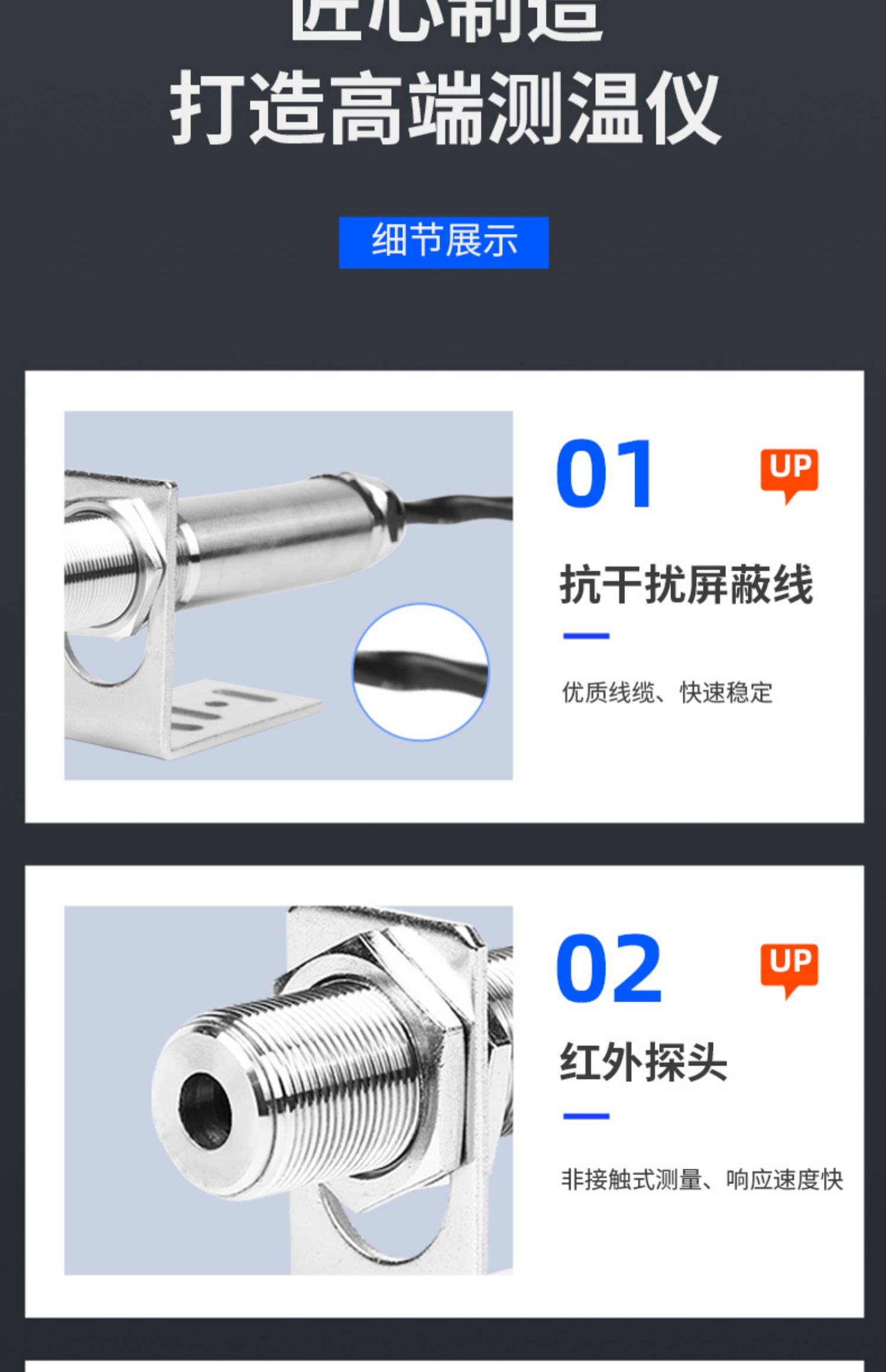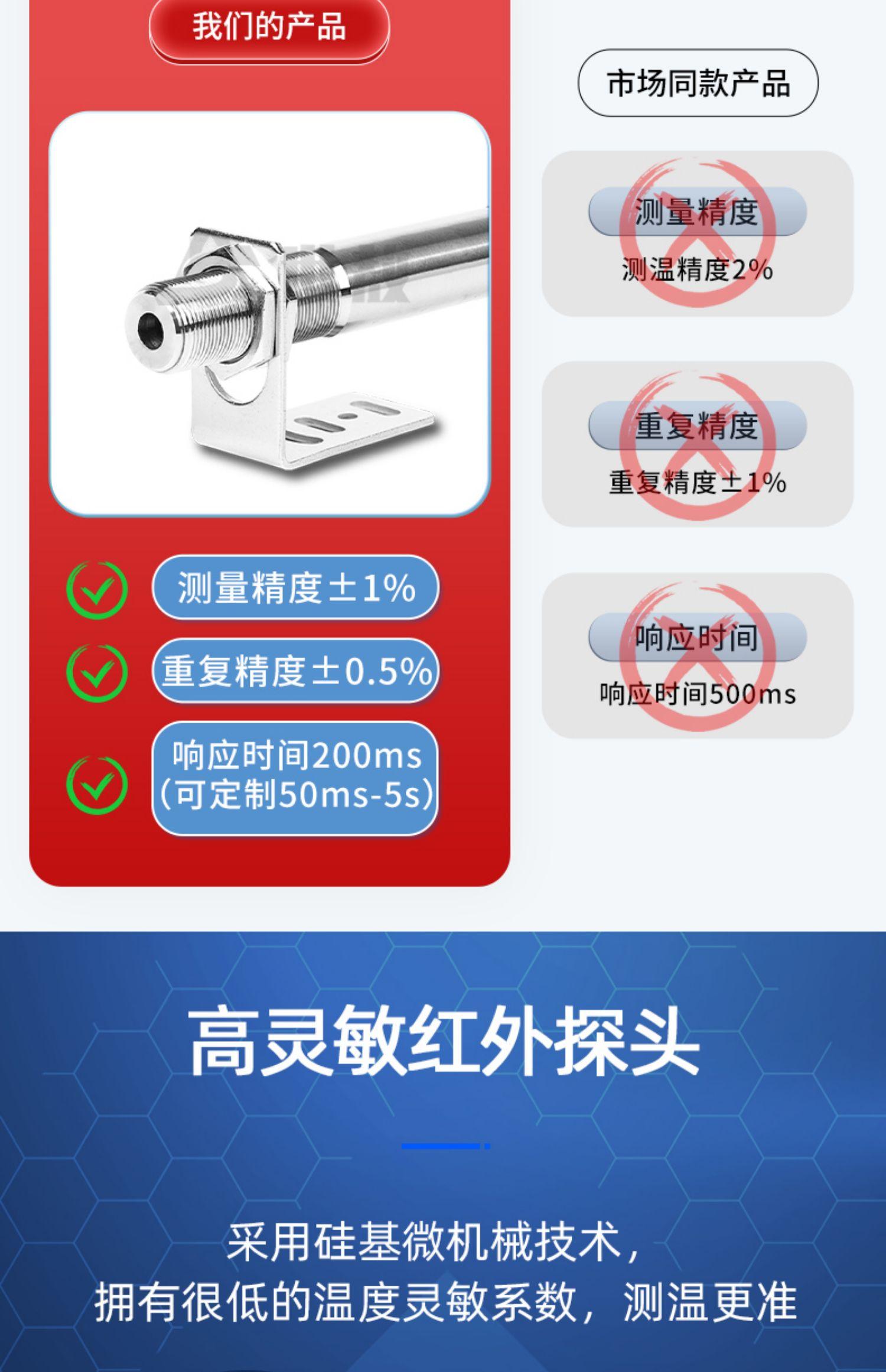 Sensor de temperatura, sonda, transductor, termómetro infrarrojo en línea, pantalla digital sin contacto, industrial, de alta precisión.