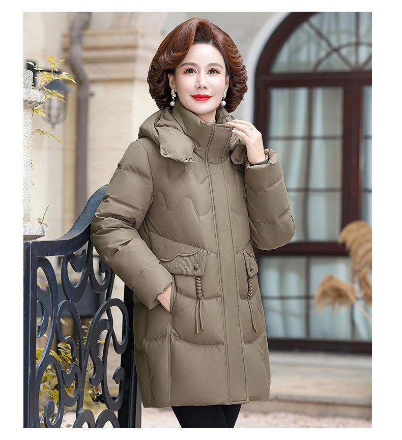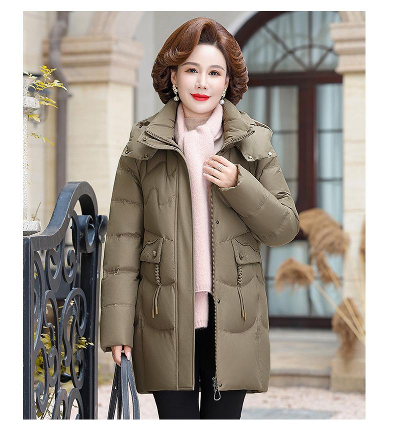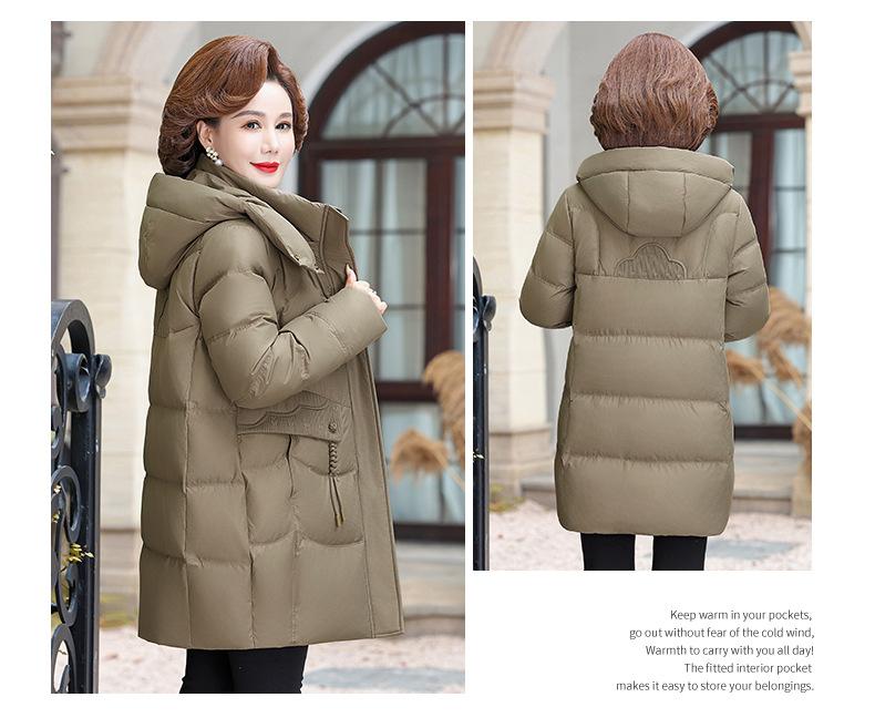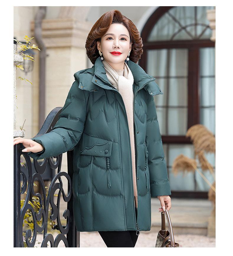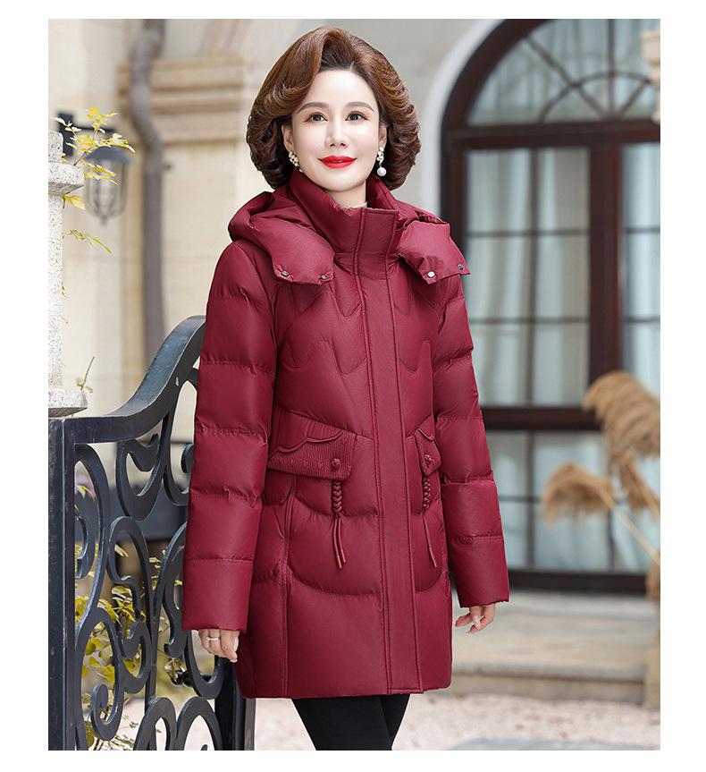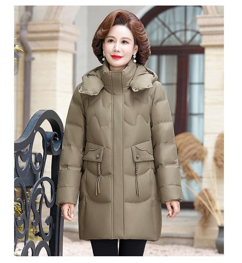 Chaqueta de plumón de pato blanco para mujer de mediana edad y anciana, ropa de madre, otoño e invierno 2023, abrigo grueso y cálido con capucha de longitud media