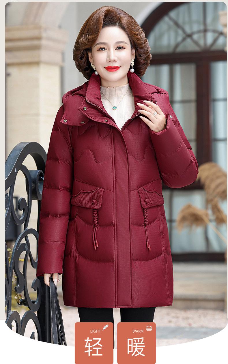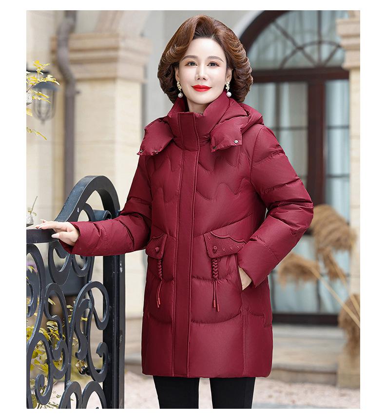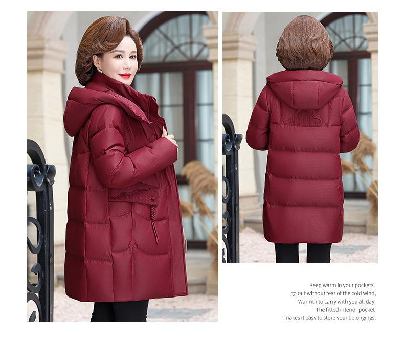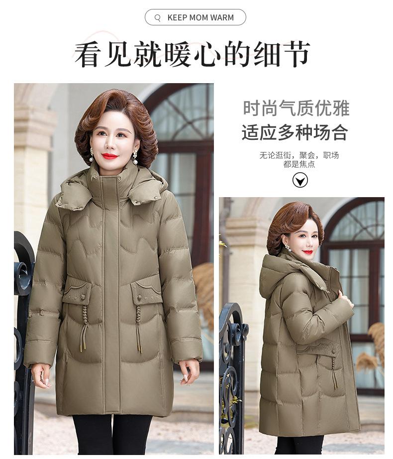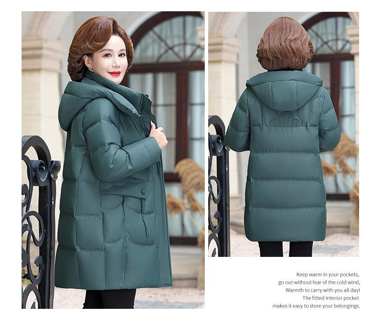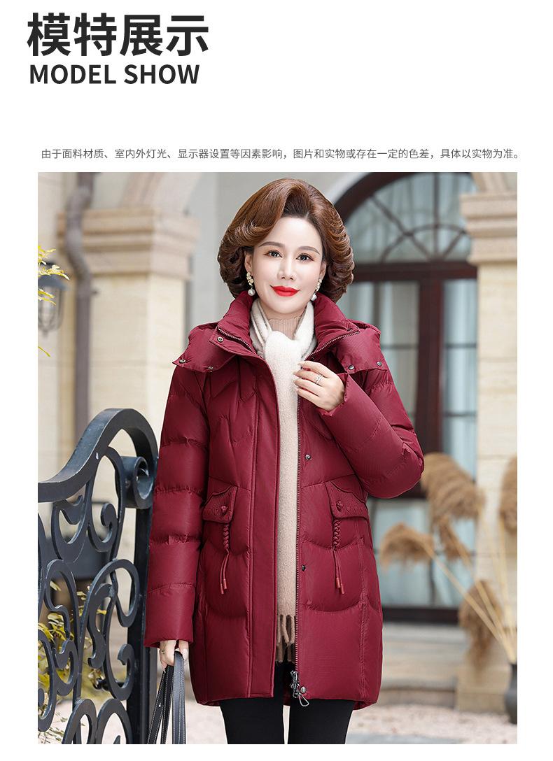 Chaqueta de plumón de pato blanco para mujer de mediana edad y anciana, ropa de madre, otoño e invierno 2023, abrigo grueso y cálido con capucha de longitud media
