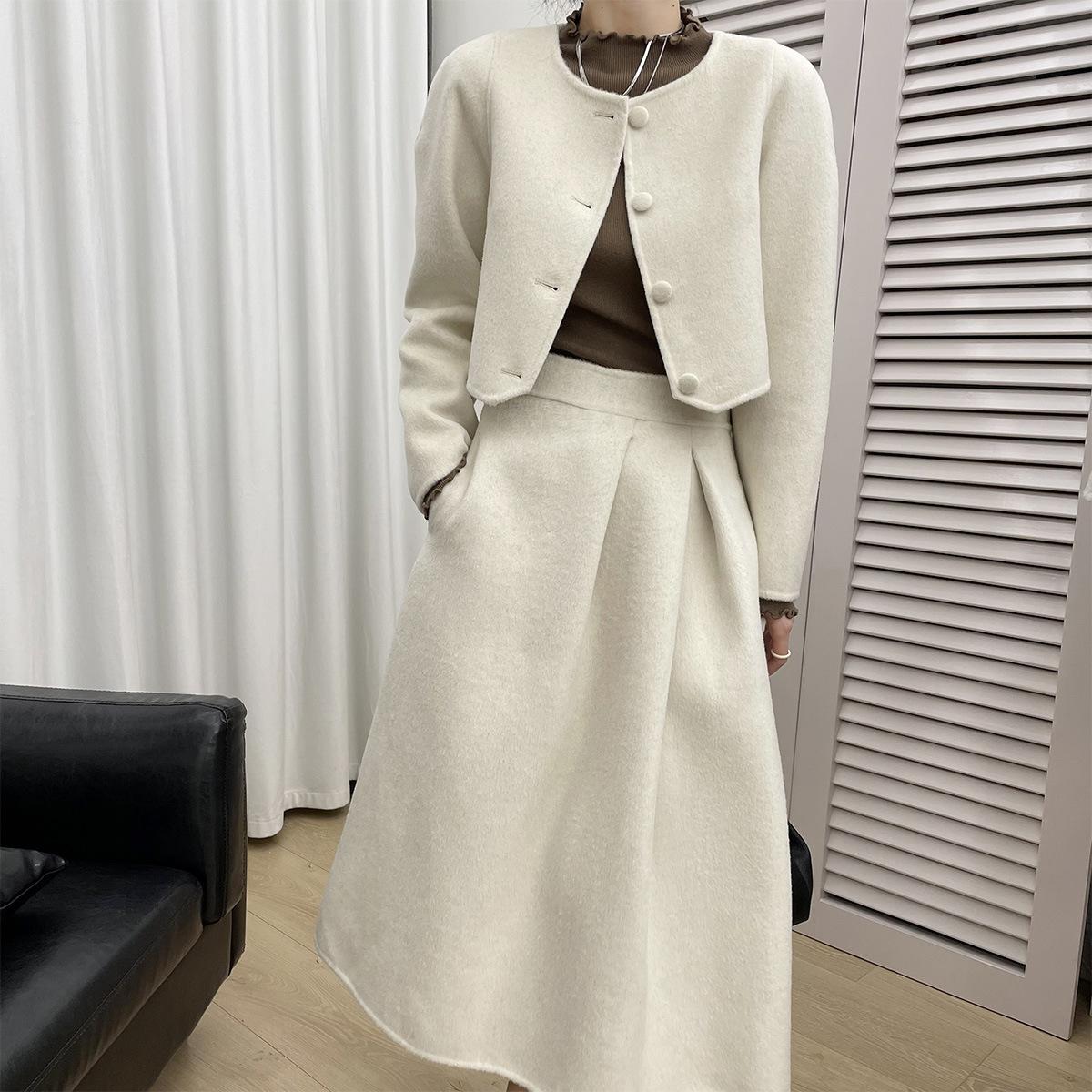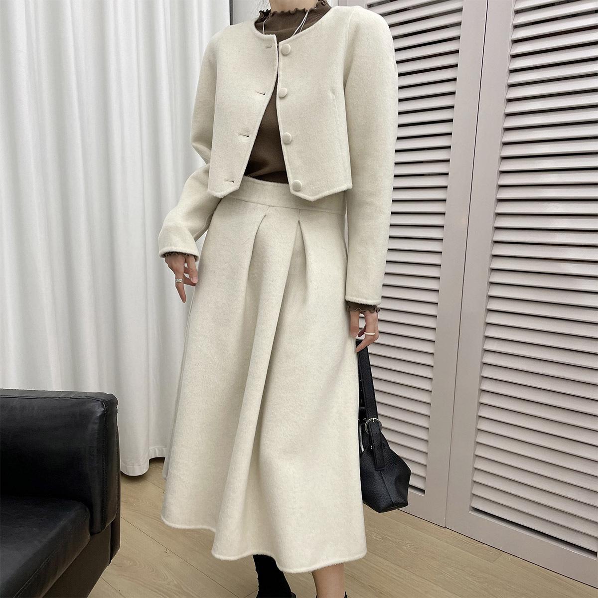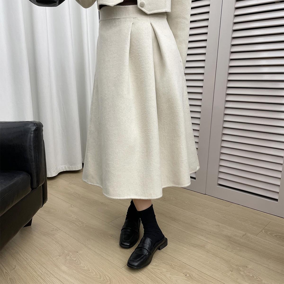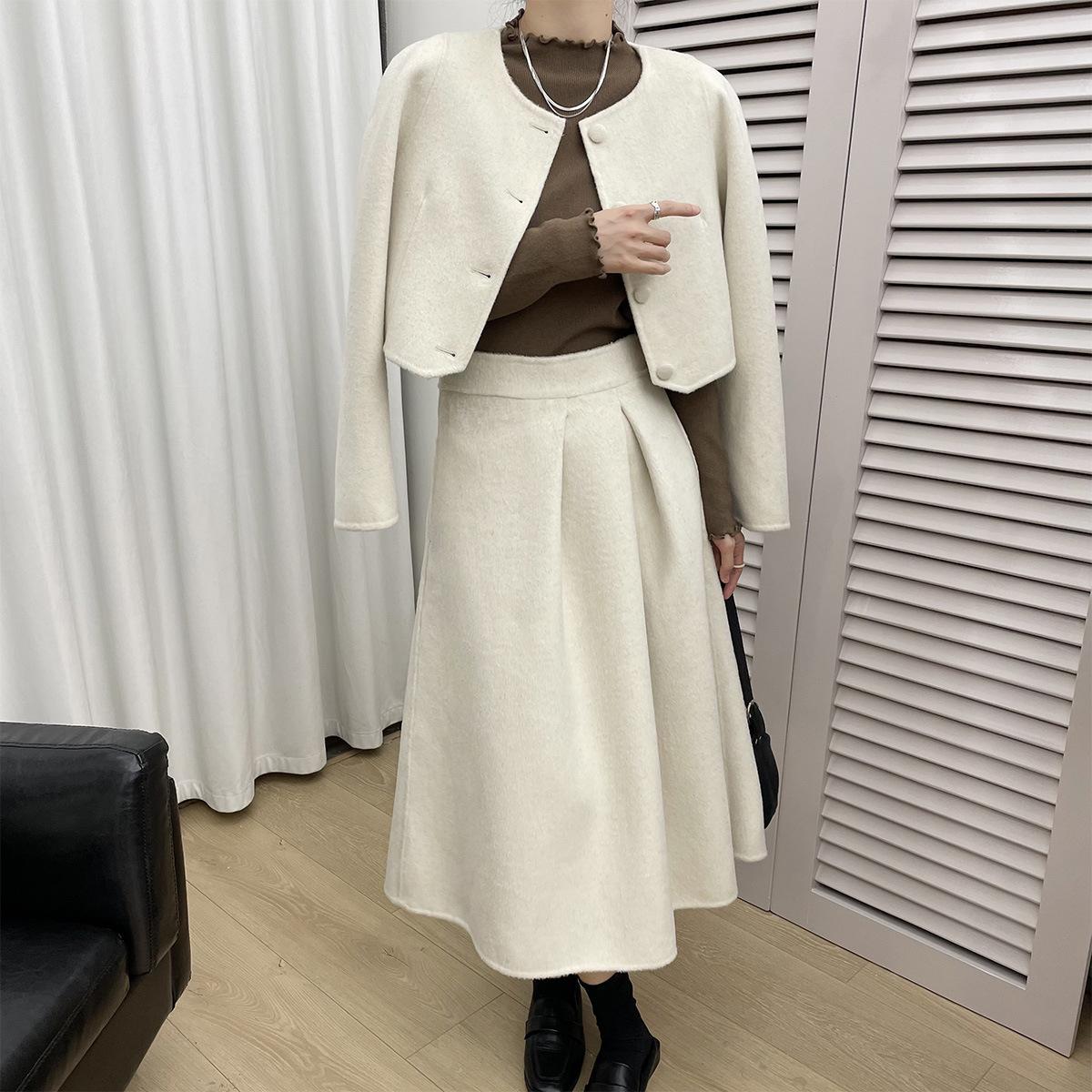Falda de traje de lana de doble cara Lizhixi para invierno, nueva y elegante falda adelgazante de línea A, conjunto de dos piezas 230975
