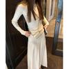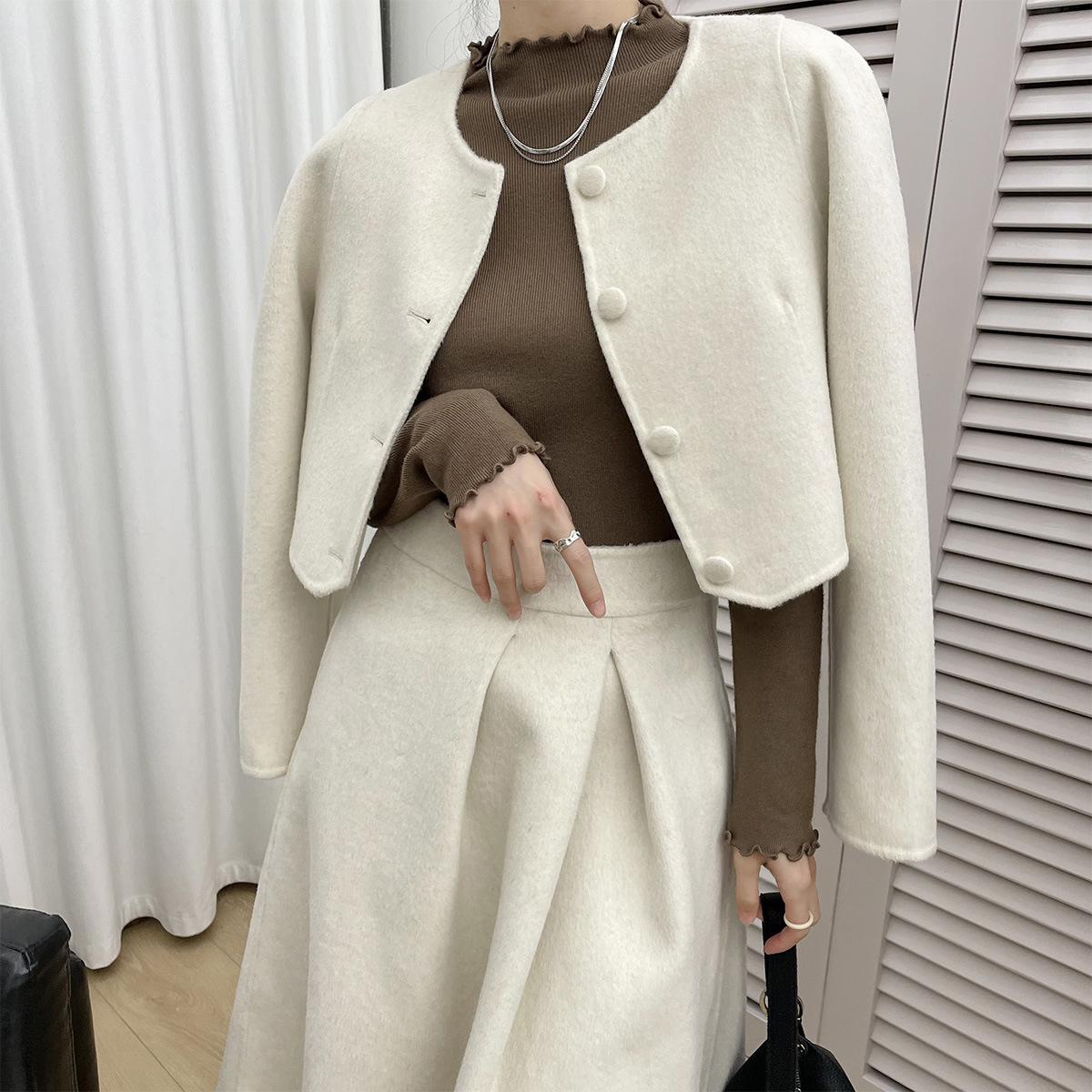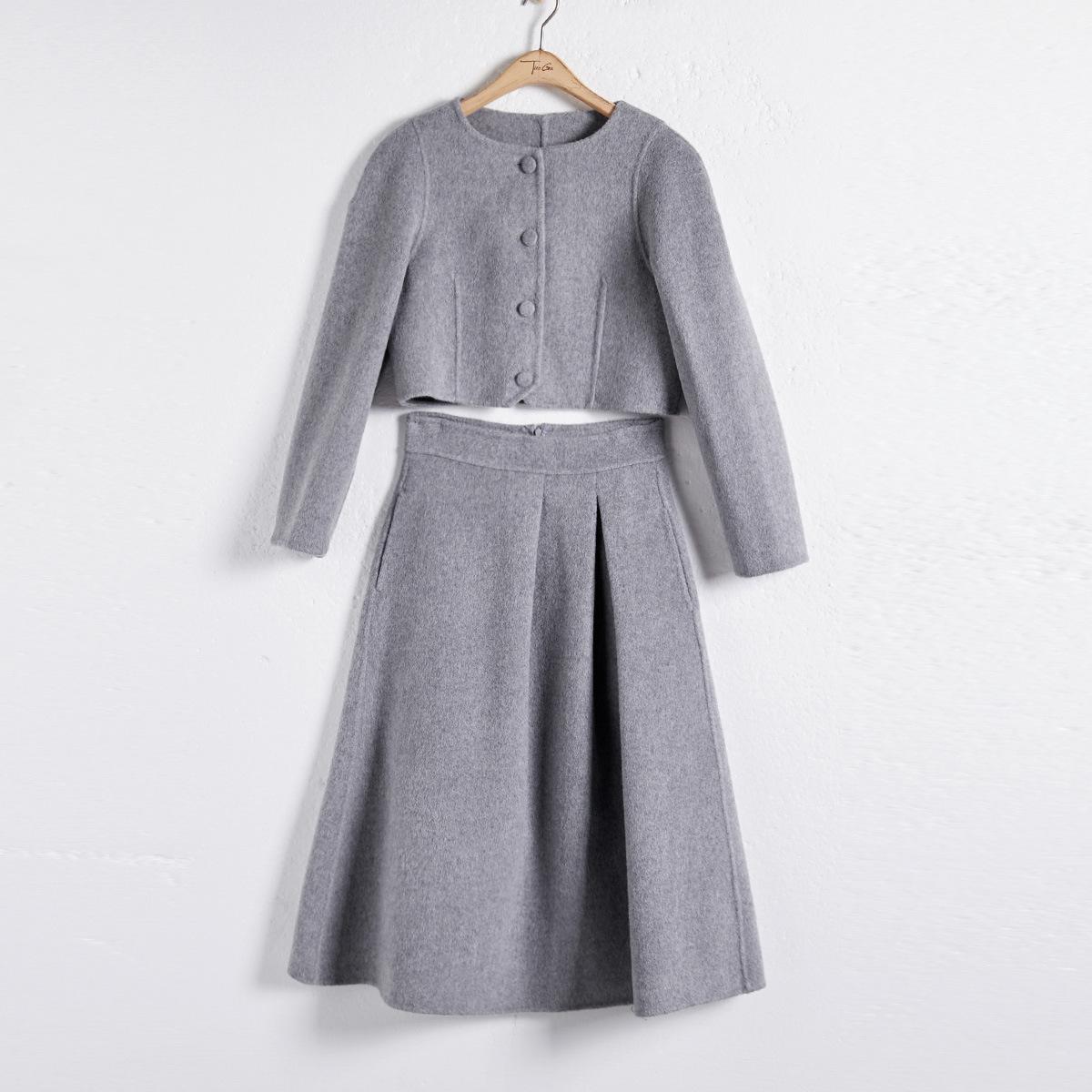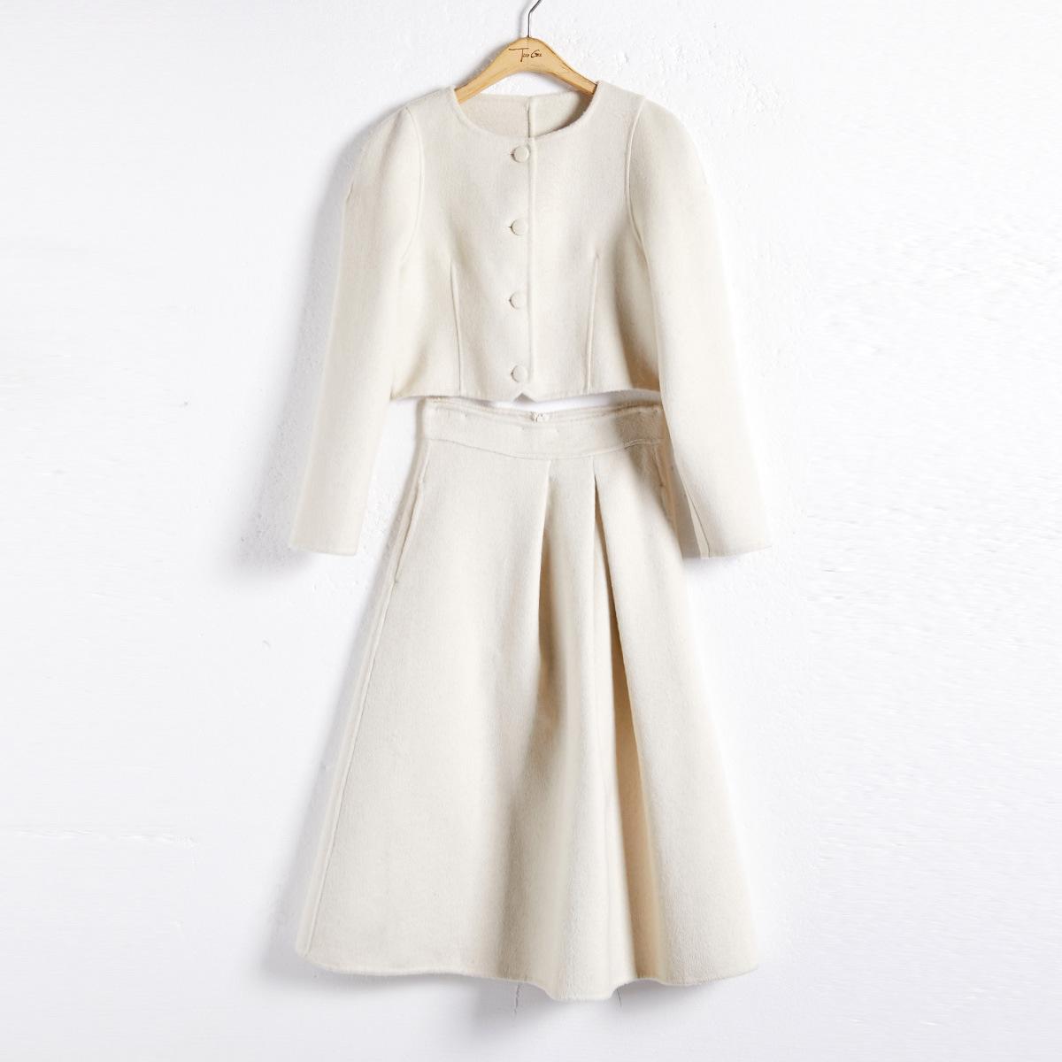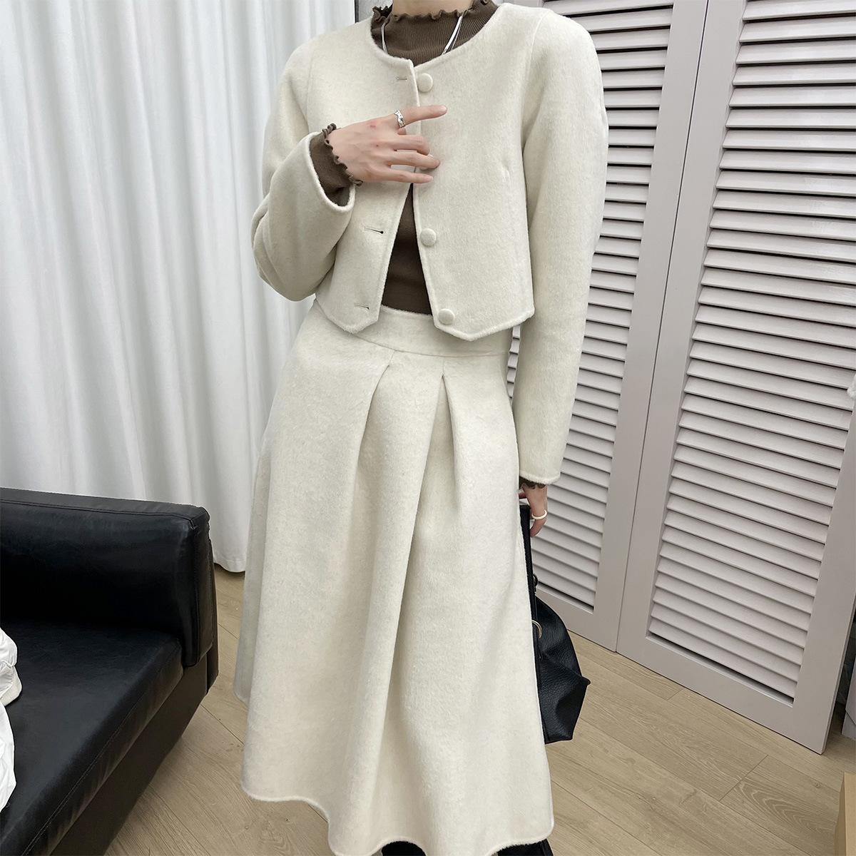 Falda de traje de lana de doble cara Lizhixi para invierno, nueva y elegante falda adelgazante de línea A, conjunto de dos piezas 230975