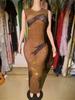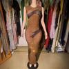 Cuello redondo Moda Sexy Sin mangas Planchado completo Con incrustaciones de diamantes Ajustado Largo hasta el piso Vestido de cadera Fiesta Vestido de fiesta
