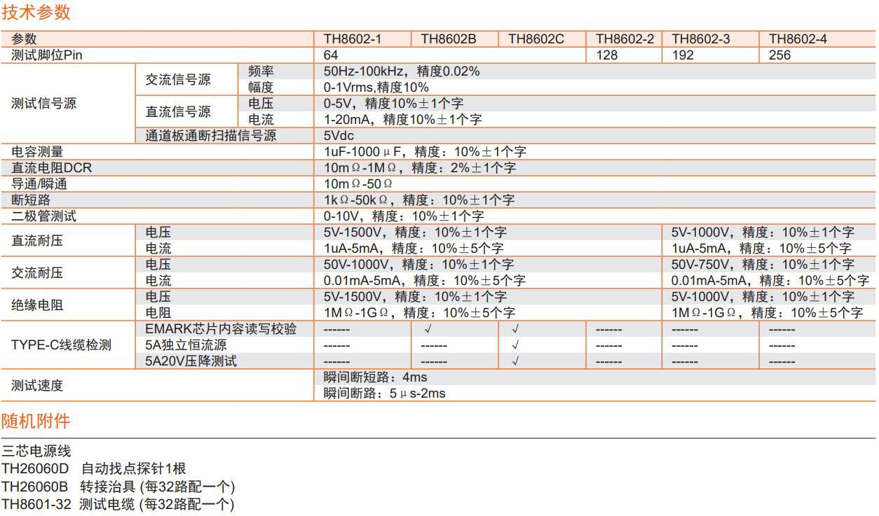 TH8602-1(64PIN), TH8602-2(128PIN), TH8602-3(192PIN), TH8602-4(256PIN)