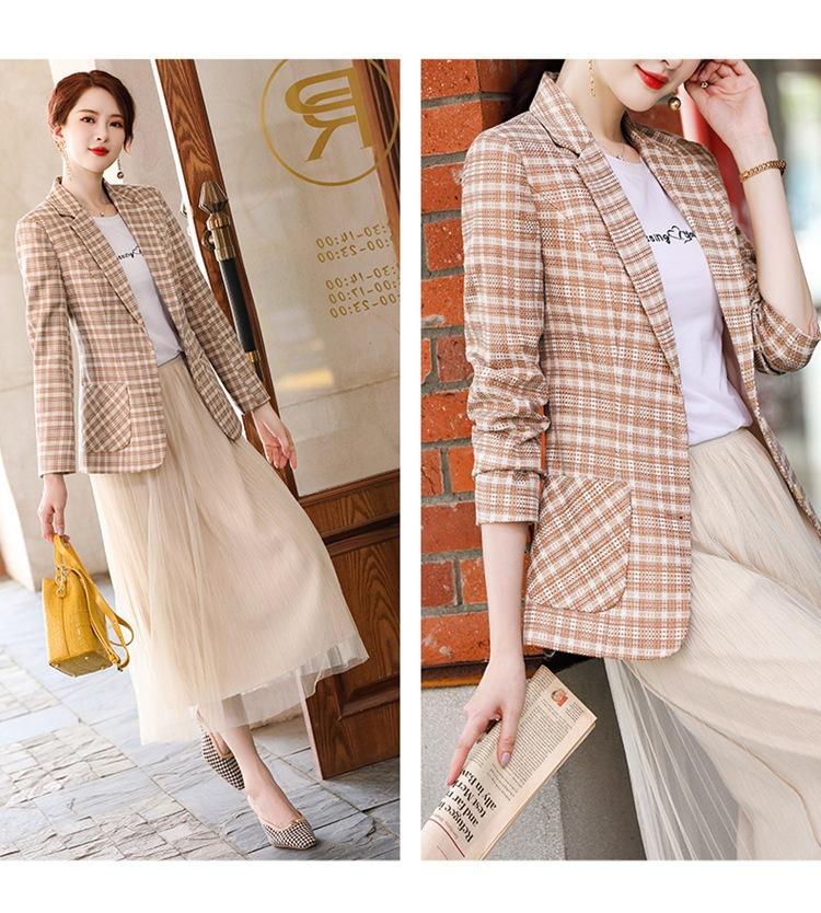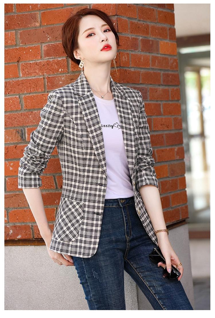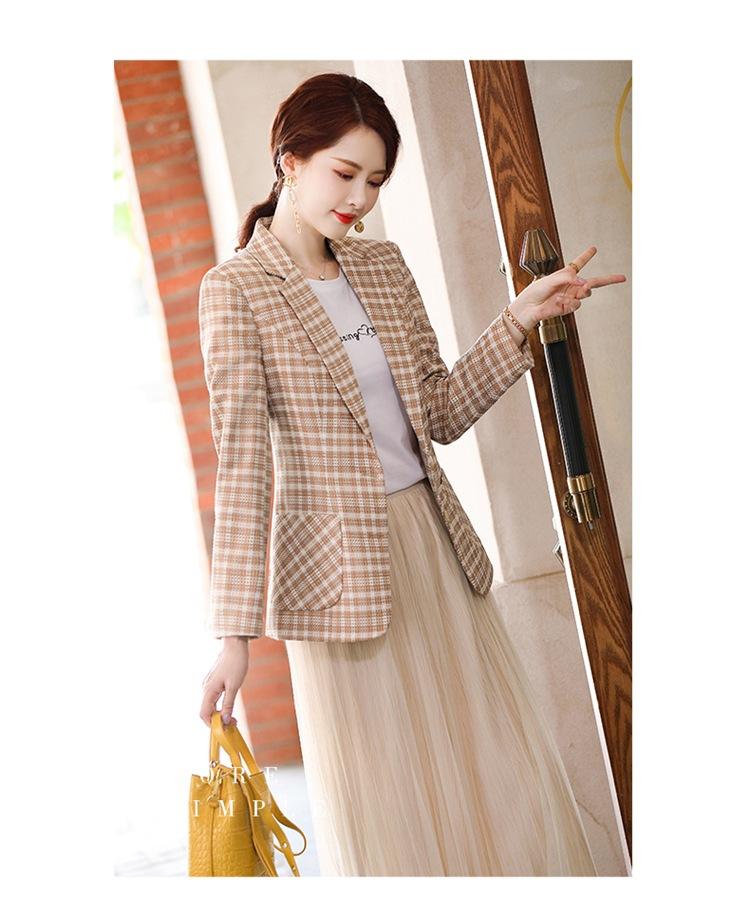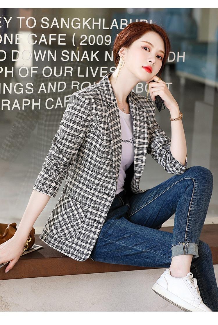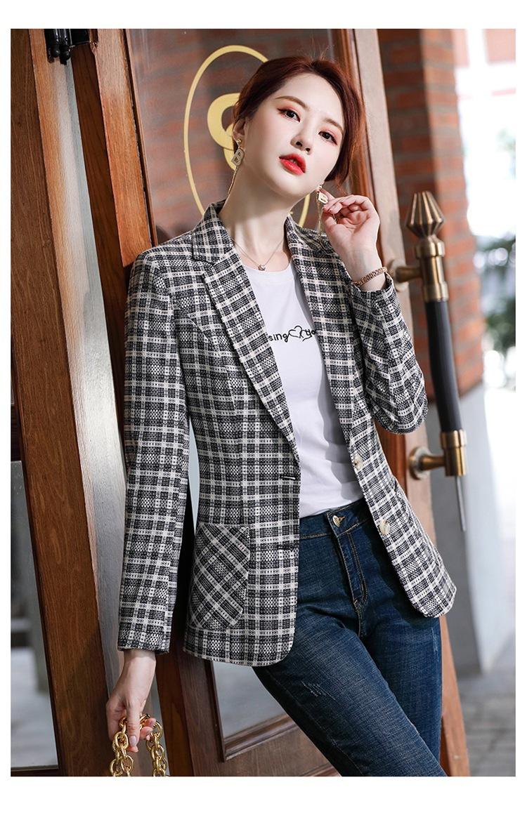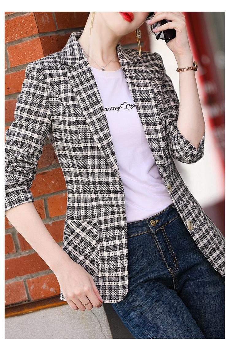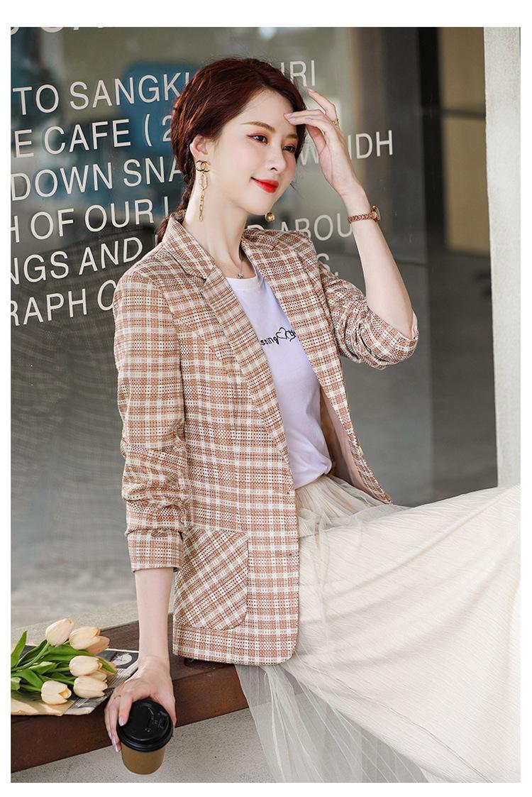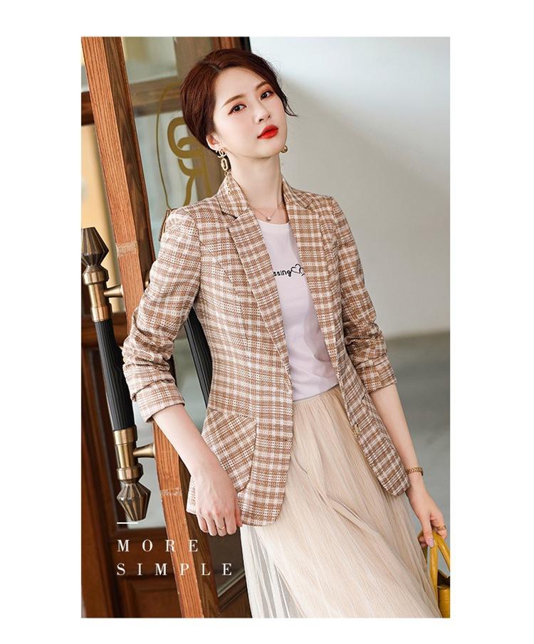 Primavera y verano nuevo estilo coreano de moda elegante a cuadros traje pequeño para mujer ropa de negocios chaqueta de traje de manga larga para mujer corte entallado