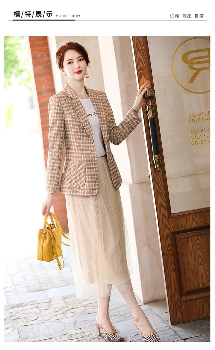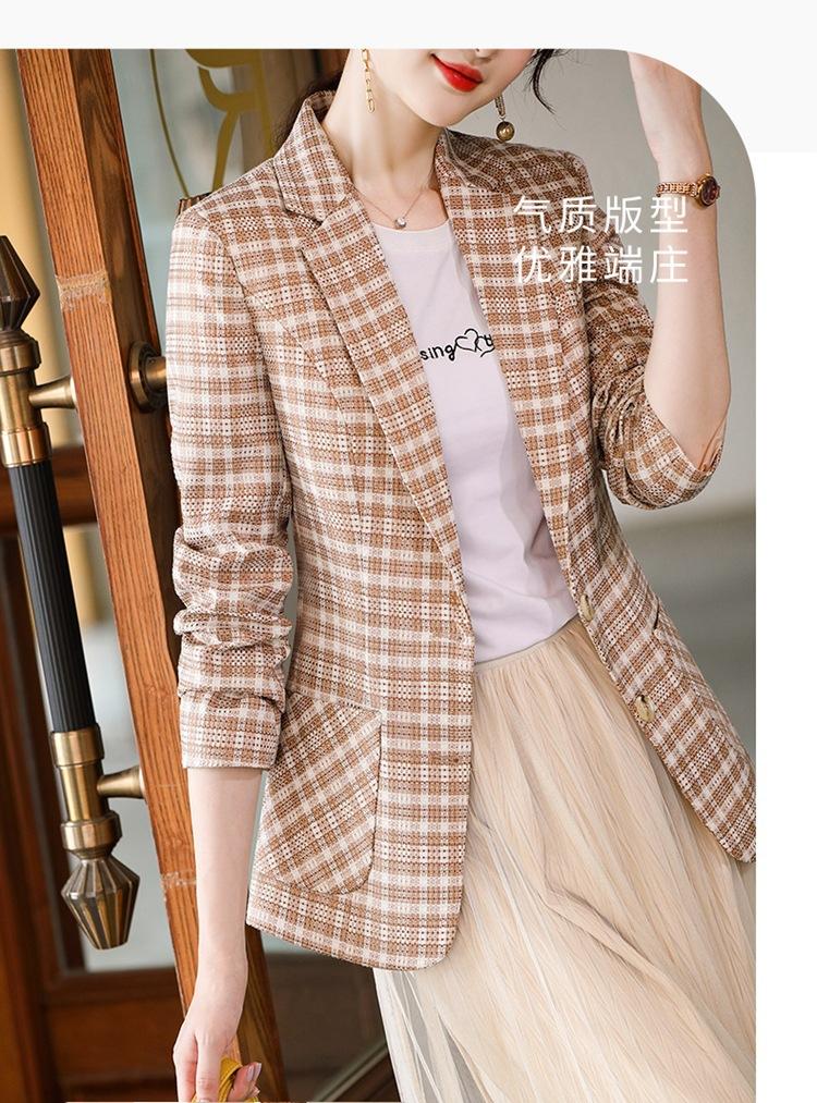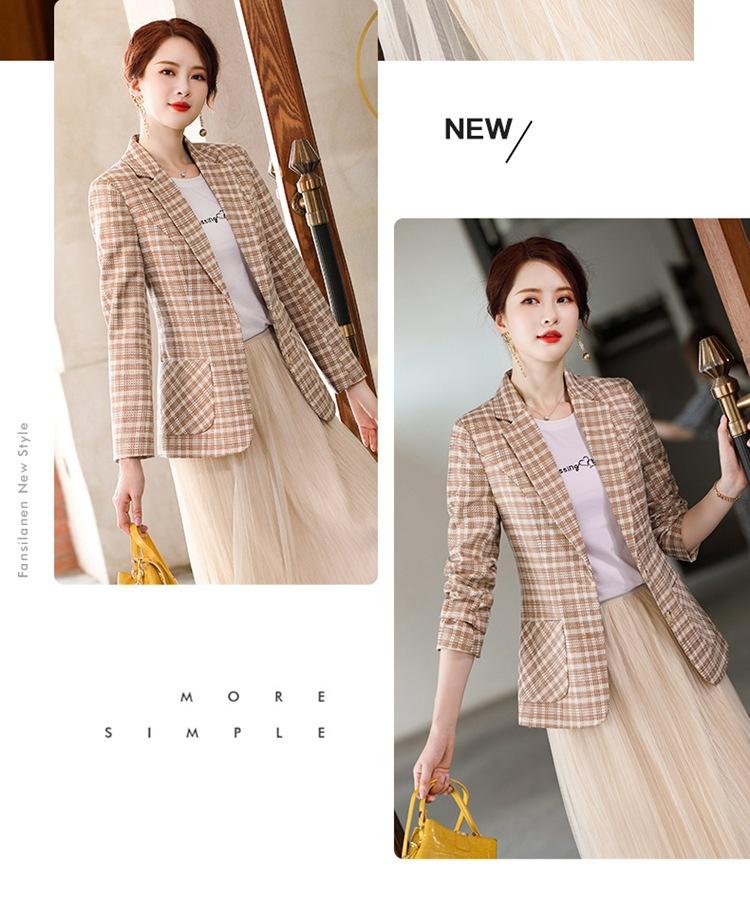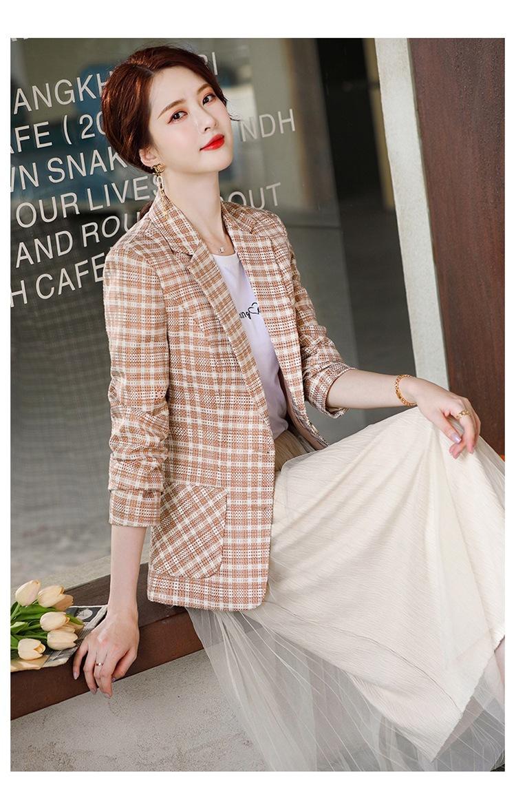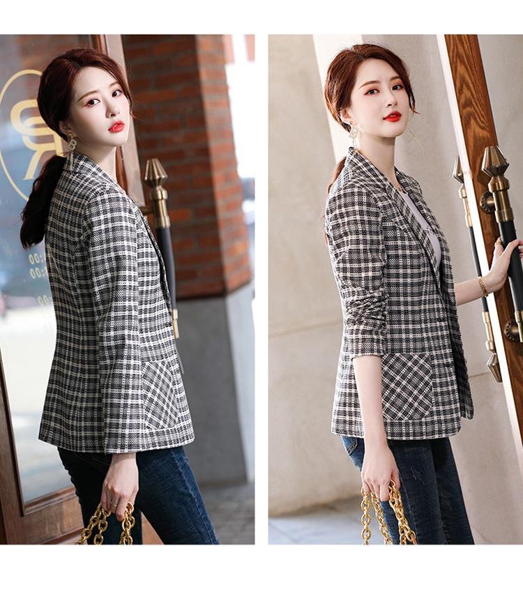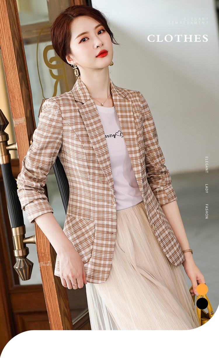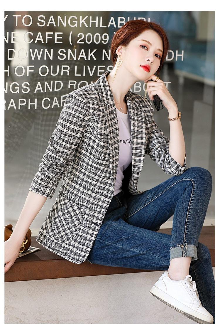 Primavera y verano nuevo estilo coreano de moda elegante a cuadros traje pequeño para mujer ropa de negocios chaqueta de traje de manga larga para mujer corte entallado