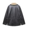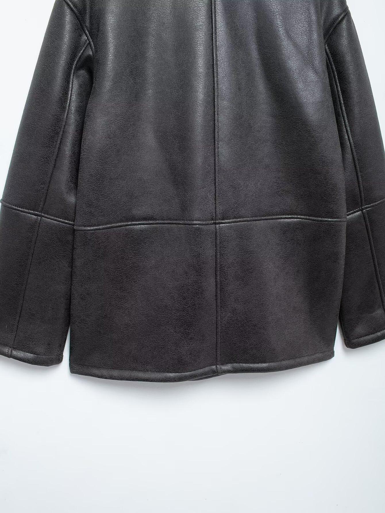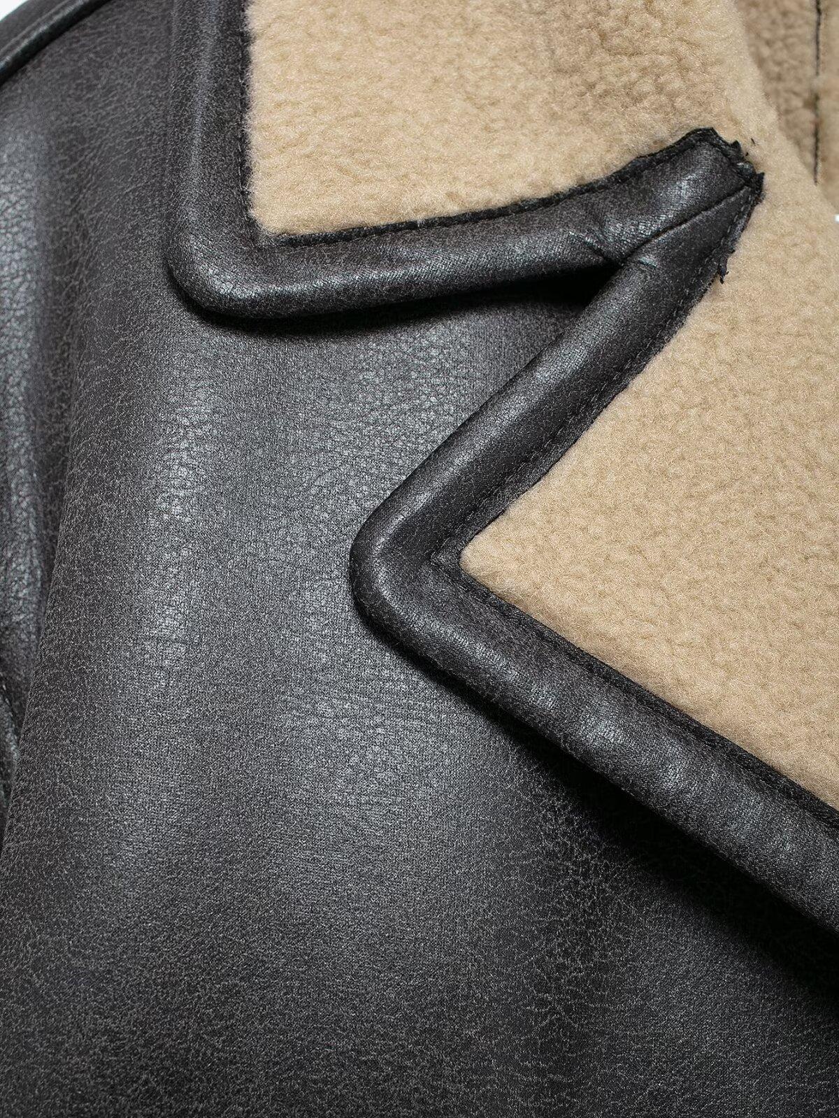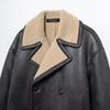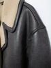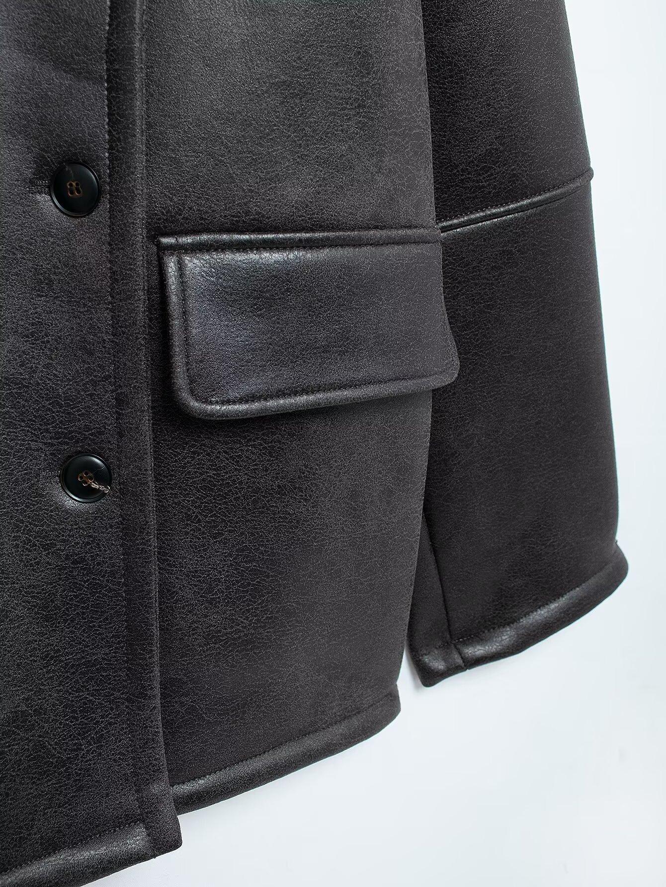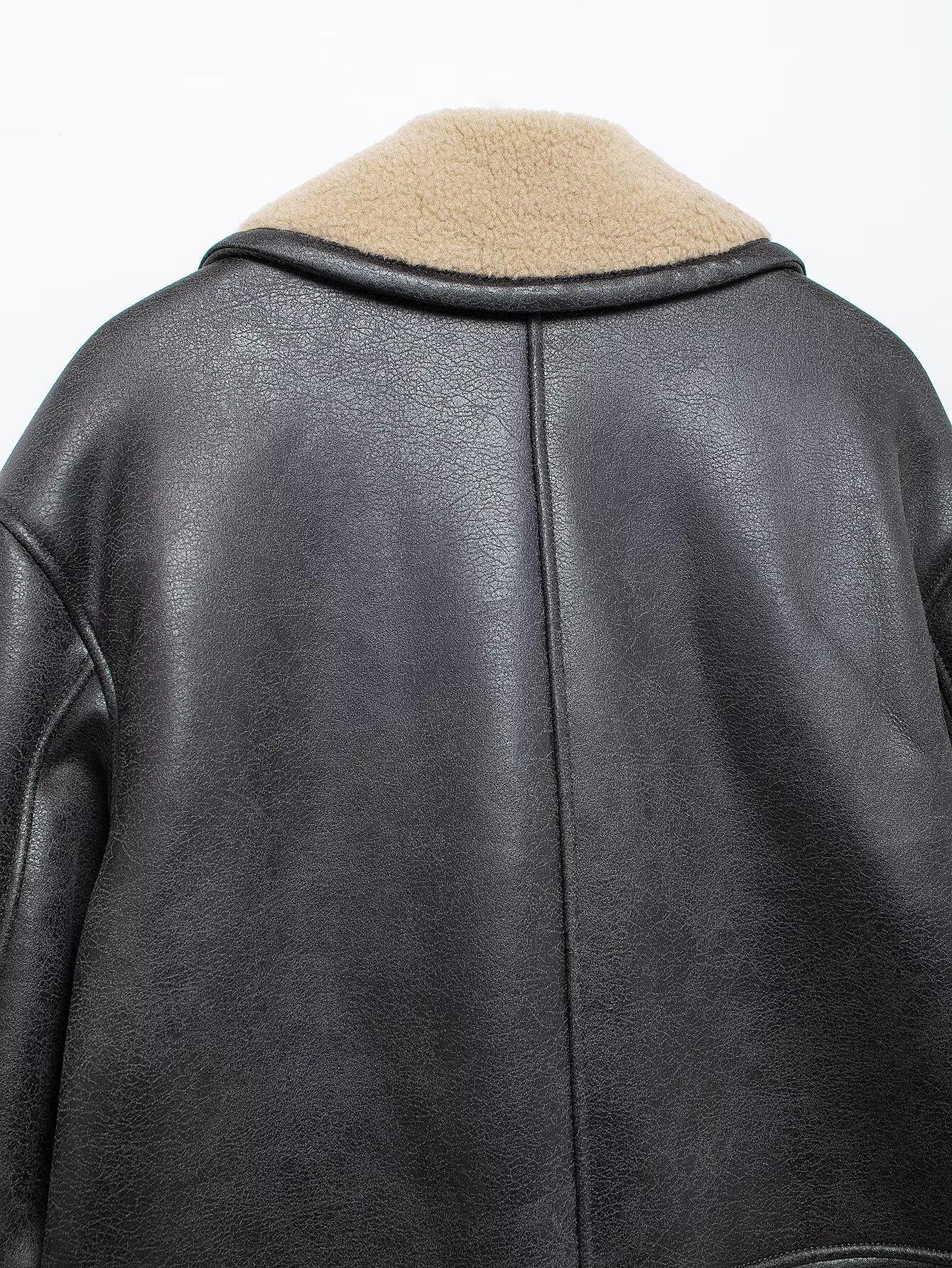 Chaqueta de una pieza de piel con doble botonadura y solapa para mujer, abrigo holgado de piel sintética de estilo europeo y americano de invierno 2024