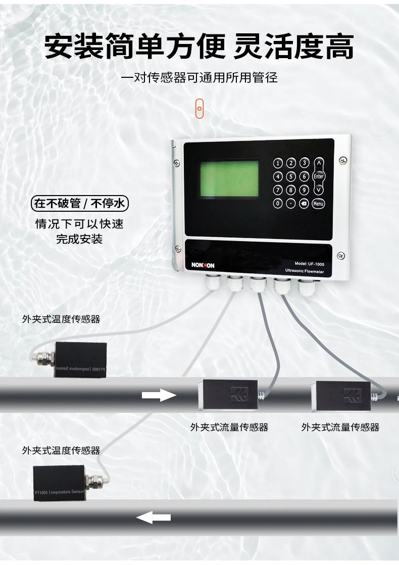 Medidor de flujo ultrasónico de agua pura con autocalentamiento, sensor de flujo de tubería con abrazadera externa, medidor de calor frío y calefacción.