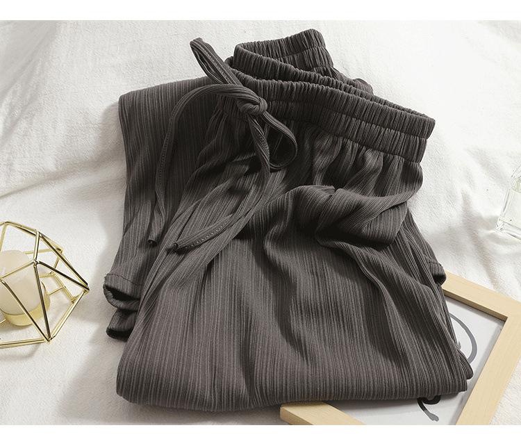 Pantalones anchos de seda de hielo pequeños de 145 cm para mujer, de verano, finos, de 150 cm, resistentes al sol y de secado rápido, informales, con drapeado de tubo recto.
