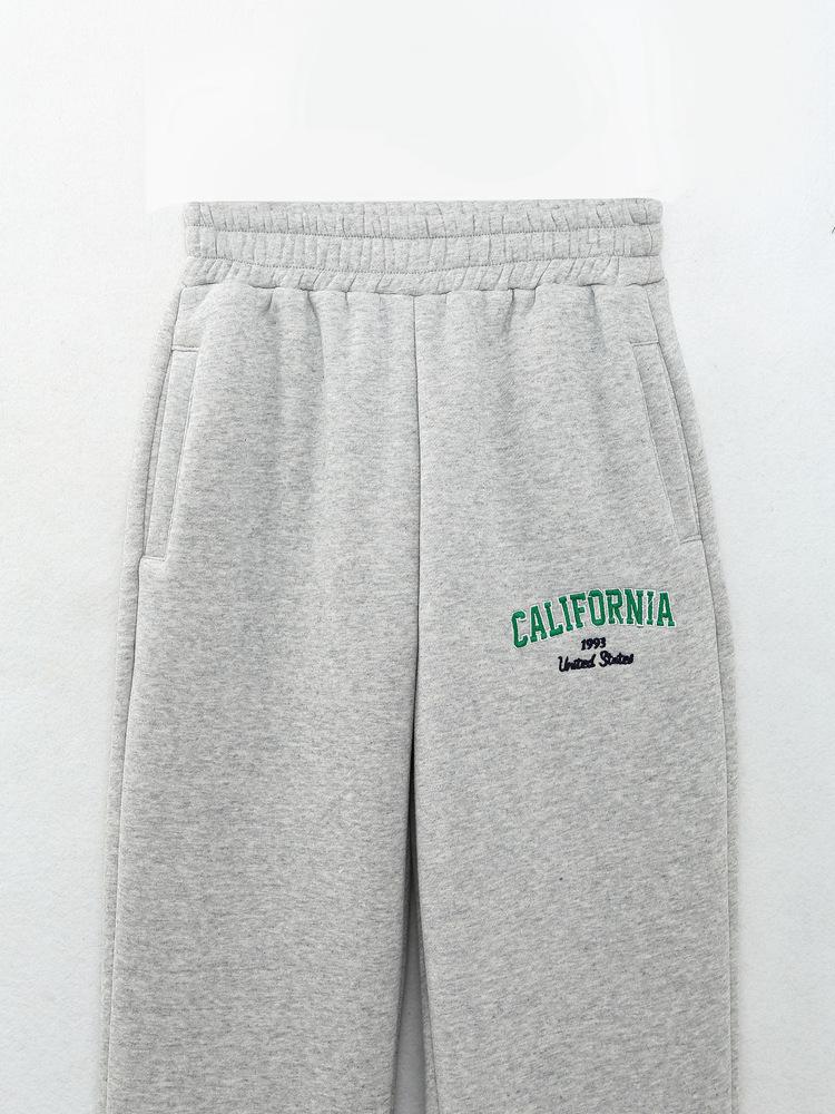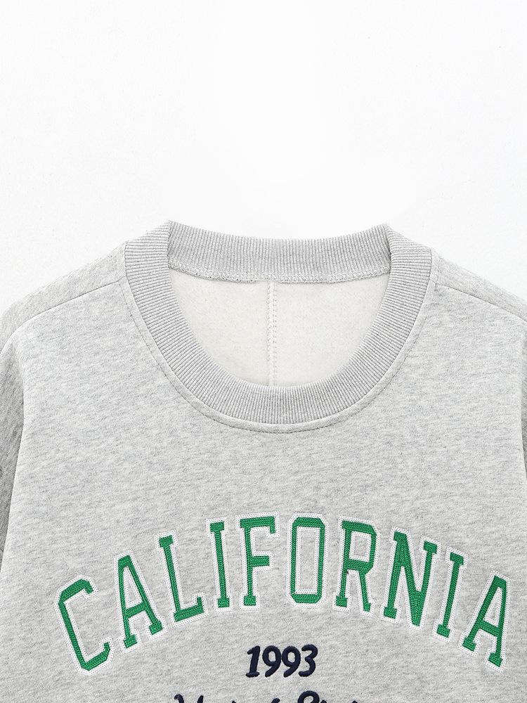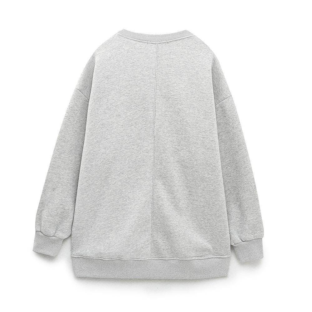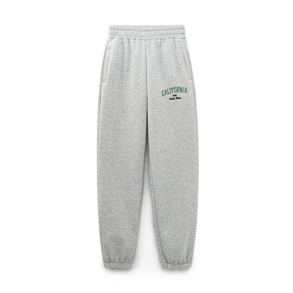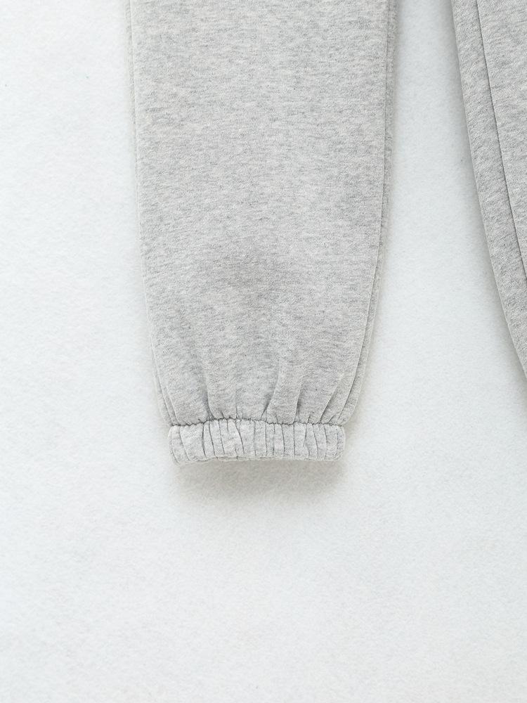 Estilo Europeo y Americano Otoño e Invierno Nuevo Casual Cuello Redondo Sudadera Gris Estampada + Pantalones de Jogging Decorativos Bordados con Texto