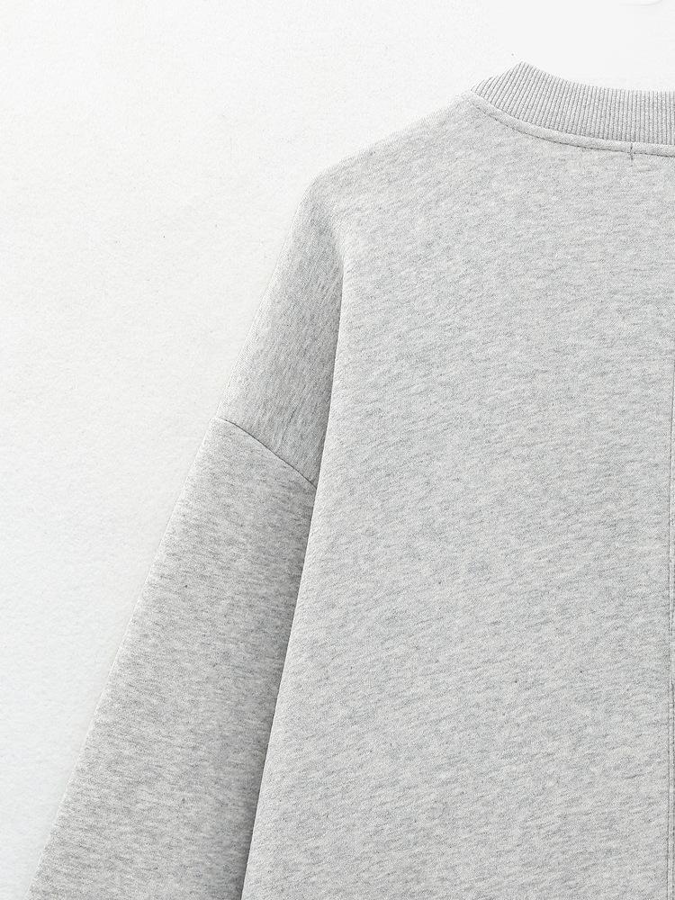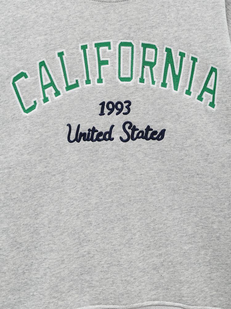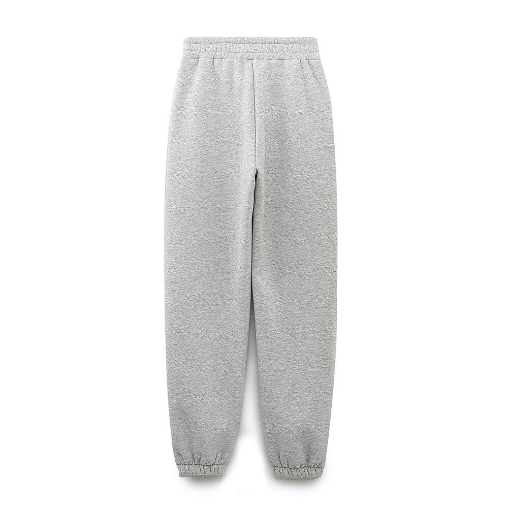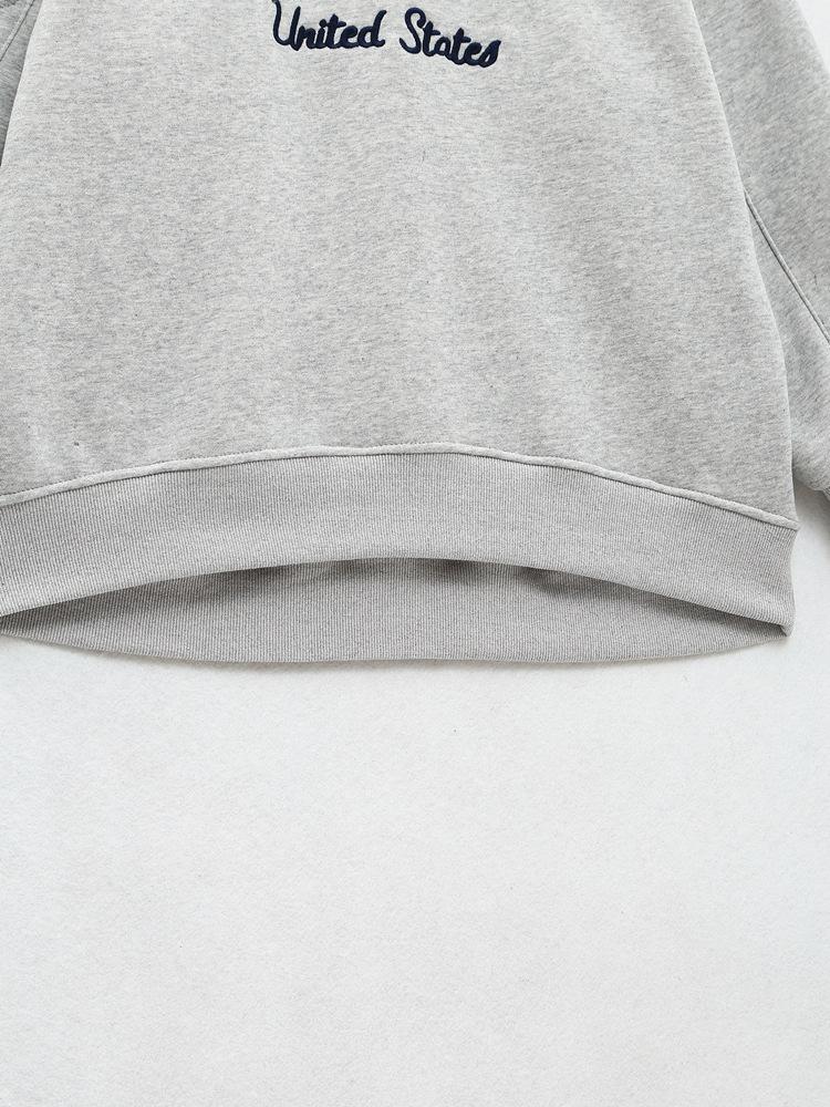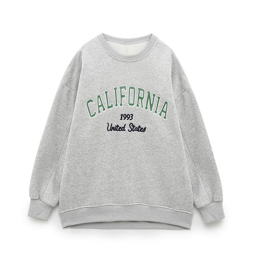 Estilo Europeo y Americano Otoño e Invierno Nuevo Casual Cuello Redondo Sudadera Gris Estampada + Pantalones de Jogging Decorativos Bordados con Texto