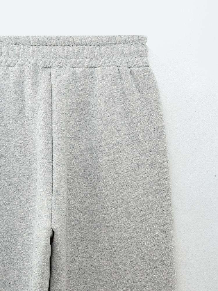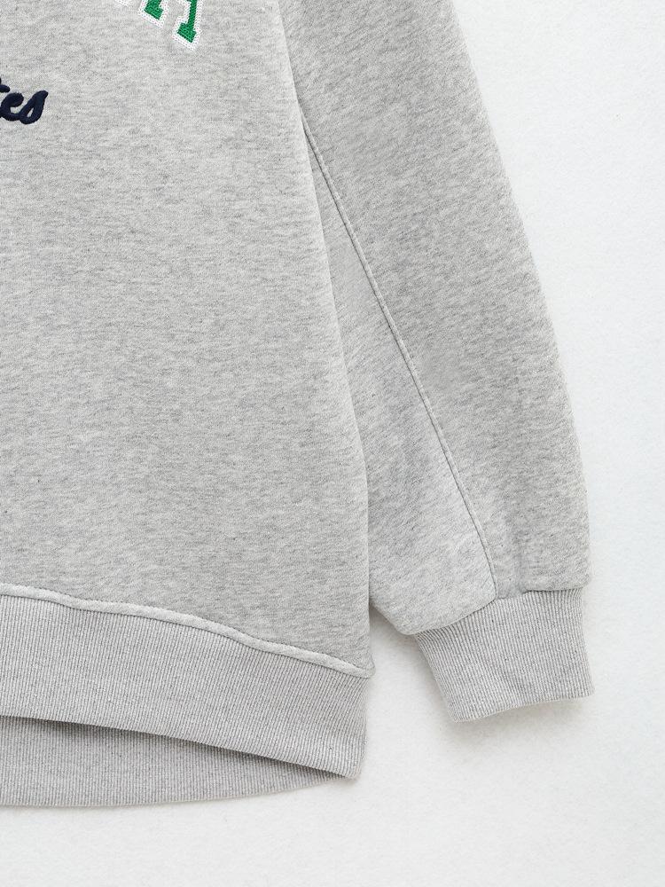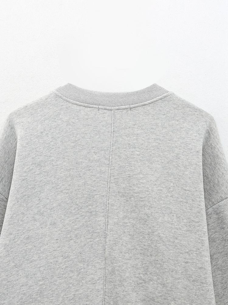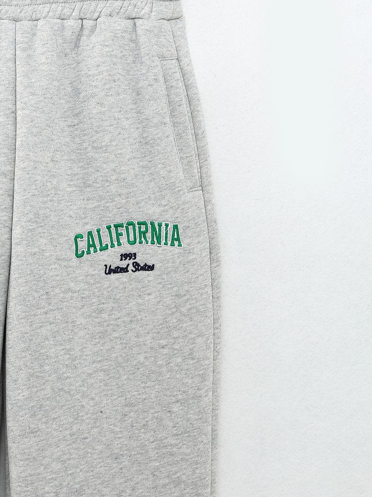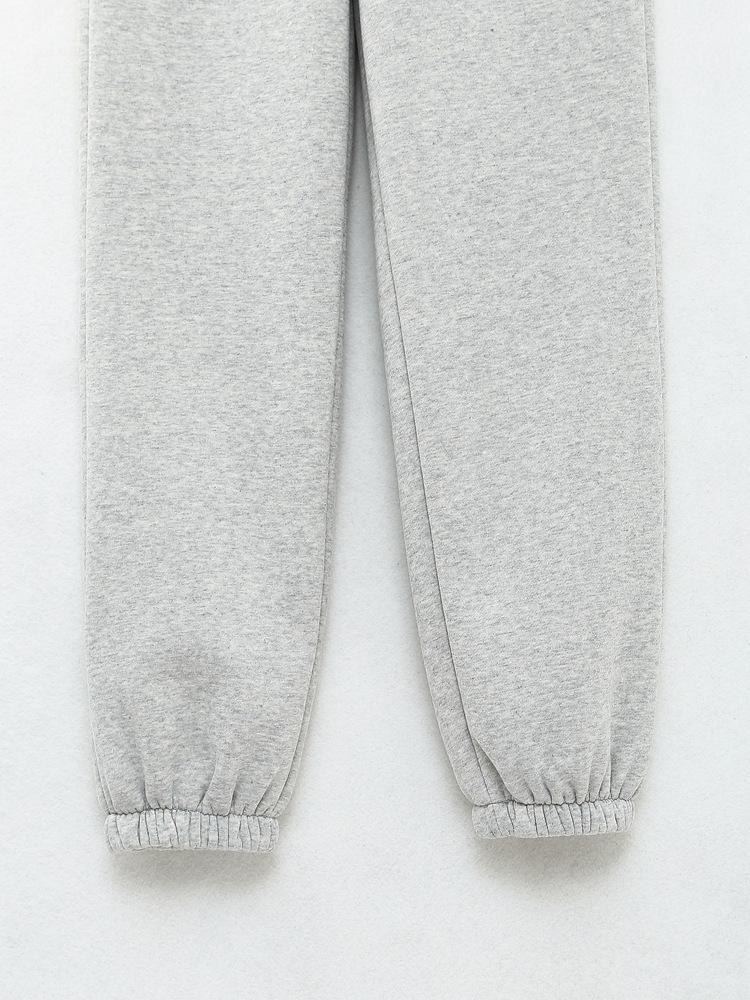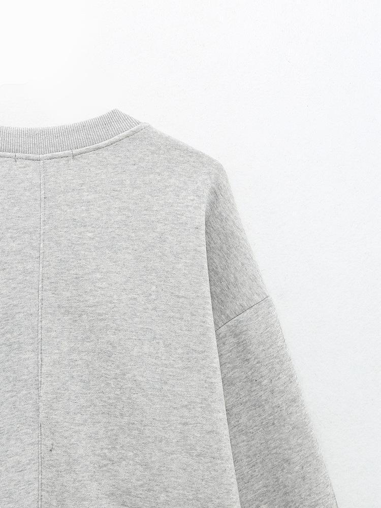 Estilo Europeo y Americano Otoño e Invierno Nuevo Casual Cuello Redondo Sudadera Gris Estampada + Pantalones de Jogging Decorativos Bordados con Texto