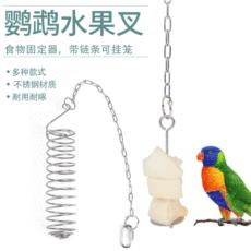 Comedero para pájaros con tenedor de fruta de acero inoxidable para loros.
