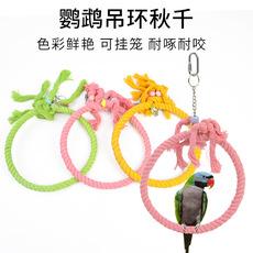 Jaula colgante para loros, soporte para loros, columpio de cuerda de algodón, anillo de color, juguetes para pájaros, suministros para loros pequeños y medianos