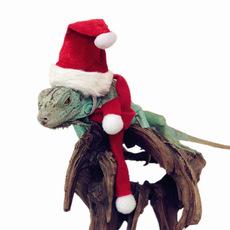 Conjunto navideño de lagarto, gorro y bufanda de lagarto, combinación de pequeños suministros para mascotas, decoraciones