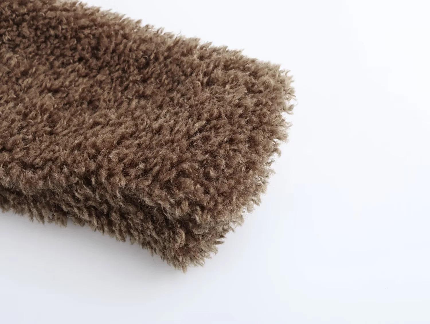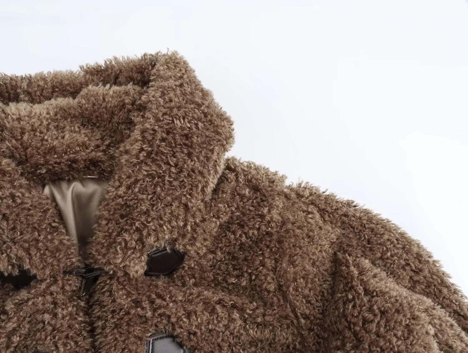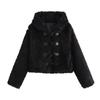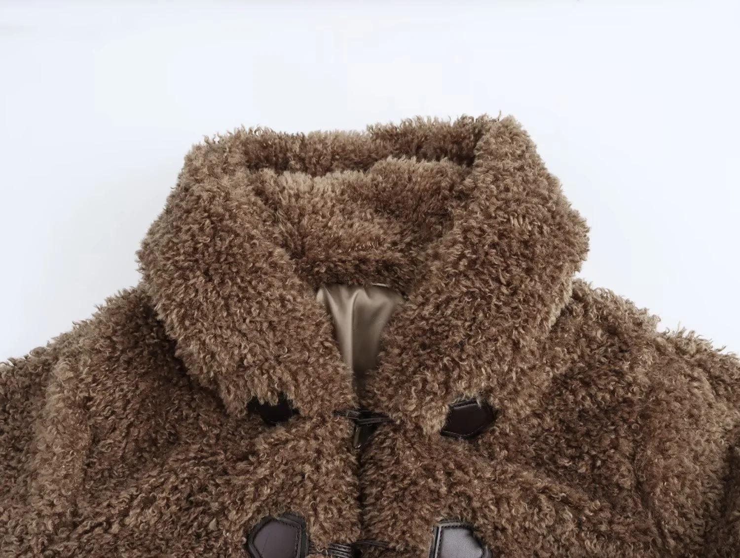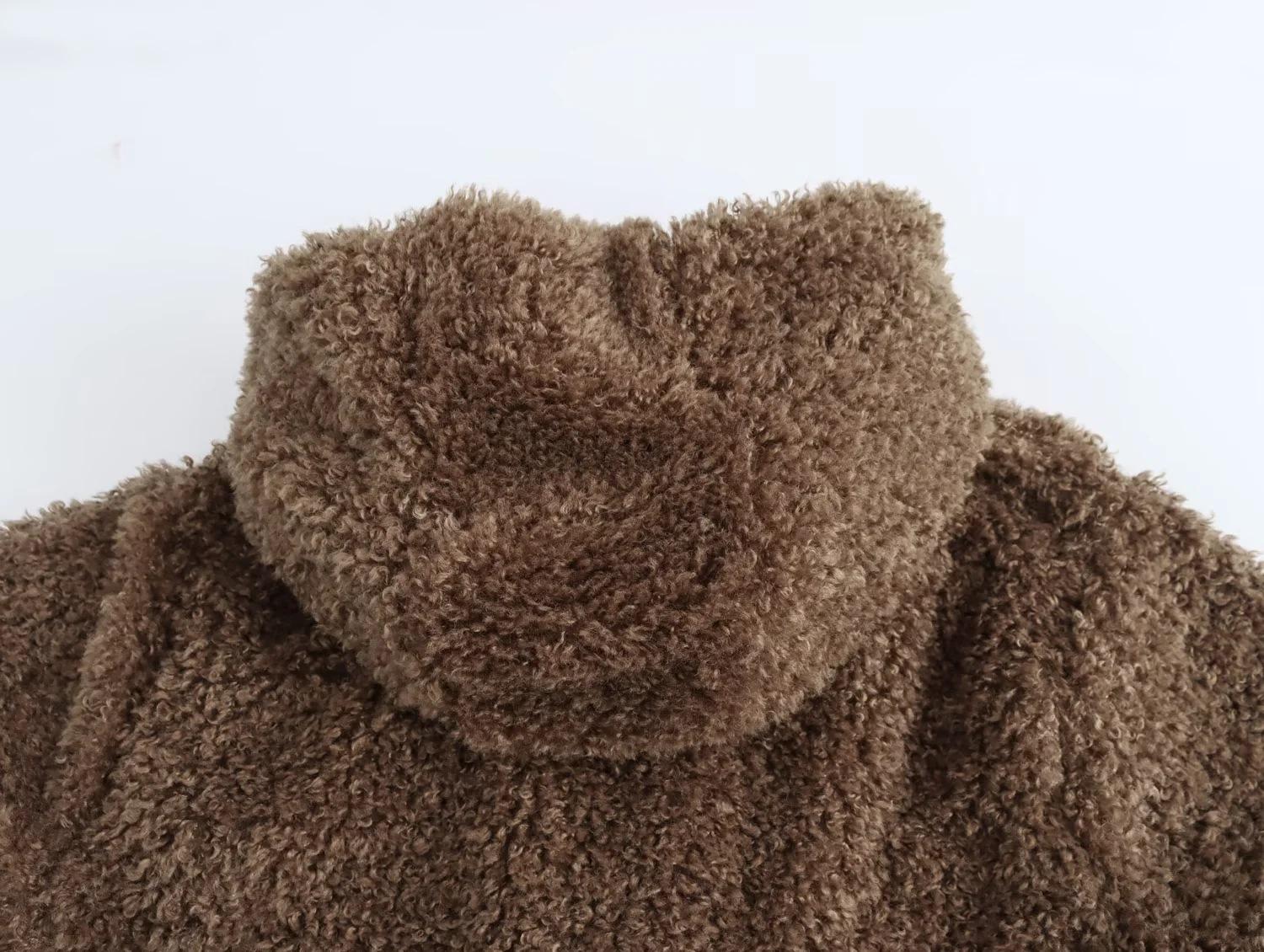 Invierno 2024 nuevo estilo europeo y americano ropa de mujer decoración nudo de cuerda efecto piel sintética abrigo corto combinable abrigo con capucha