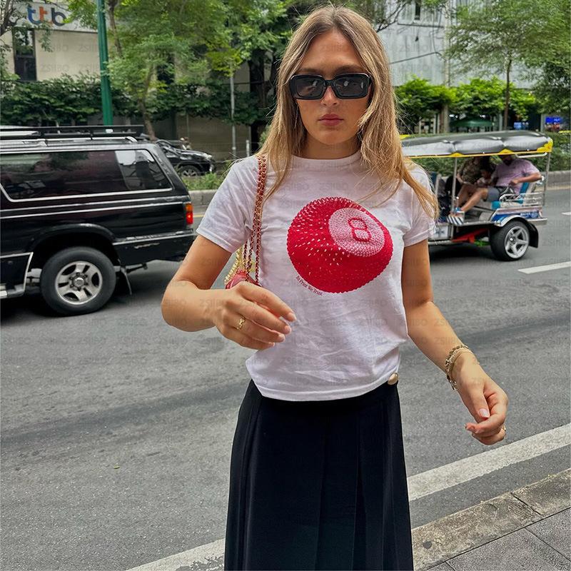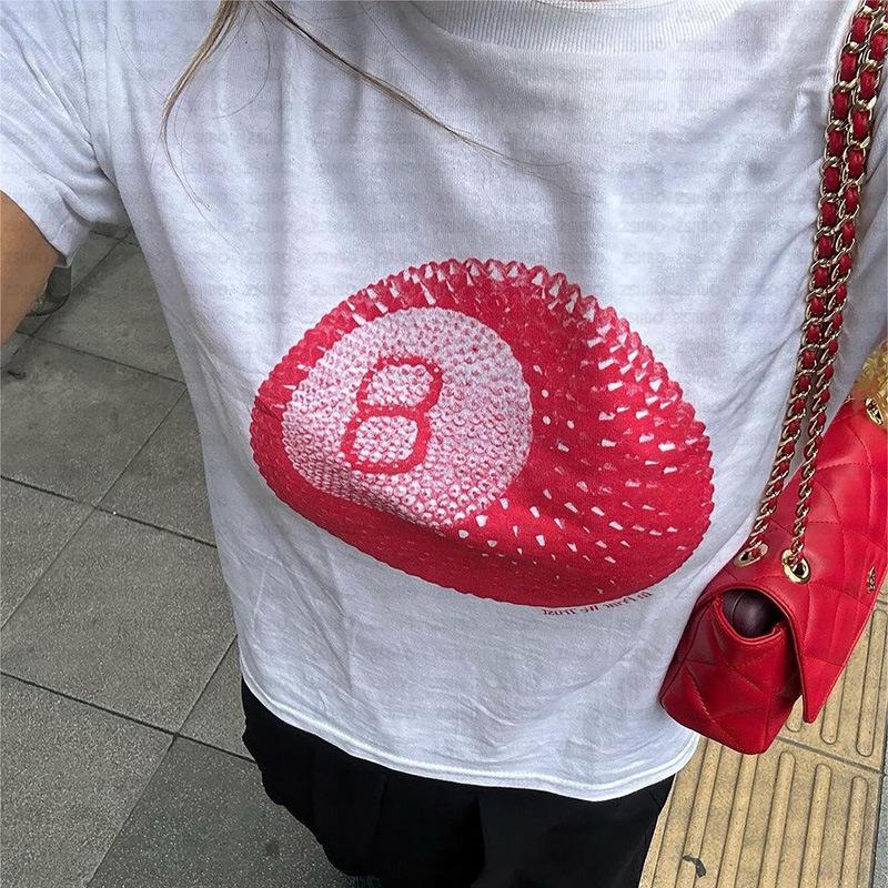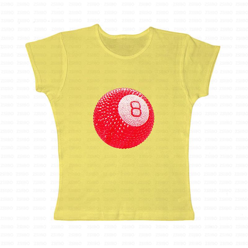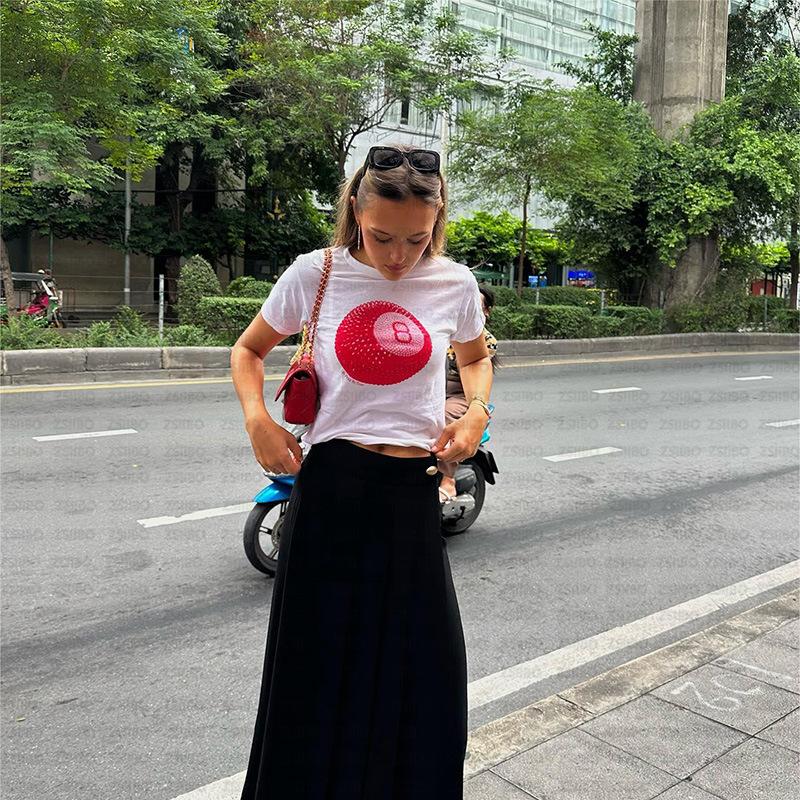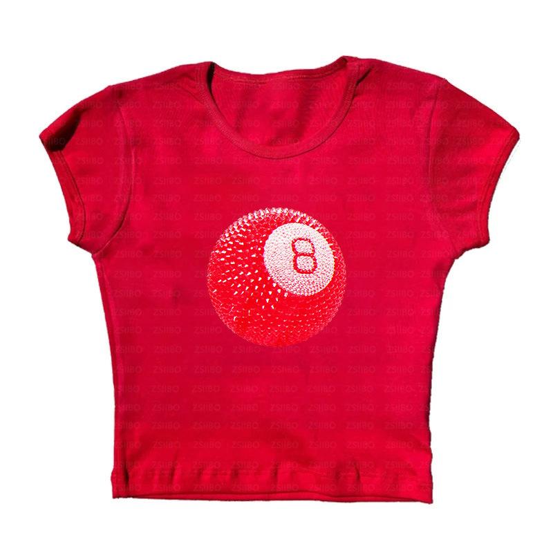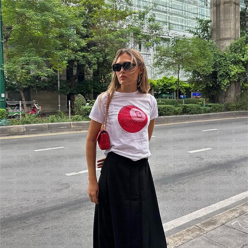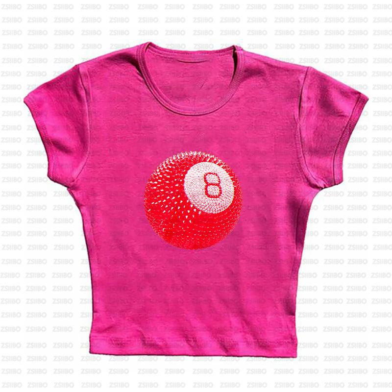 2024 Verano Nuevo Transfronterizo Europeo y Americano Nicho Estilo Simple Top No.8 Bola Estampada Ombliguera Camiseta Corta Trendy