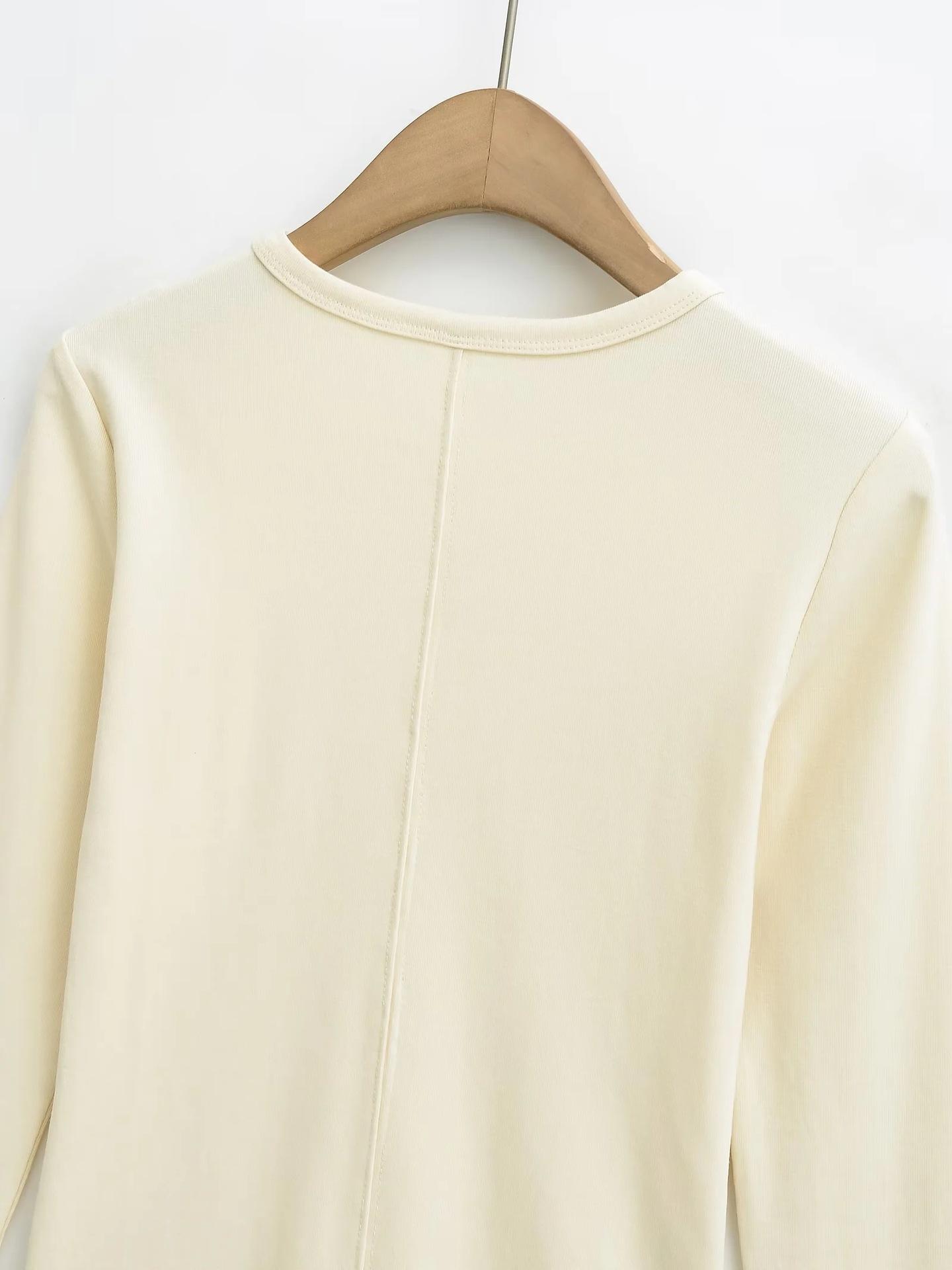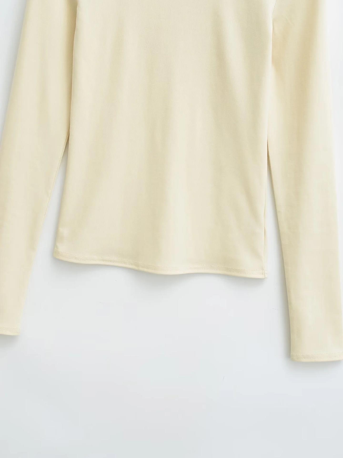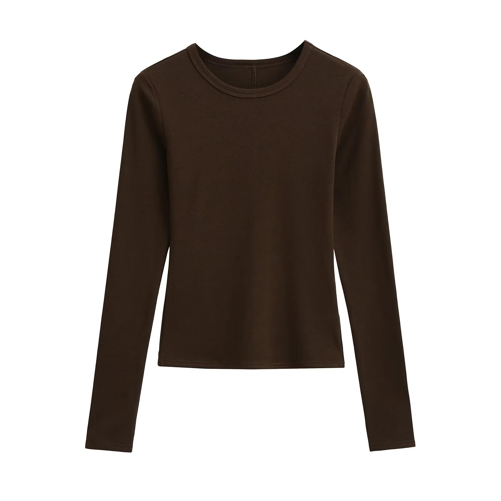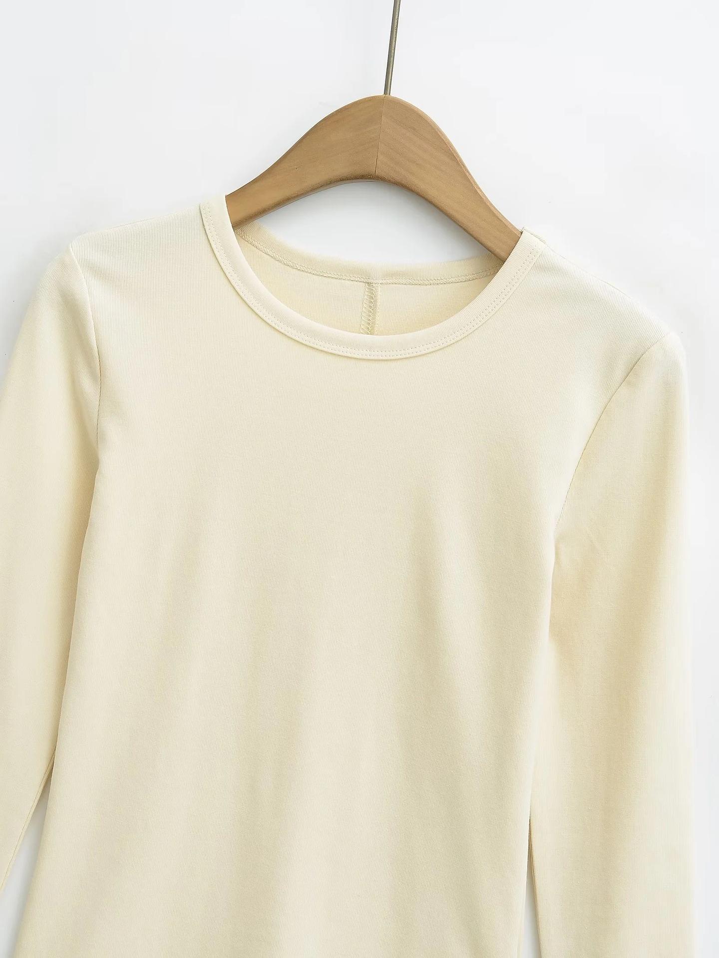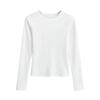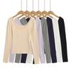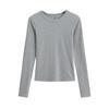 Camiseta de manga larga con cuello redondo y hombros descubiertos, diseño de nicho europeo y americano, nueva camiseta ajustada y elástica para otoño e invierno.