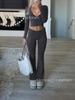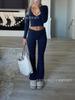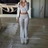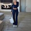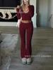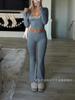 Traje de dos piezas de Amazon Leisure Sports, ajustado, de punto, de manga larga y pantalones, para mujer, transfronterizo europeo y americano, 2024