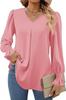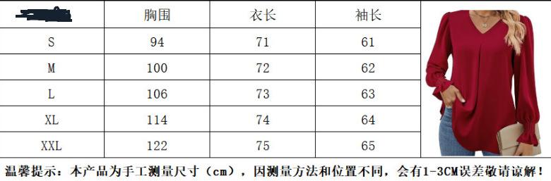 2024 Ropa transfronteriza para mujeres europeas y americanas Amazon nueva camisa de gasa de color sólido jersey de cuello en V camisa de manga larga con cuerno