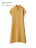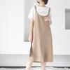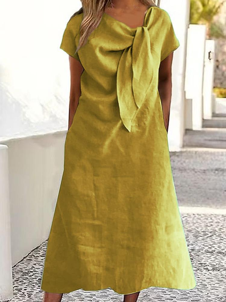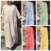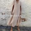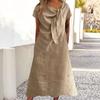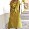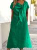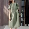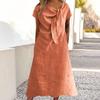 2025 Exportación Transfronteriza Ropa Nueva para Mujer Casual Cuello Redondo Manga Corta Bolsillo con Solapa Pantalones Algodón y Lino Color Sólido Vestido de Mujer Falda Larga