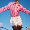 2025 Nuevo Estilo Europeo y Americano Sitio Web Independiente Amazon Aliexpress Nuevo Color Sólido Solapa Elegante Jersey Manga Larga Camisa de Mujer