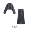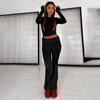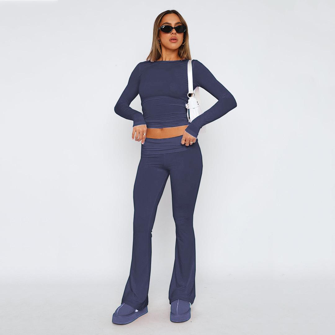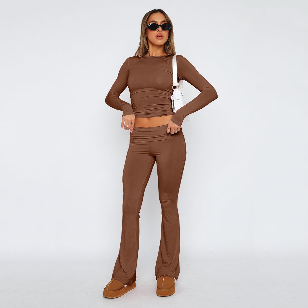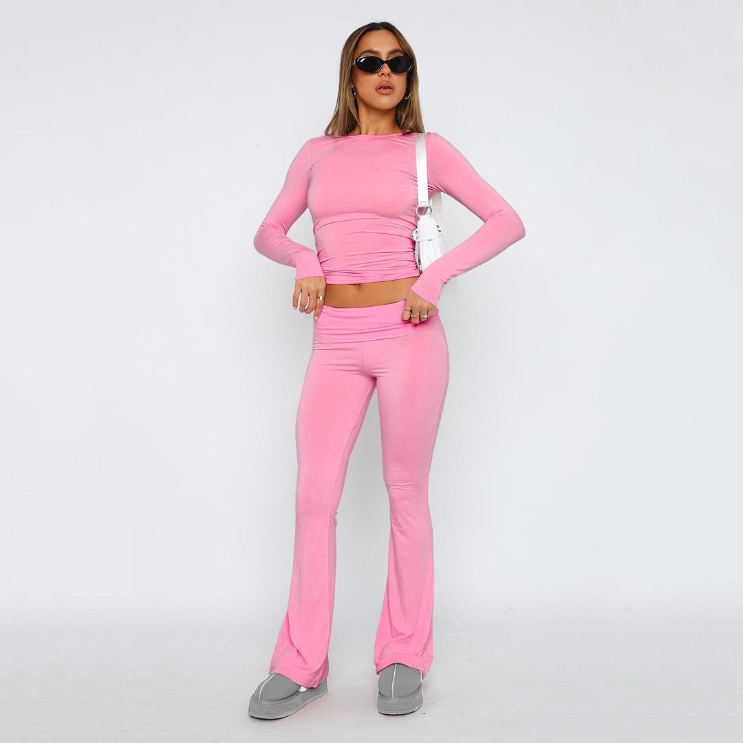 Pantalones de moda de manga larga de color limpio nuevos de otoño e invierno 2024 para mujer de comercio exterior transfronterizo de Amazon Europa y Estados Unidos, venta al por mayor de dos piezas