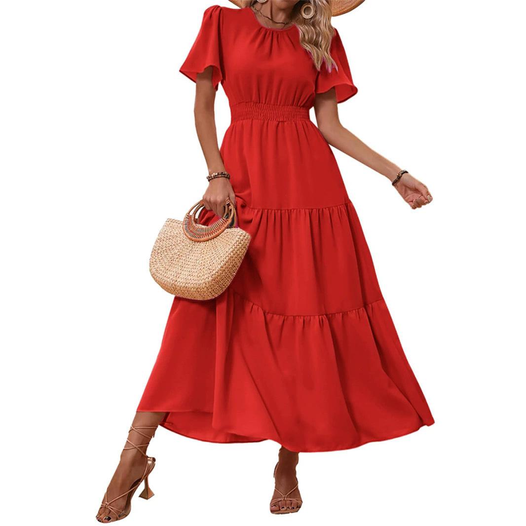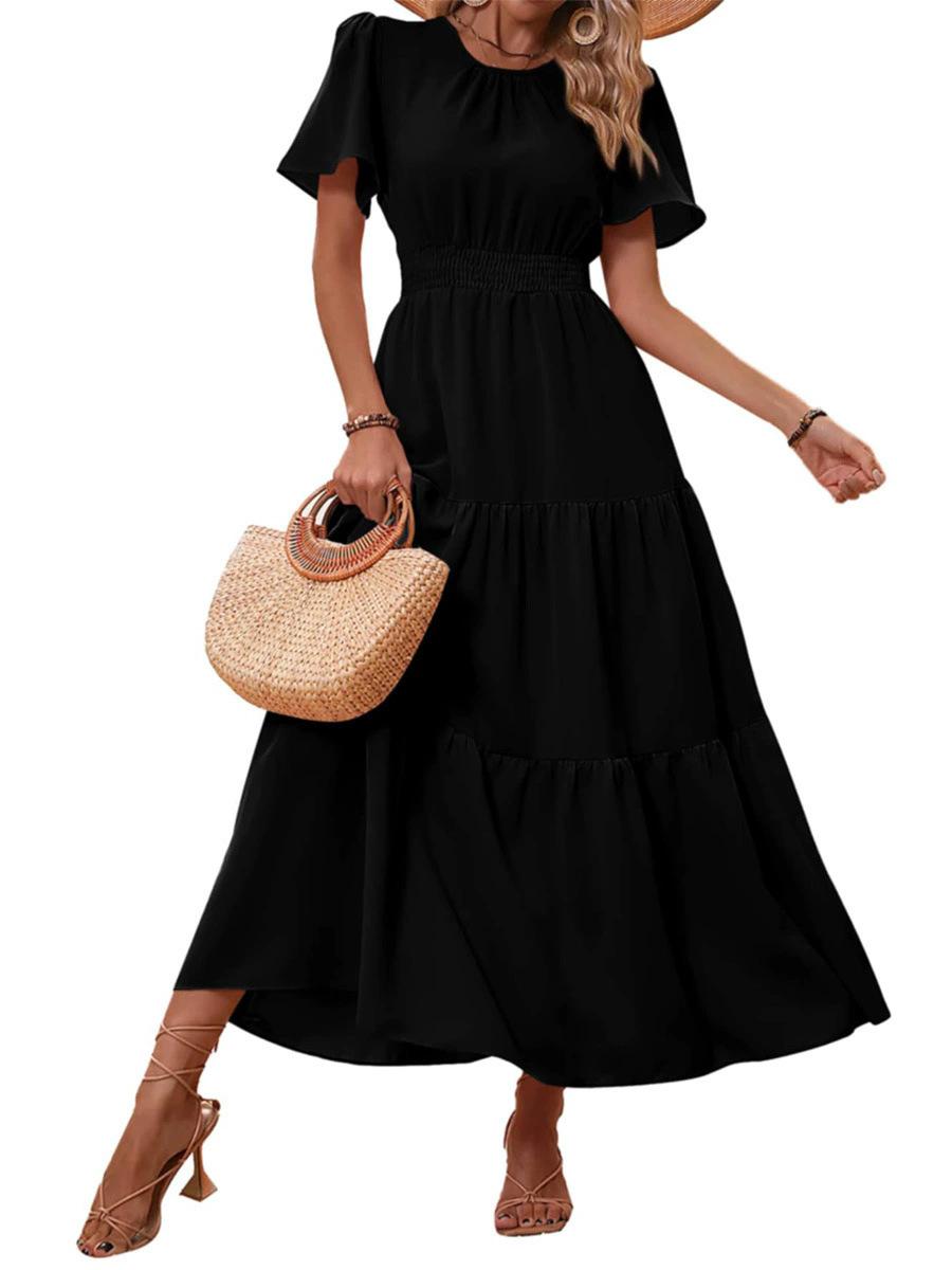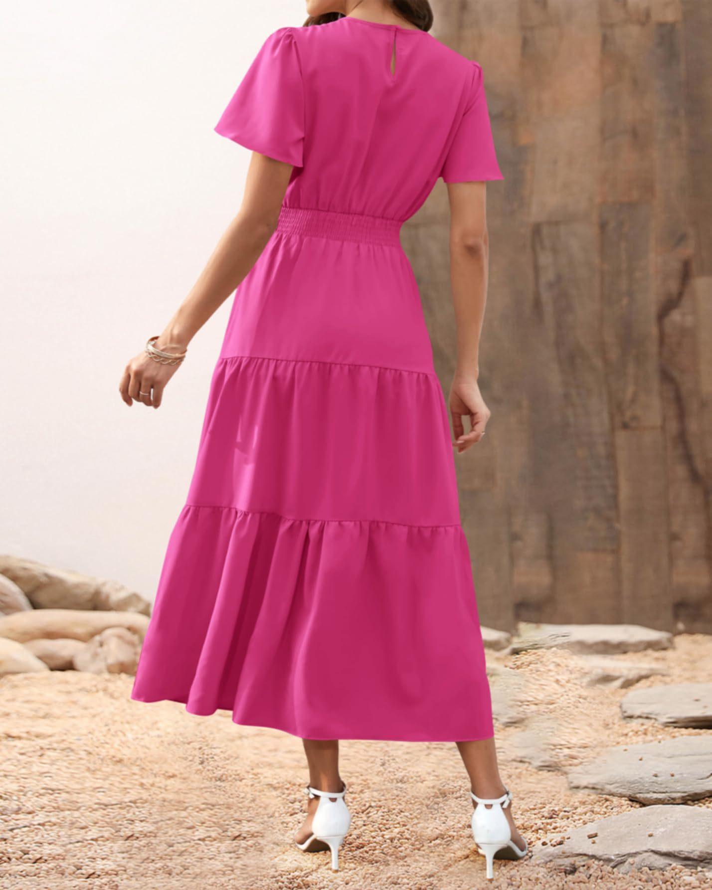 Amazon Europa y Estados Unidos comercio exterior transfronterizo 2025 nuevo cuello redondo color sólido volantes en capas bajo elegante vestido