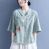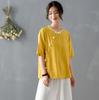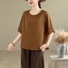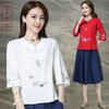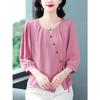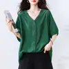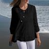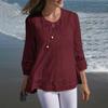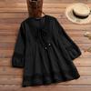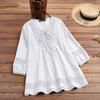 Nueva Primavera y Otoño Amazon Algodón y Lino Empalmado Encaje Elegante Estilo Europeo y Americano Manga 3/4 Corte Holgado Camiseta Top de Mujer
