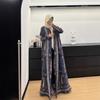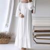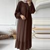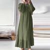 2025 Bata Larga para Mujer Musulmana Primavera y Otoño Nueva Moda Manga Abullonada Retro Bolsillo Vestido con Volantes