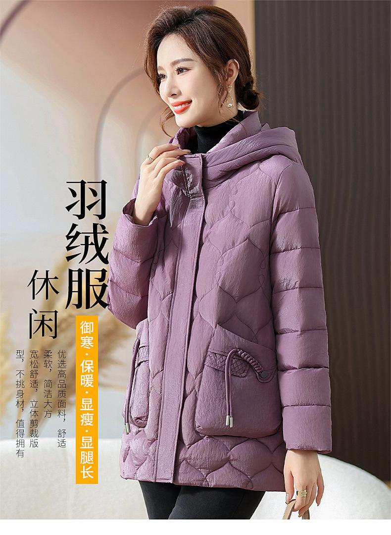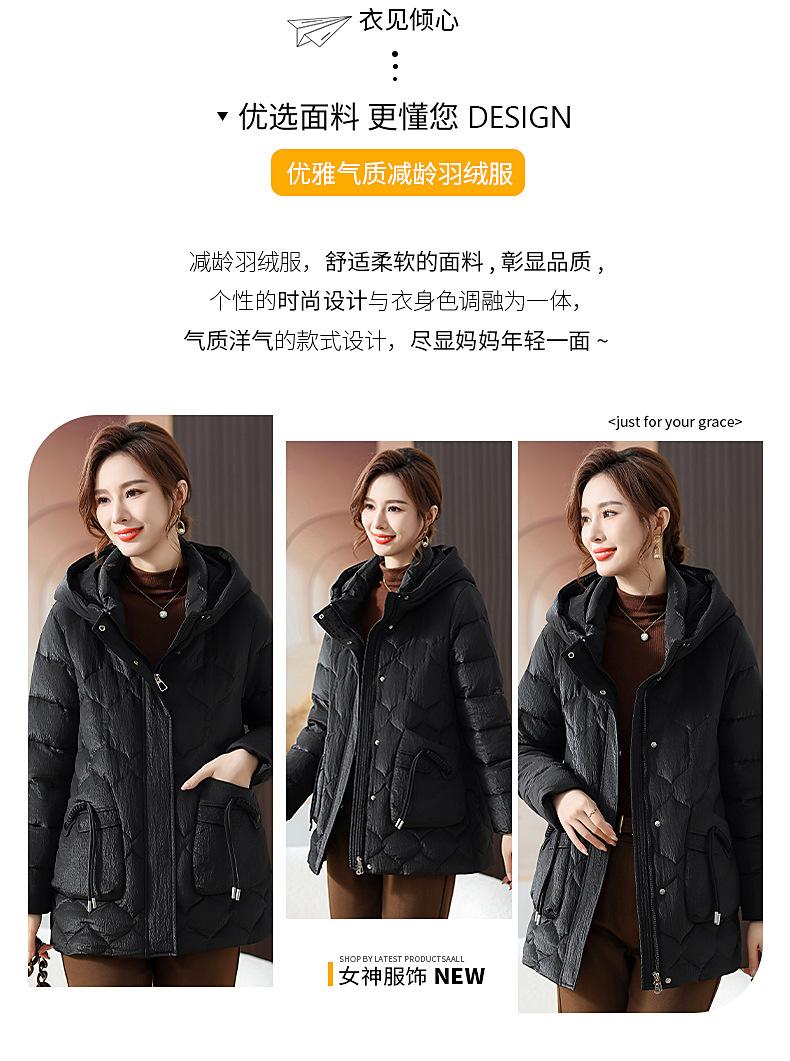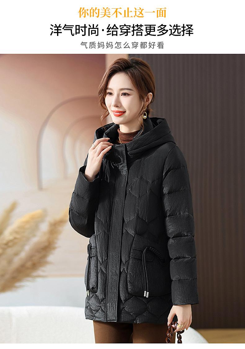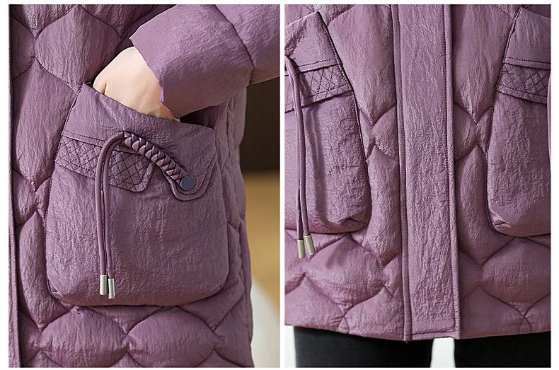 Chaqueta de plumón de longitud media estilo occidental para mamá de mediana edad, ropa de invierno nueva para mujer, chaqueta cálida de moda para mediana edad y mayores, chaqueta acolchada de algodón con plumón de pato