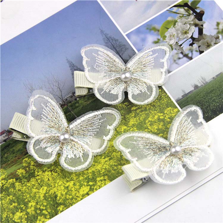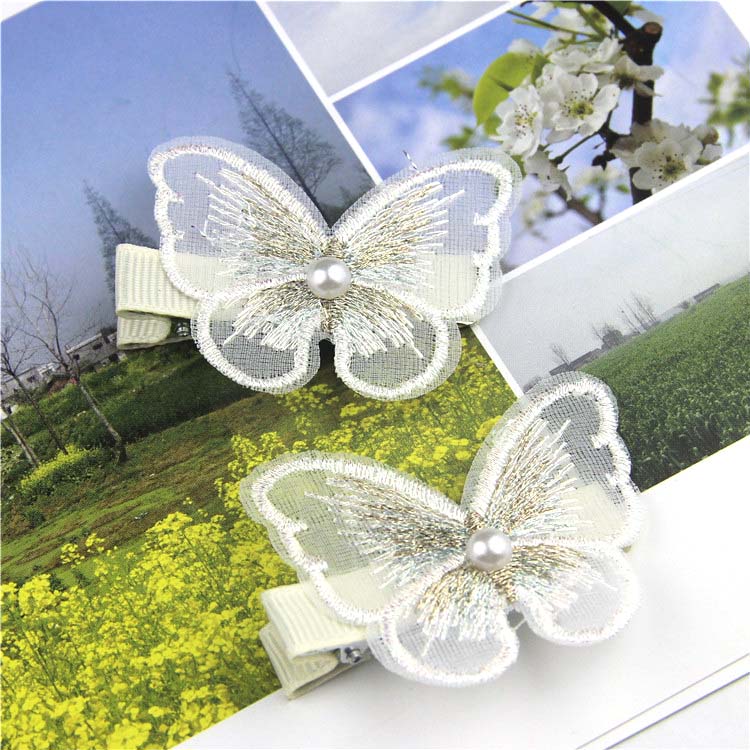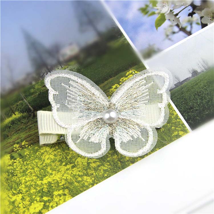 Wen elf with 1 Pearl butterfly hairpin, White double embroidery butterfly hairpin 1