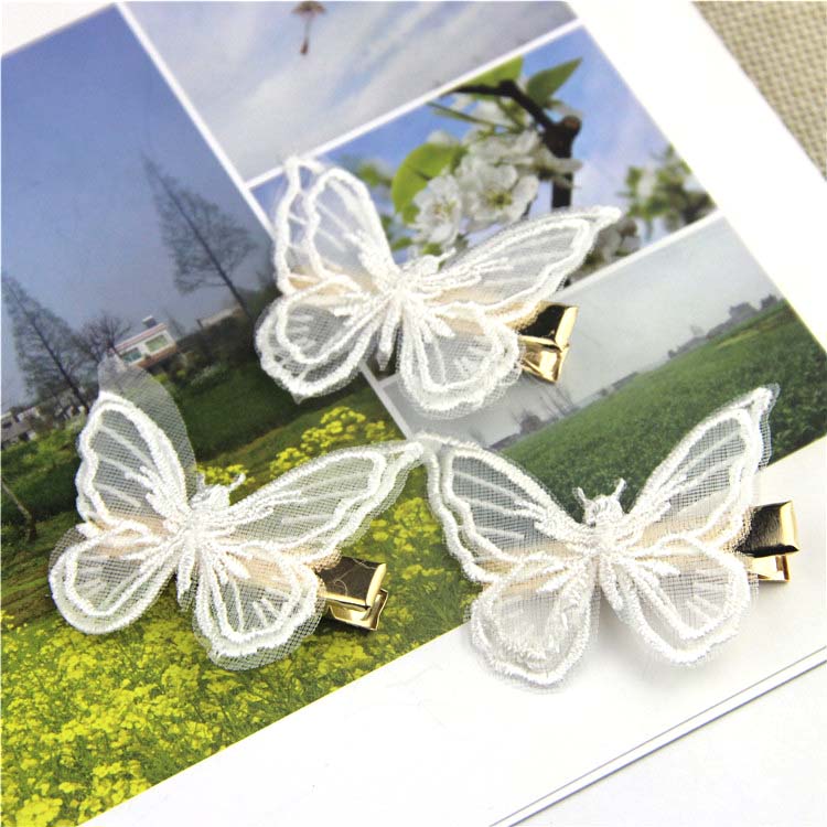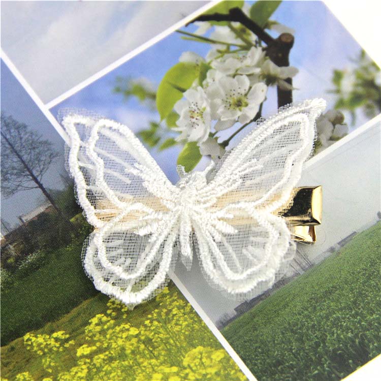 Horquilla de Mariposa Wen Elf Mismo Estilo Accesorios para el Cabello Coreano ins Tocado Clip Lateral para Niña Horquilla de Flequillo Bordada Vintage