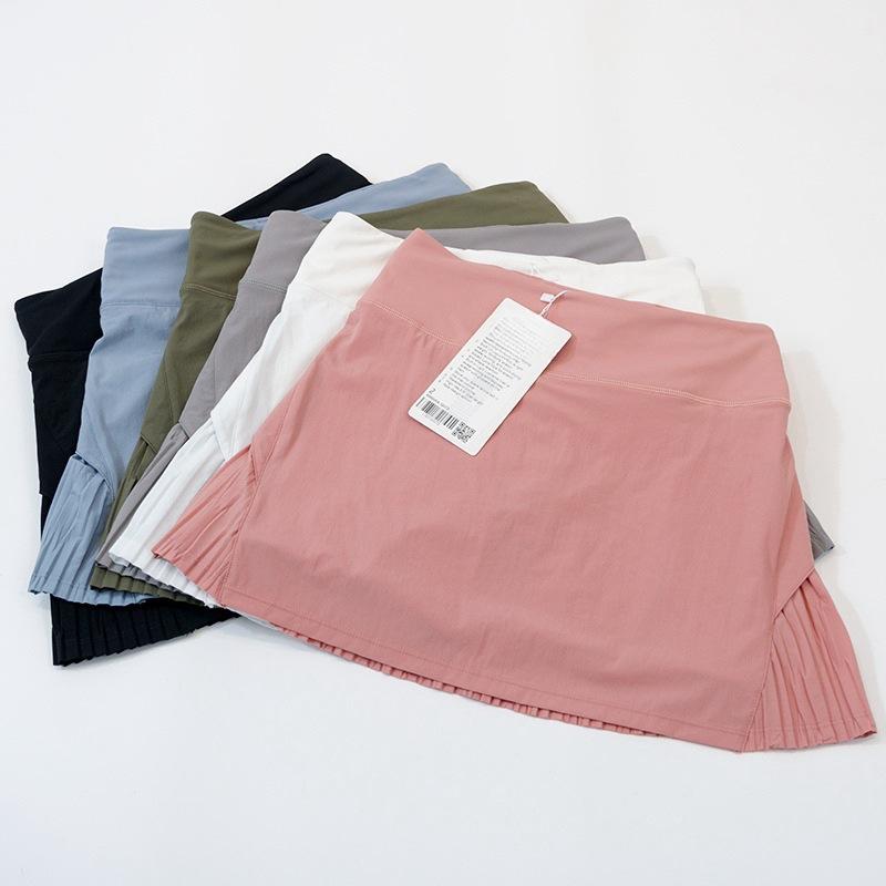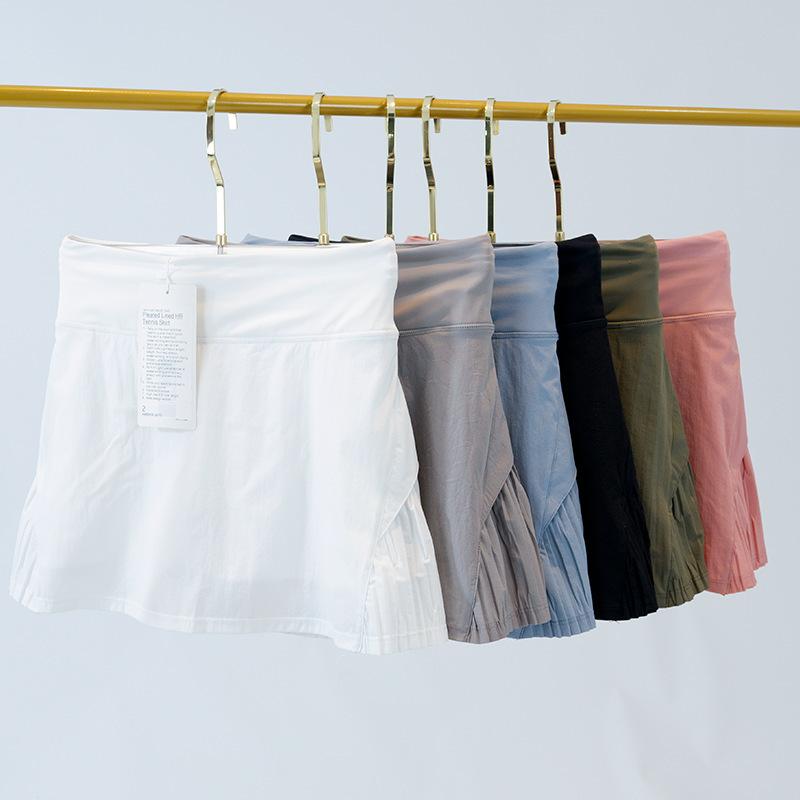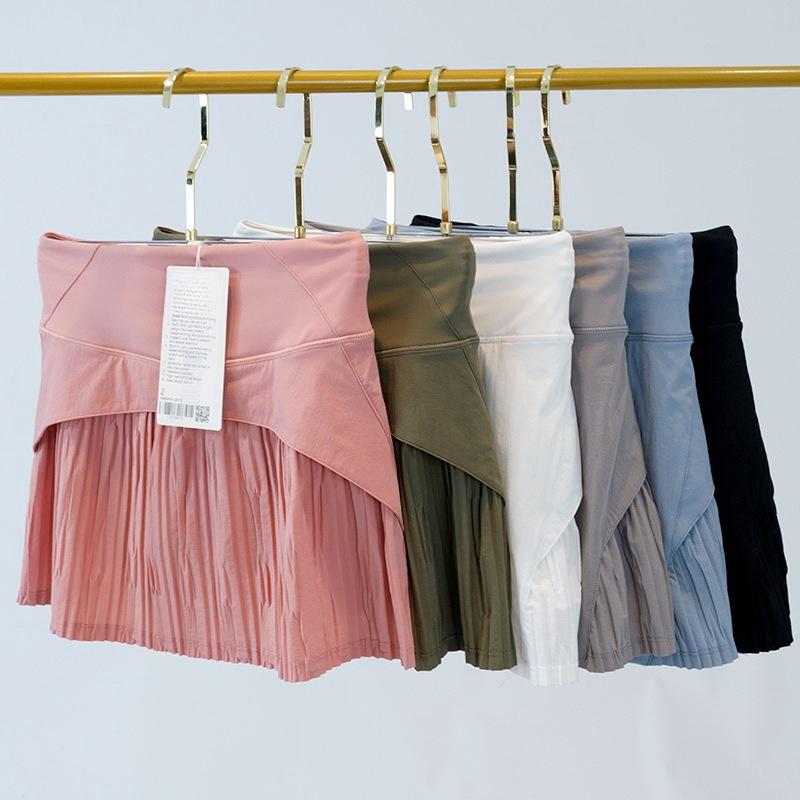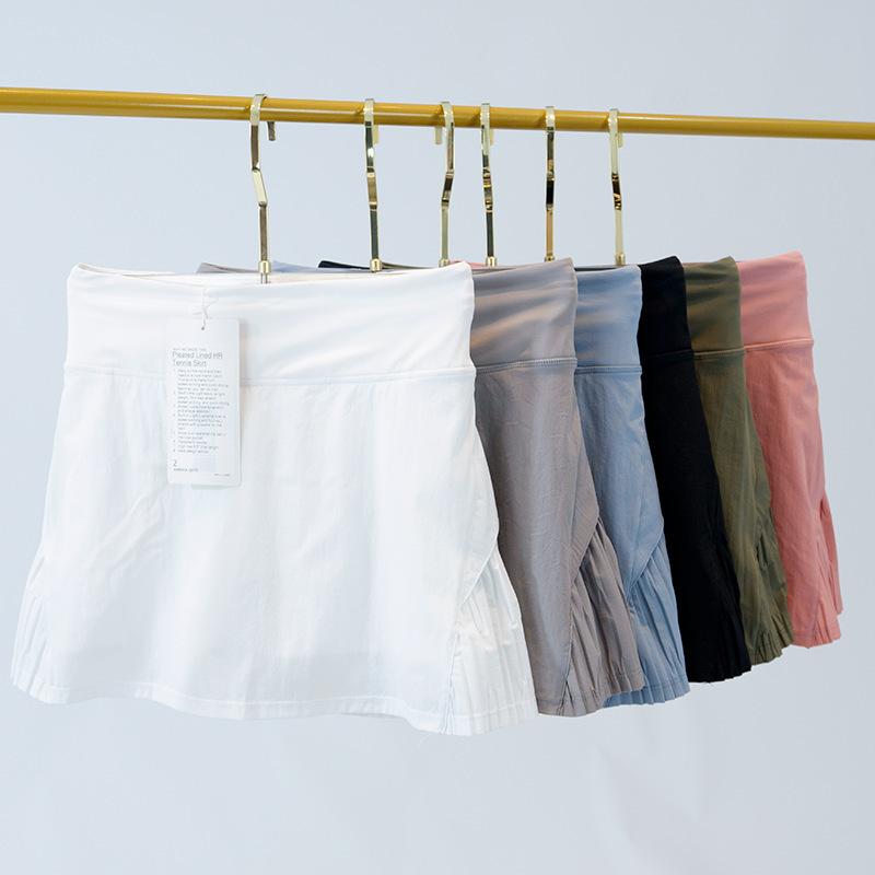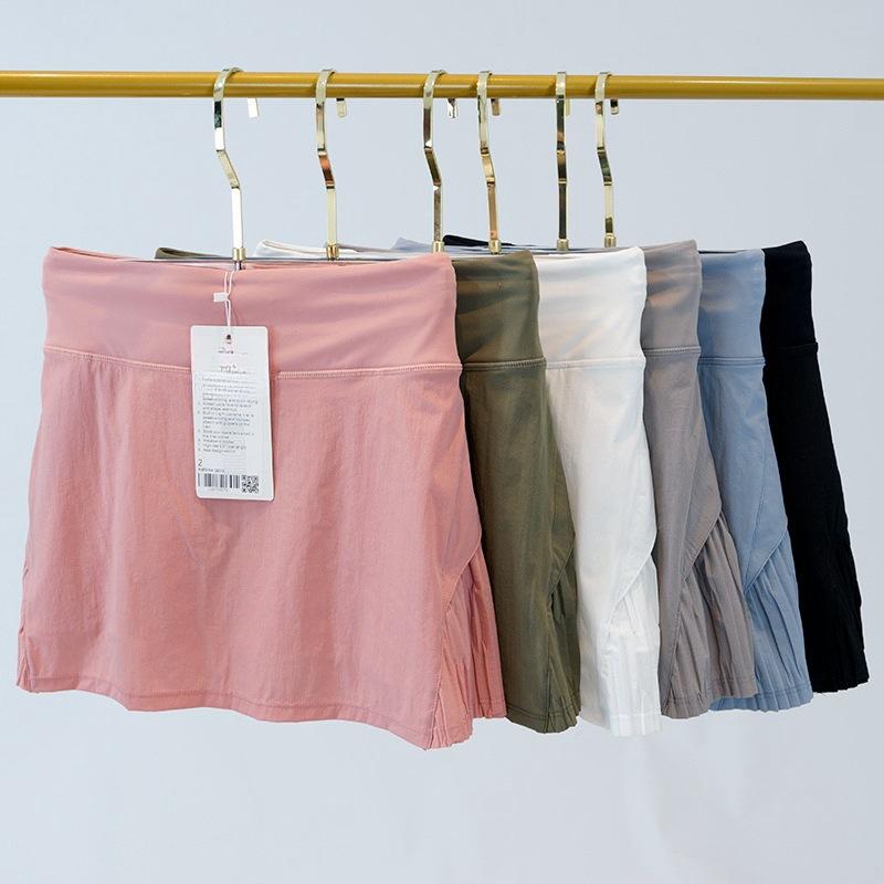 Ropa de Yoga Estilo Lulu Falda Deportiva de Tenis para Mujer con Shorts Falsos de Dos Piezas, Se Puede Etiquetar, Cintura Alta, Hace que las Piernas Parezcan Más Largas