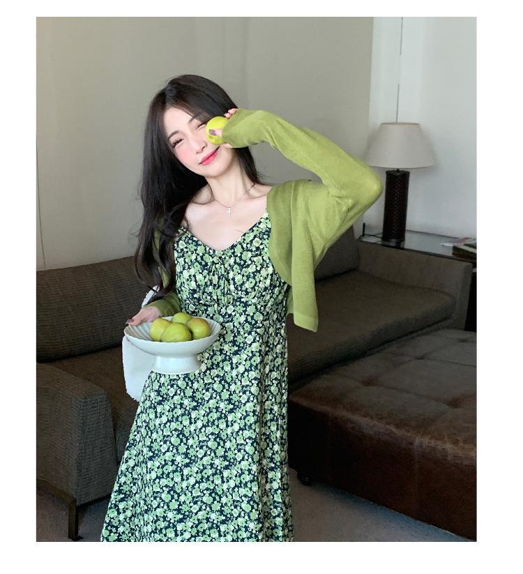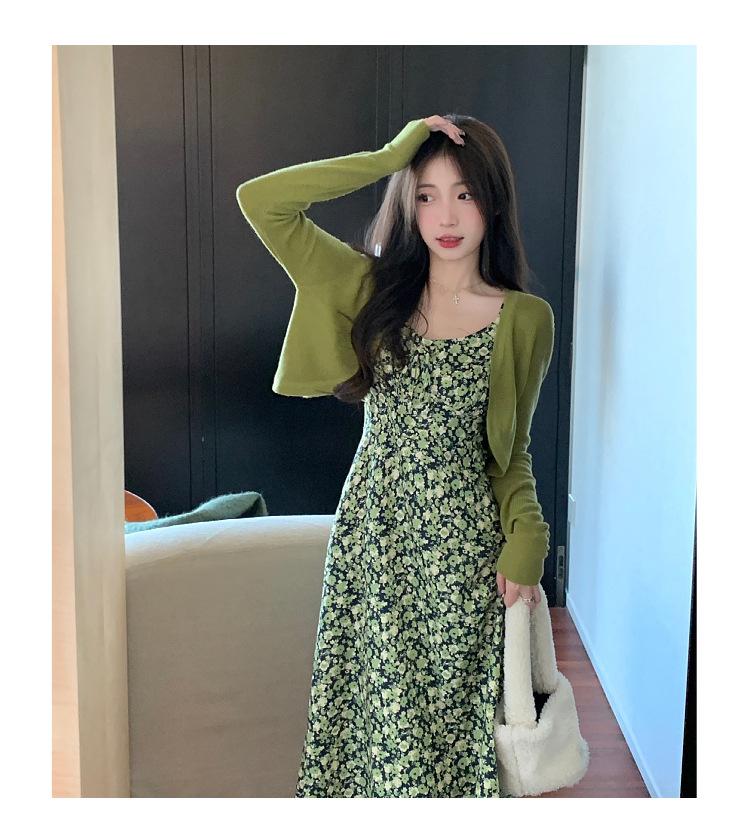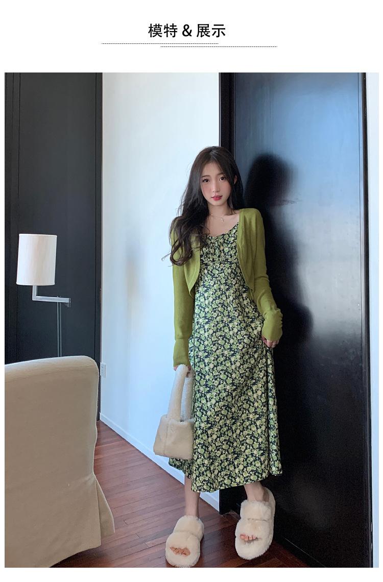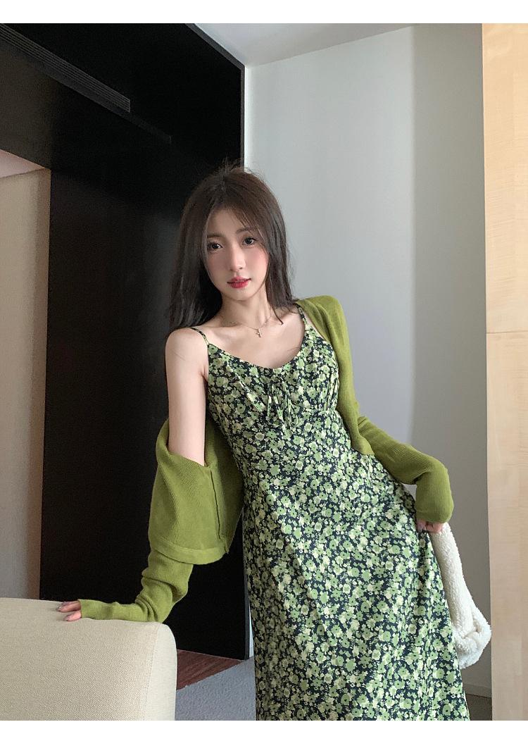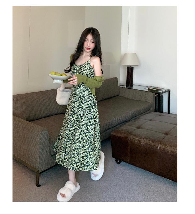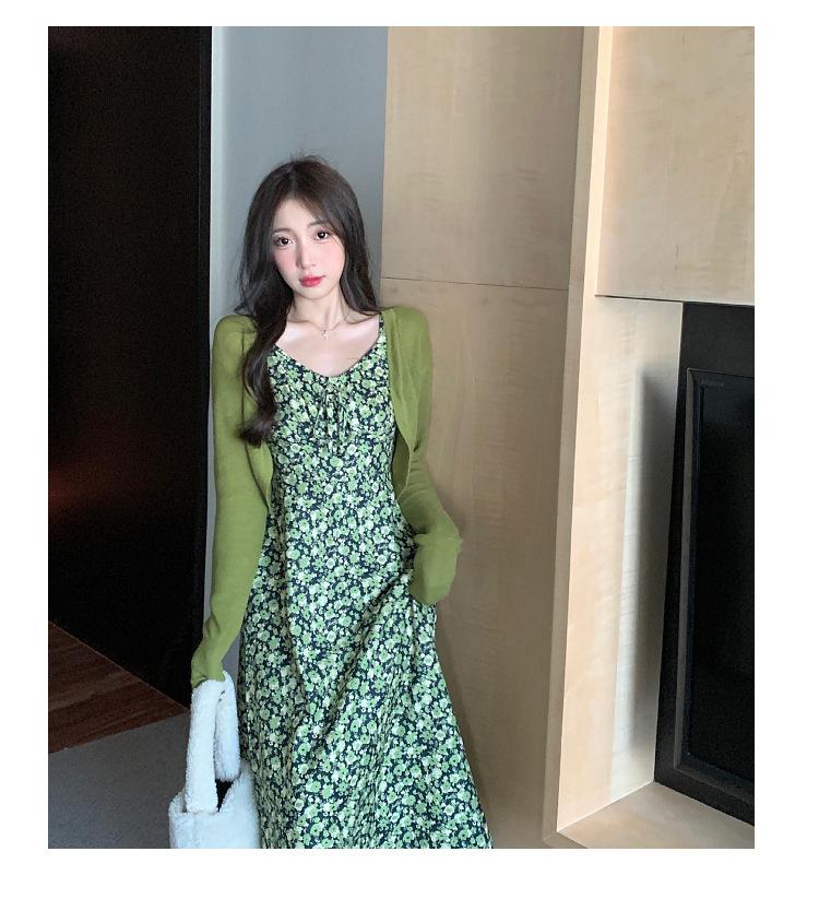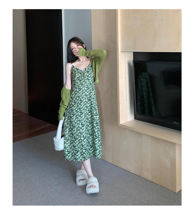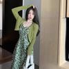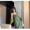 Vestido de Moda Verano 2024 Nueva Llegada Verde Tirantes Floral Adelgazante Vestido de Mujer Estilo Artístico Vestido de Moda